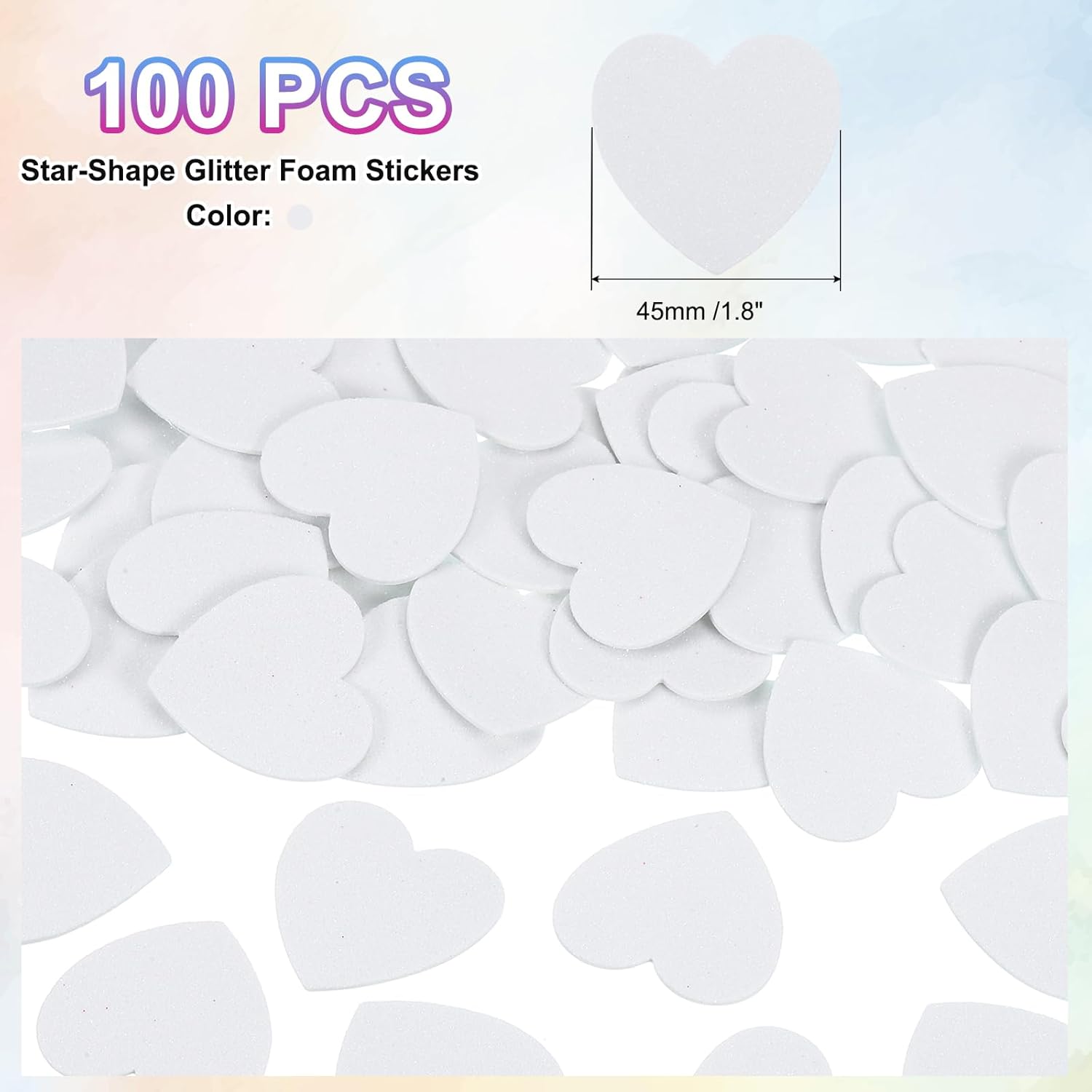 Gli adesivi in schiuma con glitter a forma di cuore sono adesivi in schiuma a forma di cuore con effetto glitter, solitamente utilizzati per decorazioni e fai da te fatti a mano. Durante San Valentino, Natale e altre festività, gli adesivi in schiuma glitterata a forma di amore possono essere utilizzati per decorare stanze, finestre, pareti, ecc. Per creare un'atmosfera romantica e calda. Gli adesivi possono essere utilizzati per realizzare biglietti fatti a mano, confezioni regalo, decorazioni per feste, ecc., aggiungendo un effetto glitter unico ai lavori fatti a mano. Colore: argento; dimensione totale: 45 x 45 mm; Forma: materiali in PVC e schiuma EVA a forma di cuore, morbidi al tatto. Gli adesivi in schiuma glitterata hanno un significativo effetto tridimensionale, che aumenta l'interesse della stratificazione e della decorazione. Questi adesivi artigianali in schiuma sono realizzati con materiali di buona qualità e la superficie è ricoperta da un sottile strato di glitter, che non solo è morbido al tatto, ma anche durevole nella lucentezza e non facile da staccare. Questi cuori in schiuma sono realizzati in materiale EVA con forte adesione, durevole e riutilizzabile, morbido per l'artigianato, leggero e autoadesivo, puoi attaccarli ovunque tu voglia. Prima di incollare, assicurarsi che la superficie da incollare sia pulita e piatta per migliorare l'effetto appiccicoso. La superficie è ricoperta di polvere di cipolla dorata, che è una polvere dorata scintillante. Potrebbe perdere parzialmente polvere, il che è un fenomeno normale e non ne pregiudica l'aspetto e l'utilizzo.