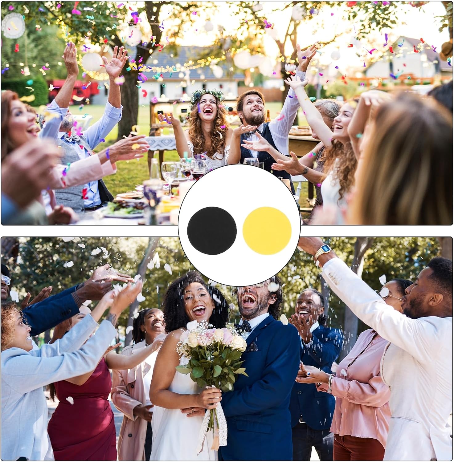 Questa superficie di coriandoli con superficie scintillante aggiunge un'atmosfera più festosa. Le dimensioni ridotte e il peso leggero possono soddisfare le tue esigenze di decorazione e artigianato. Perfetto per barrette di coriandoli, cestini, secchi, coni, borse, palloncini, tavoli, vasi, arte mista, ecc. La brillante decorazione di coriandoli è perfetta per compleanni, matrimoni o altre feste ed eventi di festival. Forma: rotonda; Colore: giallo, nero; Dimensioni: 3x3 cm; Materiale: carta glitterata; Il pacchetto include: 200 coriandoli rotondi. Sono sufficienti per le decorazioni della festa di compleanno e di matrimonio, si abbinano ad altre forniture per feste. Sembrano molto lucenti e belli. Questi coriandoli sparsi carini ed eleganti si combinano con colori classici che possono creare un'atmosfera deliziosa per la tua festa. Goditi il momento felice con i tuoi amici o familiari. I nostri coriandoli sono così facili da cospargere sui vostri tavoli attorno a centrotavola, tavolo da torta, tavolo da dessert, tavolo da regalo e facili da pulire. Realizzato in carta di alta qualità con superficie glitterata, nessun odore particolare, sicuro e affidabile, non facile da sbiadire, può essere usato ripetutamente.