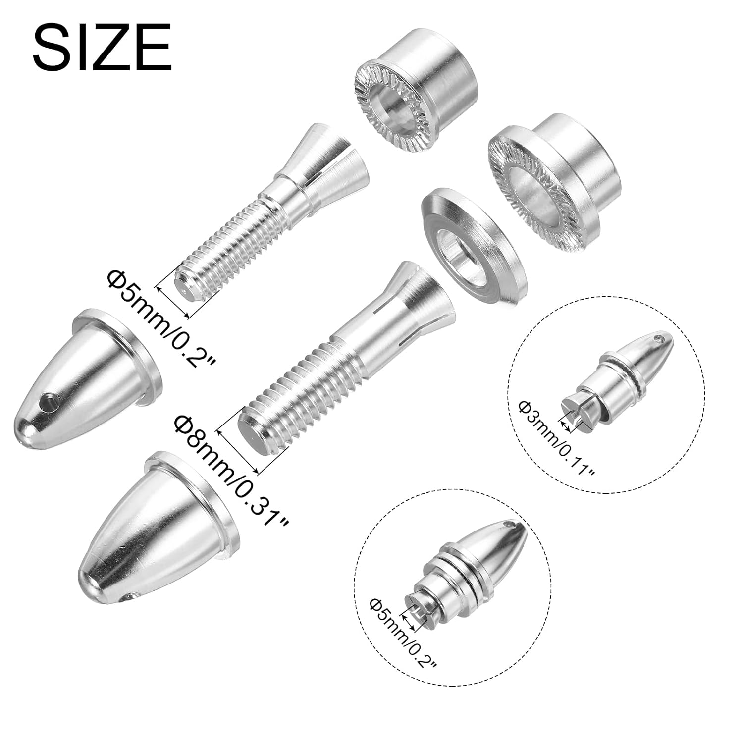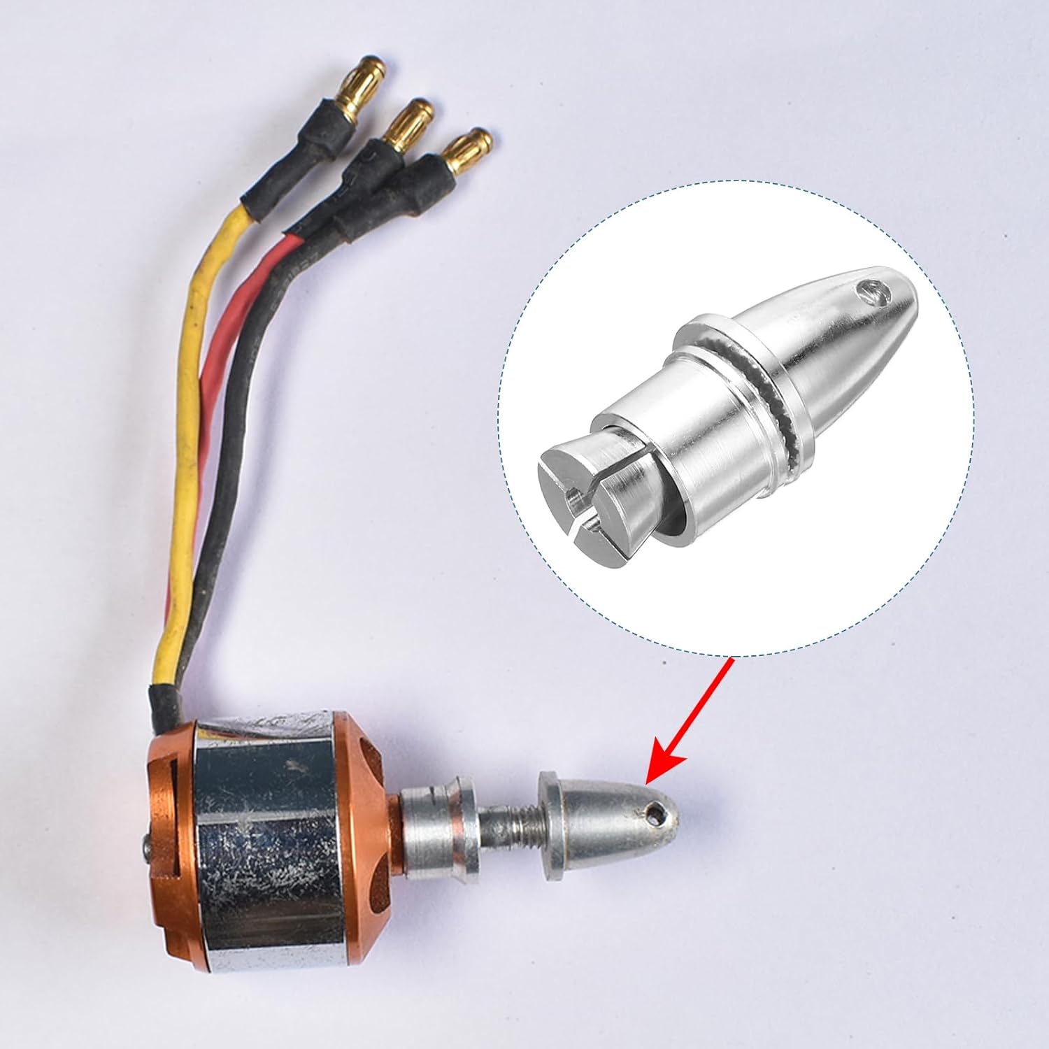 Questo adattatore per elica è un accessorio essenziale per gli aerei telecomandati, adatto per motori brushless e regolatori di velocità. L'adattatore per elica dell'aereo RC, dimensioni: 3/5 mm (apertura) x 5/8 mm (albero di uscita); colore: argento; materiale: alluminio; nella confezione: Rotatore per aereo telecomandato da 6 pezzi L'adattatore per elica dell'aereo RC è realizzato in alluminio, con lavorazione squisita e durata. L'ogiva dell'elica dell'aereo non è né pesante né grande, il che lo rende facile da trasportare e installare. Basta svitarlo e sostituirlo. L'adattatore corrispondente è facile da installare e non costerà troppo tempo ed energia. Si prega di scegliere la dimensione appropriata in base al diametro dell'albero motore