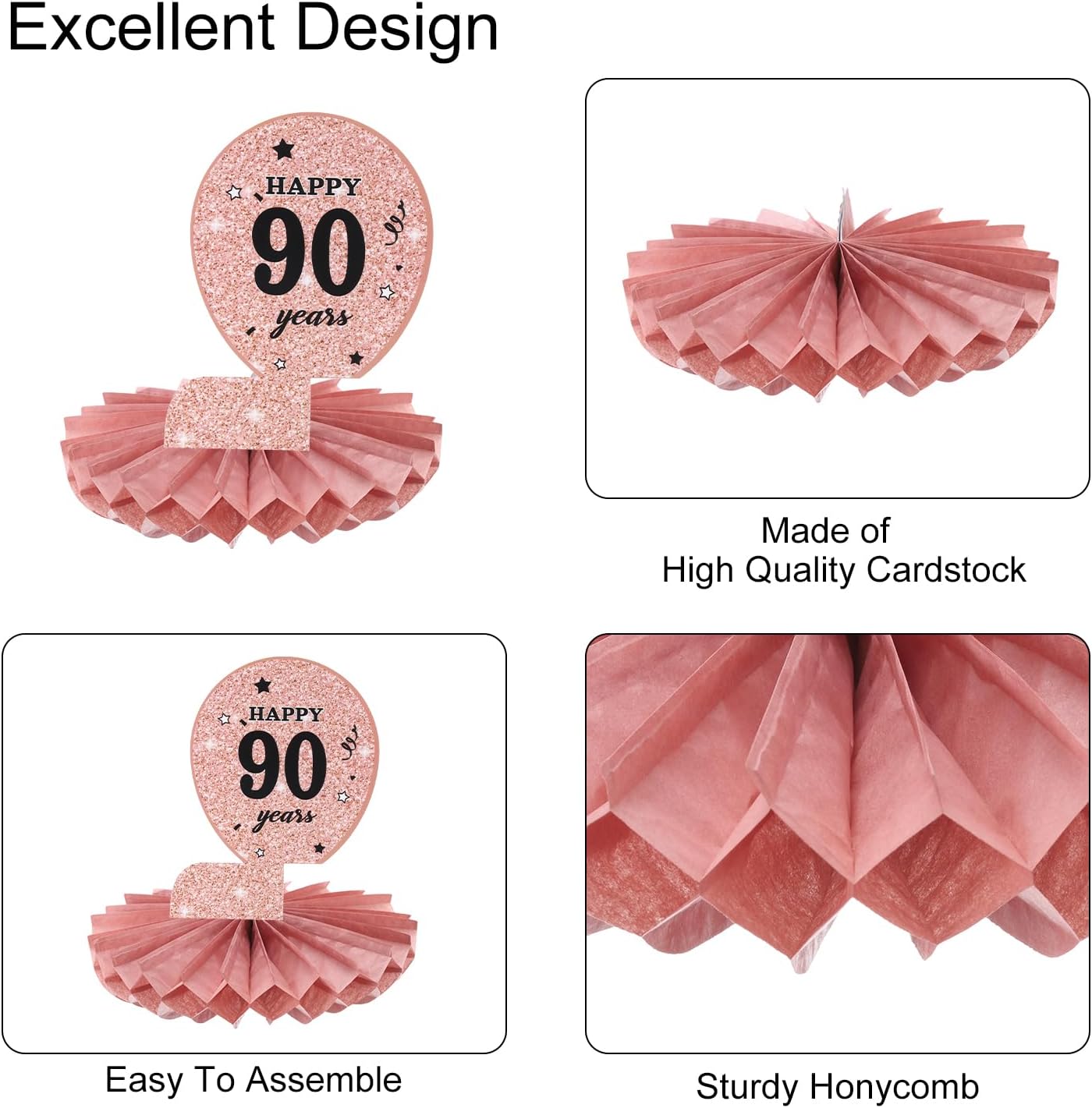 sourcing map Decorazione centrotavola per 90° compleanno, decorazione per tavoli, per uomini e donne, decorazione per feste di compleanno (rosso + tono oro)