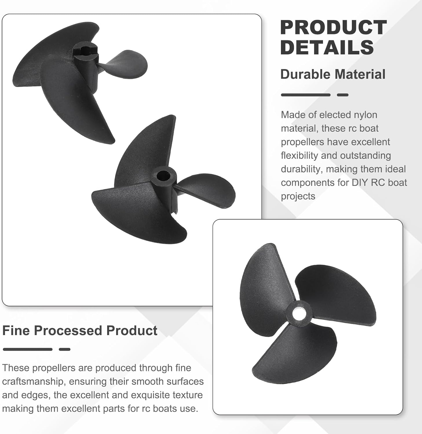 L'elica di una barca RC è un sistema di pale rotanti montato sull'albero motore. La sua funzione principale è convertire la coppia del motore in spinta spingendo l'acqua all'indietro, spingendo l'imbarcazione in avanti, rendendolo un componente di potenza fondamentale per il governo e la manovrabilità. Questa elica è ampiamente utilizzata su barche RC, barche da corsa o progetti fai-da-te con alimentazione elettronica o gas, in particolare per la sostituzione dell'elica Diametro esterno: 55 mm; Diametro del foro di montaggio: 4,8 mm; Passo: 40 mm; Materiale: nylon; Stile: lame CW 3; Colore: nero; Il pacchetto include: 3 eliche per barche RC Le eliche in nylon offrono un'eccellente resistenza agli urti e flessibilità, assorbono gli urti da sporco o terreno senza rompersi. Questa durabilità, combinata con la resistenza alla corrosione intrinseca, li rende componenti eccellenti per i progetti fai da te delle barche RC. L'elica RC è un sistema di pale montato sull'albero motore. Scegli la dimensione giusta dell'elica e falla scorrere sull'albero motore della tua barca RC, stringi le viti per installare l'elica, quindi avvia la barca in acqua e verifica se funziona correttamente. Prima di acquistare questo prodotto, controlla prima le specifiche e controlla se hai selezionato la dimensione corretta dell'elica.