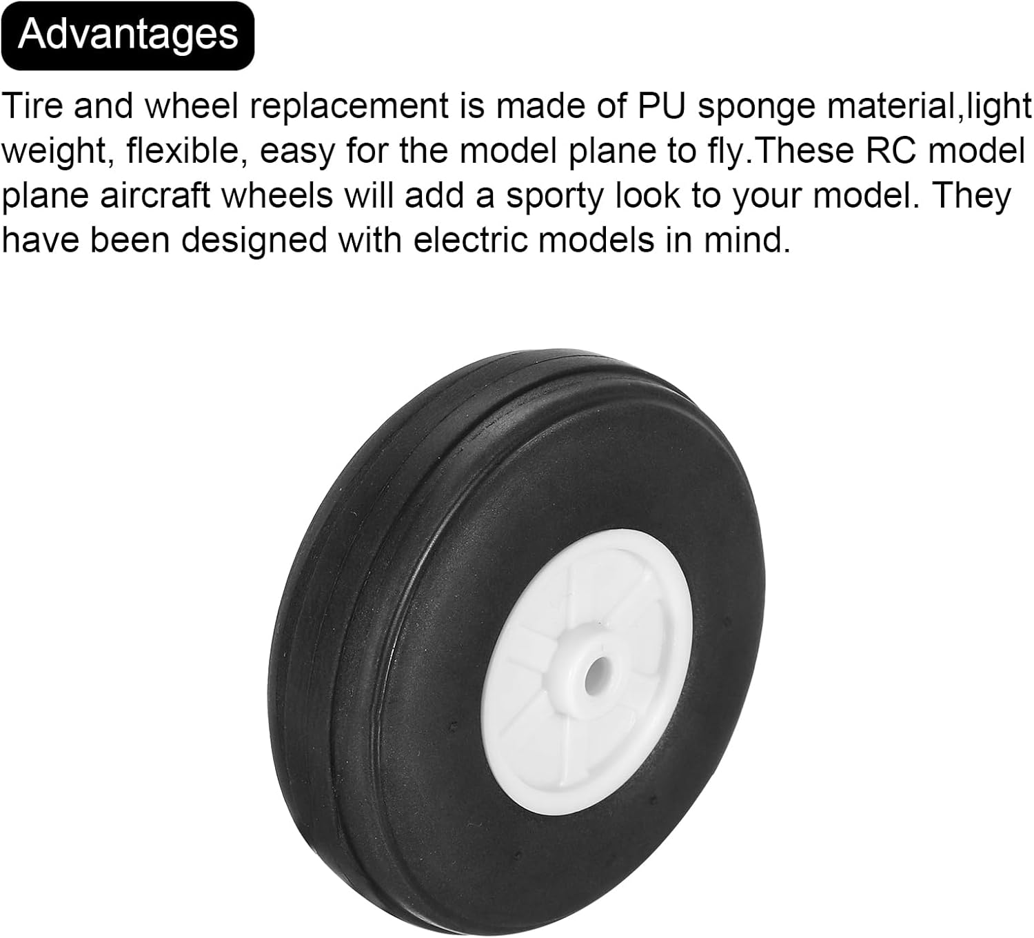 Queste ruote RC sono perfette per modelli di aeroplani RC, modelli RC fai-da-te, modelli di aeroplani per interni e parcheggi, aeroplani RC, auto RC. I pneumatici sono perfetti per aeroplani RC, elicotteri RC, auto RC e sono leggeri per un facile volo in aereo La ruota dell'aereo modello RC ha le seguenti dimensioni: Diametro esterno: 50 mm/2 pollici; Spessore: 16,5 mm/0,65 pollici; Diametro del foro: 3,2 mm/0,13 pollici; Colore: nero, bianco; Materiale: pneumatico in spugna PU, mozzo in plastica; Nella confezione: 2 ruote in spugna per aereo RC. La ruota sostitutiva in spugna PU è realizzata in materiale spugnoso PU, che è leggero, robusto e flessibile, e il mozzo è in plastica, che è resistente e portante, rendendo il modello di aeroplano facile da pilotare. Queste ruote per aeromodelli RC conferiscono al tuo modello un aspetto sportivo. Design semplice e pratico, facile da installare e utilizzare. A causa dell'illuminazione e delle diverse impostazioni dello schermo, il colore dell'immagine potrebbe variare leggermente rispetto al prodotto reale