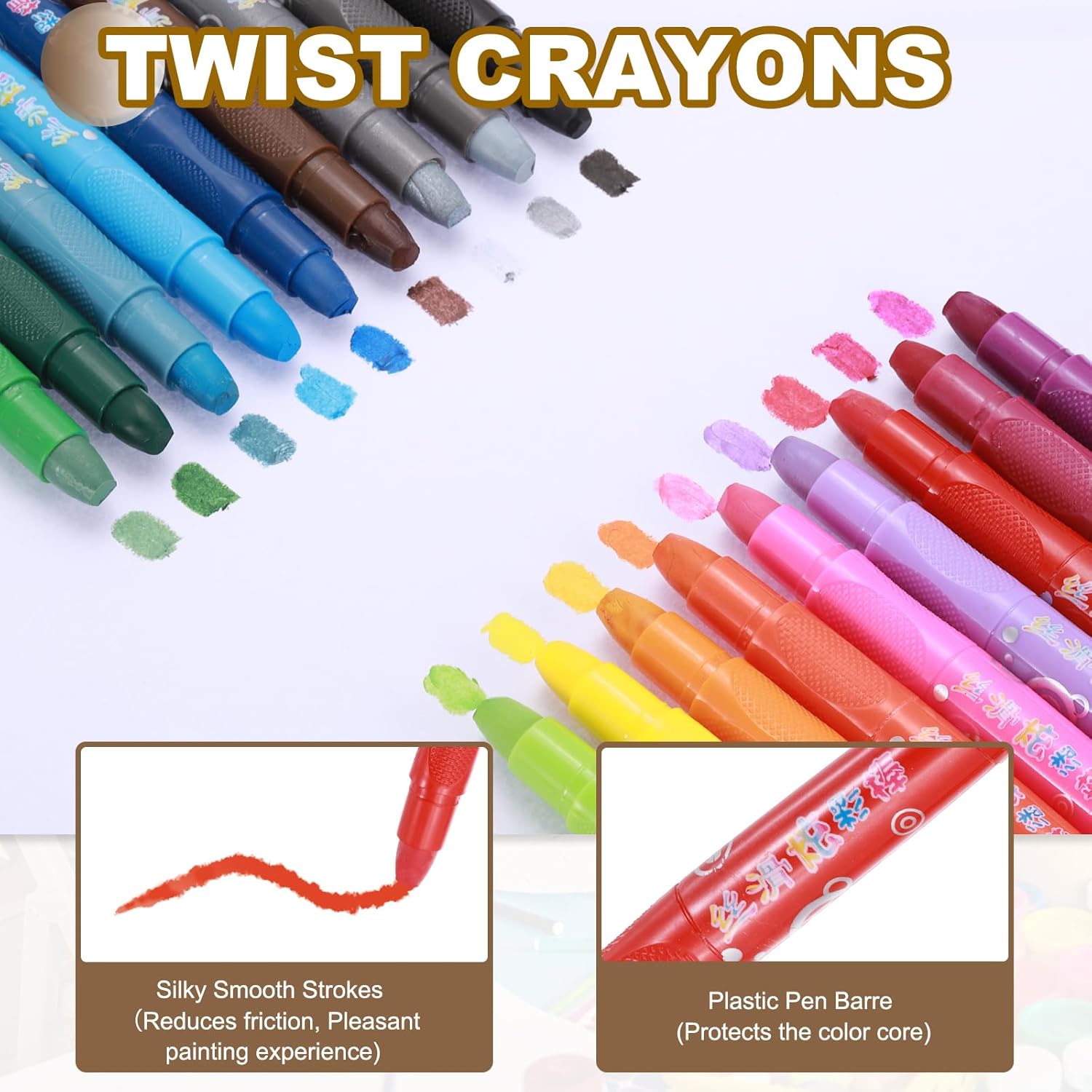Colore: nero; materiale: cera vegetale; dimensioni: 13 x 1,5 cm (lunghezza x diametro); la confezione contiene: circa 24 pastelli a spirale Materiale durevole: il fusto della penna è realizzato in plastica, che protegge efficacemente il nucleo del colore e garantisce una lunga durata. I pastelli sono realizzati in cera vegetale e la consistenza setosa riduce l'attrito e offre una piacevole esperienza di pittura. Design girevole: il design del nucleo rotante può facilmente ritrarre la punta senza sbucciare o affilare, fornendo un'esperienza di colorazione senza stress. Effetto acquerello e lavabile: il colore di questo pastello è ricco e luminoso e il pigmento è lavabile. Questo pastello da disegno è uno strumento di disegno con una consistenza setosa e una punta girevole della penna. È ampiamente usato nella pittura, colorazione, creazione di biglietti, creazione di album, istruzione, ecc. È molto adatto per gli amanti dell'arte. Per utilizzare i nostri pastelli, basta ruotarli per rivelare il nucleo del colore e iniziare a colorare. Quando non in uso, ruotali verso il basso per proteggere la punta del colore. Si prega di conservare questi pastelli in un luogo fresco e asciutto. Non raccomandato per l'uso su superfici a contatto con gli alimenti.
