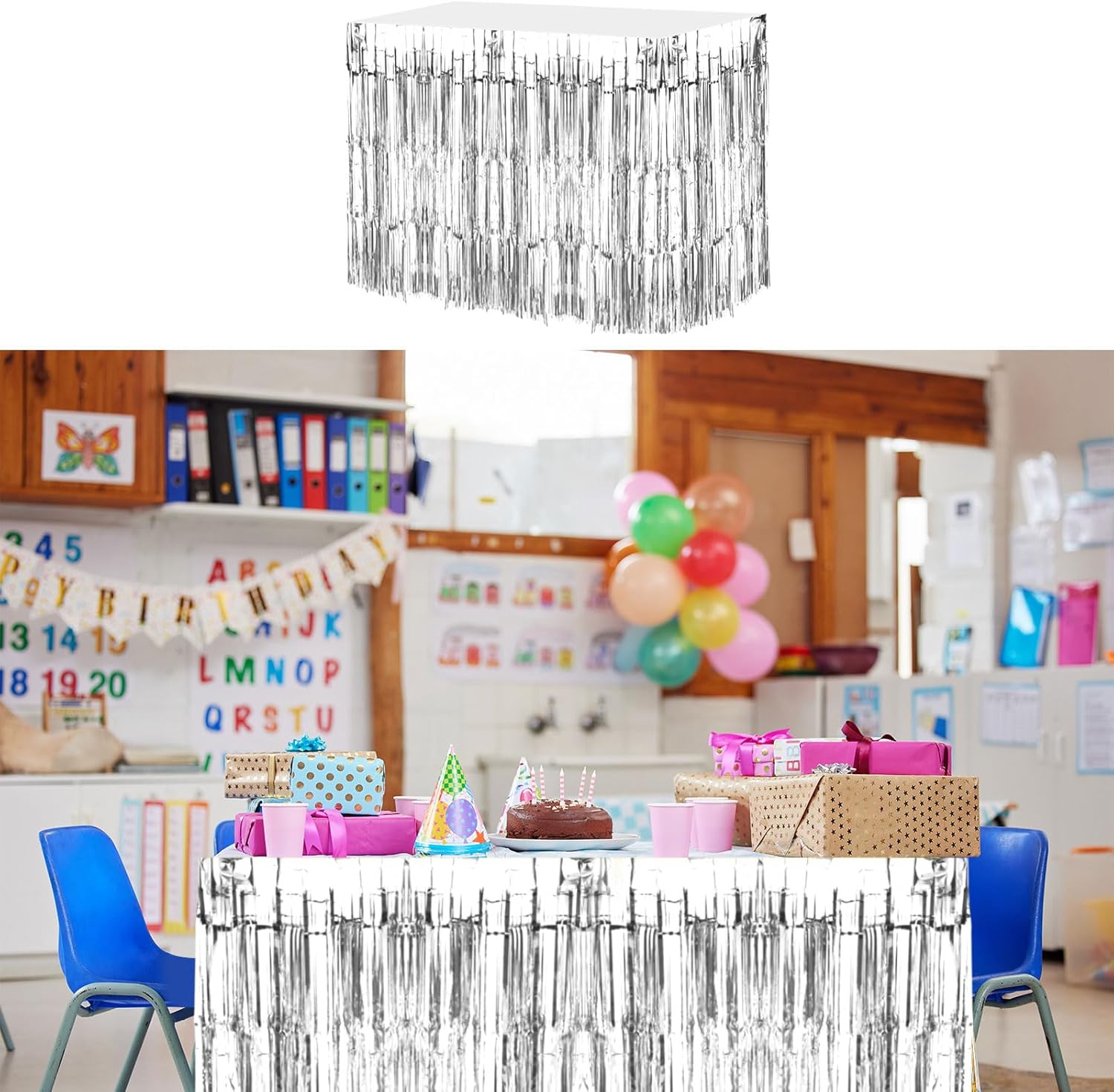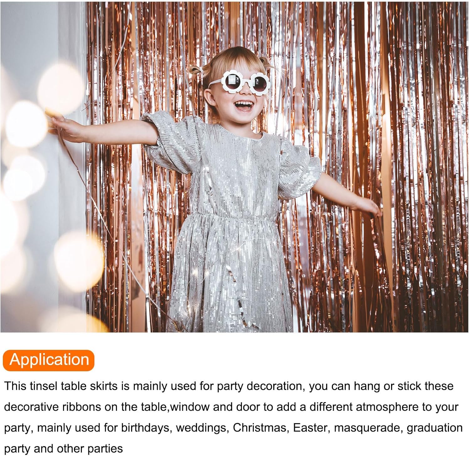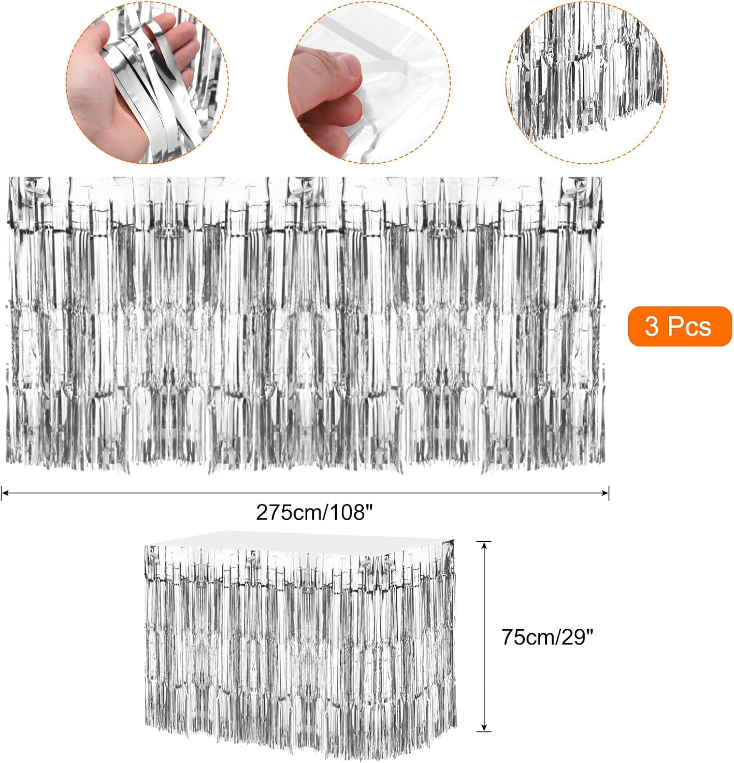 Queste gonne da tavolo sono utilizzate principalmente per la decorazione della festa, puoi appendere o attaccare questi nastri decorativi sul tavolo, sulla finestra e sulla porta per aggiungere un'atmosfera diversa alla tua festa, utilizzati principalmente per compleanno, matrimonio, Natale, Pasqua, ballo in maschera, festa di laurea e altre feste Colore: argento; materiale: plastica; dimensione totale: 75 x 275 cm (L x L); nella confezione: 3 gonne da tavolo con frange in lamina. Le gonne da tavolo di grandi dimensioni possono soddisfare diversi stili di festa. Un'ampia area di gonne da tavolo lucide può rendere la sessione fotografica più suggestiva. Lascia che i tuoi ospiti godano di più foto. Queste gonne da tavolo ghirlanda sono dotate di una striscia adesiva sulla parte superiore, facile da usare. Quindi puoi attaccarlo alla finestra, al muro, alla finestra o al tavolo per decorare secondo le tue esigenze. Aggiungi decorazioni diverse alla scena della tua festa. Il design della superficie lucida e delle nappe, ogni cinturino mostrerà colori diversi a causa della luce diversa quando lo sposti, e il design delle nappe aggiunge anche decorazioni più eleganti alla festa
