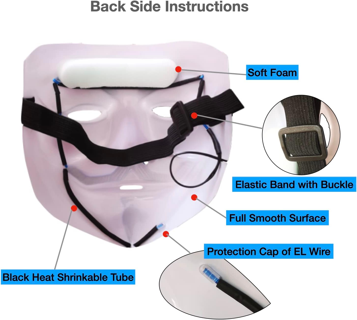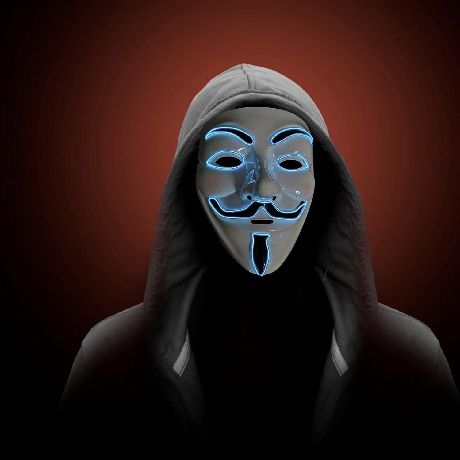 La maschera è molto bella funziona a 3 modalità, però! devi mettere le pile (sono 2) speravo che i fili dove illumina fossero bianche, ma comunque è molto bella