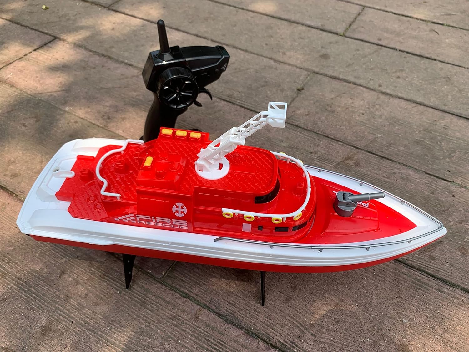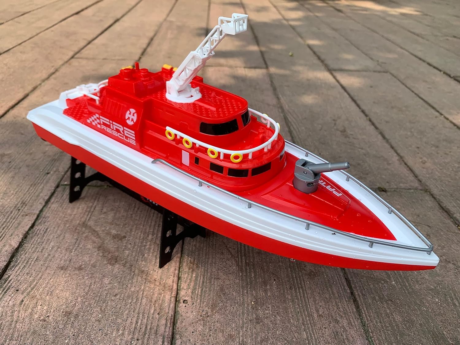 Dotato di telecomando barche antincendio, yacht modelling, telecomando di un pulsante per spruzzare acqua, semplice e divertente. Guidato da due motori e due eliche, ha una forte potenza e può raggiungere una velocità massima di 25KM/h Grande scafo, con una lunghezza di 38cm (14,9 pollici), 38 * 11,7 * 9,3 cm, adatto per intrattenimento telecomandato come intrattenimento in piscina, intrattenimento sul lago, piccoli fiumi e giocattoli di intrattenimento genitore-bambino. Utilizzando una batteria da 7.4V 800mah, può essere ricaricata circolarmente, con un tempo di uso singolo di 15-20 minuti. È semplice e divertente, adatto a bambini e adulti di tutte le età. Dispositivo di controllo remoto 2.4G, che supporta oltre 100 diverse navi di controllo remoto nello stesso gioco, senza interferenze in frequenza, distanza di controllo remoto fino a 50 metri, le navi possono muoversi in avanti, indietro, sinistra e destra, adatto per uso novizio Non è solo un'interessante barca telecomandata ad alta velocità, ma anche un interessante giocattolo di intrattenimento estivo, con un'esperienza diversa di canottaggio mentre spruzza acqua. Questo è anche un delicato ornamento della barca antincendio, collocato in una stanza per bambini, che è abbastanza interessante