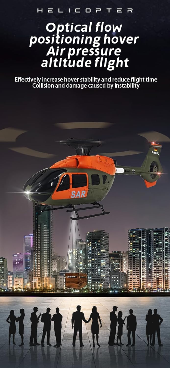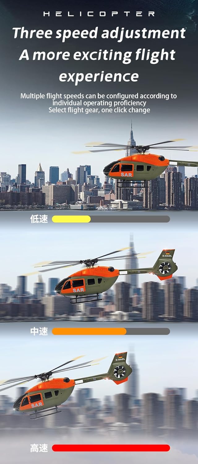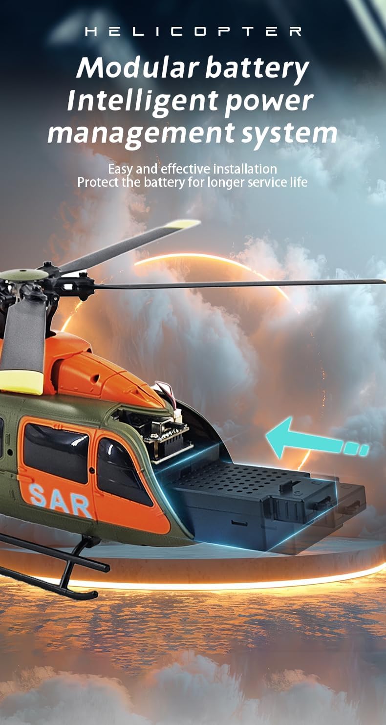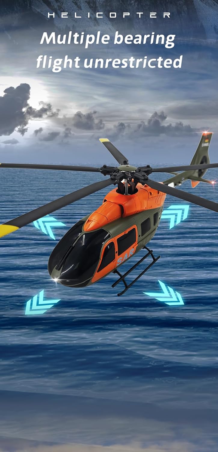 Il telecomando del sedile principale ha una sensazione di controllo più precisa e il servo in metallo è più durevole; impostazione dell'altitudine del barometro, posizionamento del flusso ottico, volo stabile Adottando un design libero alettone a lama singola a 6 canali, un giroscopio elettronico a 6 assi per il miglioramento della stabilità e incorporando un manometro per il controllo dell'altitudine e il posizionamento del flusso ottico, il volo è anche più stabile e più facile da manipolare! Doppio azionamento diretto brushless, potente! Resistente agli urti! L'aspetto è ridotto in proporzione al velivolo reale, che può non solo controllare il volo, ma anche servire come decorazione. Design libero alettone a 6 canali, utilizzando principi aerodinamici per progettare eliche che forniscono una forte potenza e auto stabilizzazione dell'aereo, con conseguente volo ultra stabile; Il telecomando del sedile principale ha una sensazione di controllo più precisa e il servo in metallo è più durevole I doppi motori brushless direct drive forniscono una potenza più forte e una migliore resistenza al vento. L'elica canalizzata posteriore è più realistica e raffinata, riducendo il rischio di danni al rotore di coda; Impostazione dell'altitudine del barometro, posizionamento del flusso ottico, volo stabile; Batteria ricaricabile modulare ad alta velocità, indicatore di potenza, installazione facile e veloce, protegge efficacemente la batteria e ha una durata più lunga; acrobazie speciali come ascendente, discendente, avanzamento, ritirata, volare a sinistra, volare a destra, ruotare a sinistra, ruotare a destra, volare lungo la traiettoria di volo e spazzolare la pentola Modalità 6G, utilizzando giroscopio a 6 assi, volo stabile, particolarmente adatto per i principianti per volare; allarme di bassa tensione, protezione del rotore bloccato, protezione contro la perdita di controllo, conversione del timone grande e piccolo, un decollo chiave, un atterraggio chiave e altre funzioni; Dotato di un caricabatterie USB dedicato per una ricarica veloce, sicura e stabile