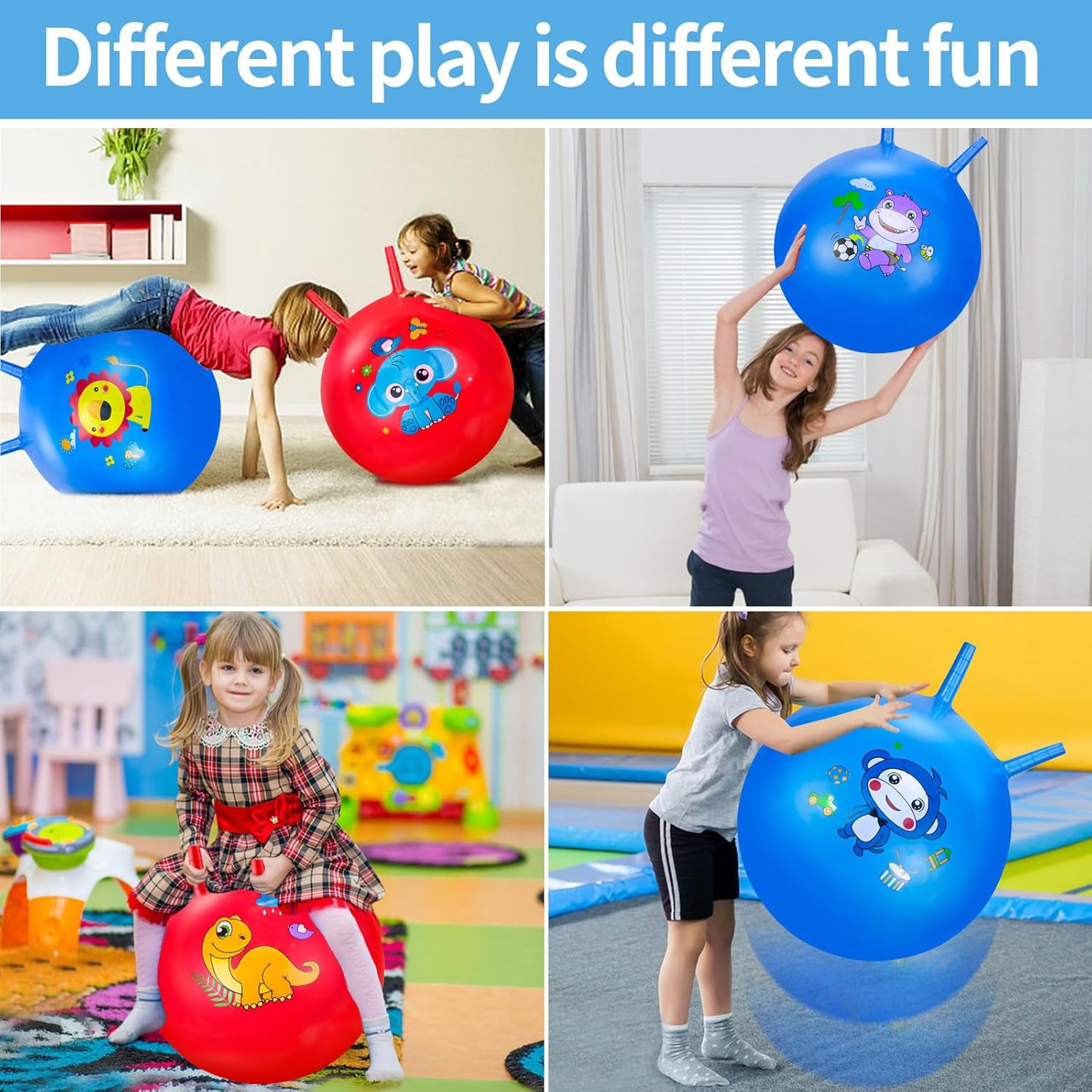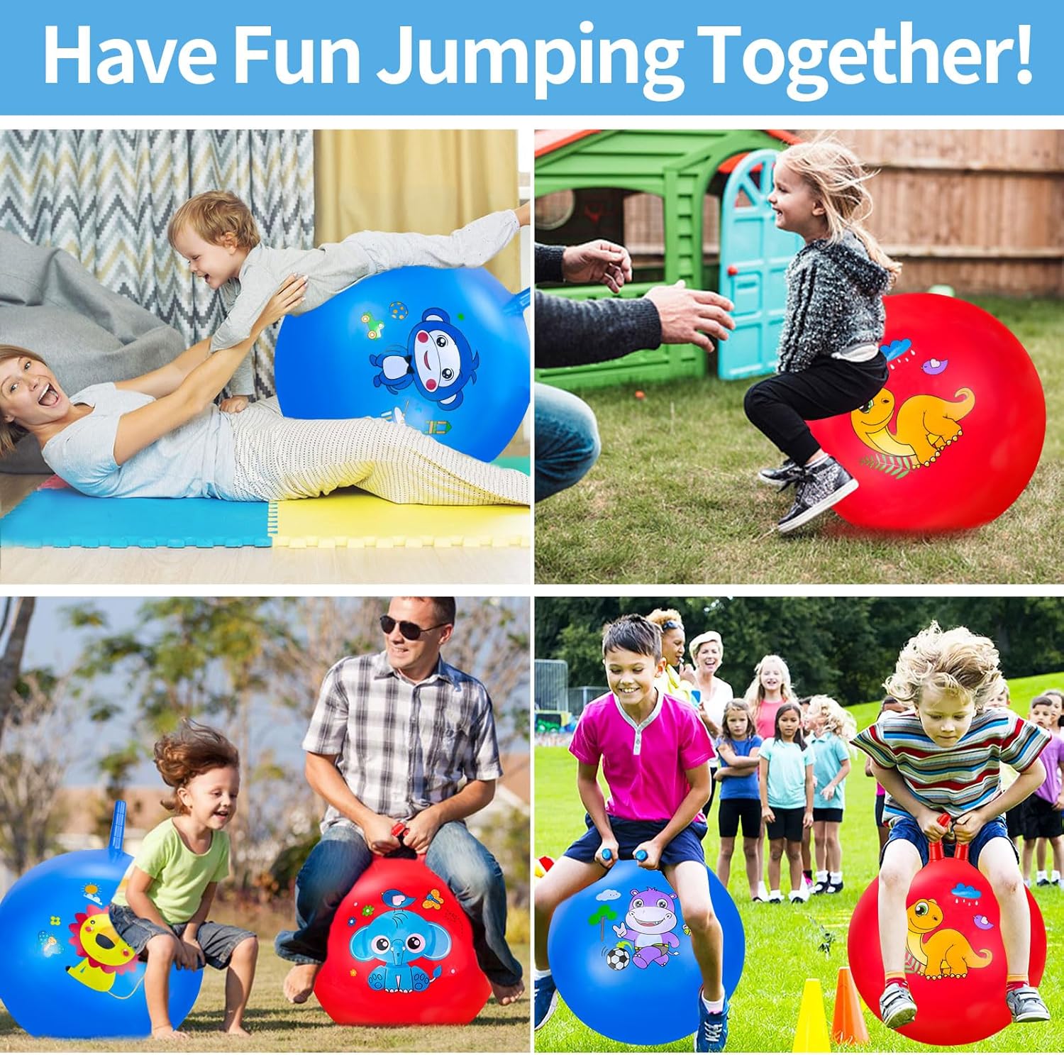 Tramoggia spaziale: confezione da 2 tramogge spaziali con pompa (rosso e blu) sono realizzate con materiali ispessiti e di alta qualità. Posizione della maniglia della palla spaziale utilizzando il design della maniglia, che consente alle mani piccole dei bambini di una migliore presa, sentirsi a proprio agio e Ci sono motivi carini sulla palla, che possono attirare gli occhi dei bambini. Antiscivolo: la palla da salto è realizzata in PVC ispessito, che può sopportare un peso di circa 50 kg e ha un anello antiscivolo nella parte inferiore, che può proteggere la sicurezza del salto. La tramoggia spaziale è adatta sia per giochi interni che esterni. Facile da giocare e gonfiare: la tramoggia spaziale viene fornita con una pompa manuale. Basta rimuovere la spina dell'aria bianca dal foro dell'aria, gonfiare con aria, quindi estrarre la pompa dell'aria, inserire la spina dell'aria bianca e il gioco è fatto. Non è soggetto a perdite d'aria. Giocabile e abilità: la palla tramoggia per bambini 3 4 5 6 7 8 9 e sono una buona scelta giocattolo per giocare di gruppo, saltare ogni giorno aiuta i bambini a crescere sani. La palla della tramoggia ha un impatto positivo sullo sviluppo fisico e mentale del bambino, può costruire la forza muscolare dei bambini, la coordinazione e l'equilibrio e aiutarli a sviluppare una buona percezione spaziale. Regalo perfetto per i bambini: ottima scelta regalo per bambini in tutte le occasioni come Natale, compleanno, Halloween, festa dei bambini e altre vacanze.