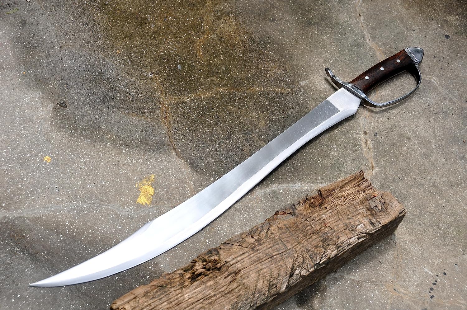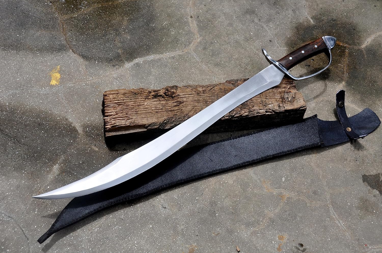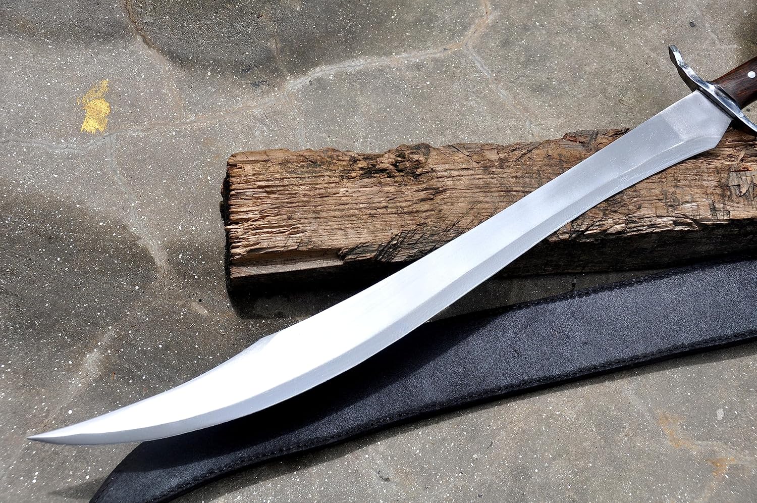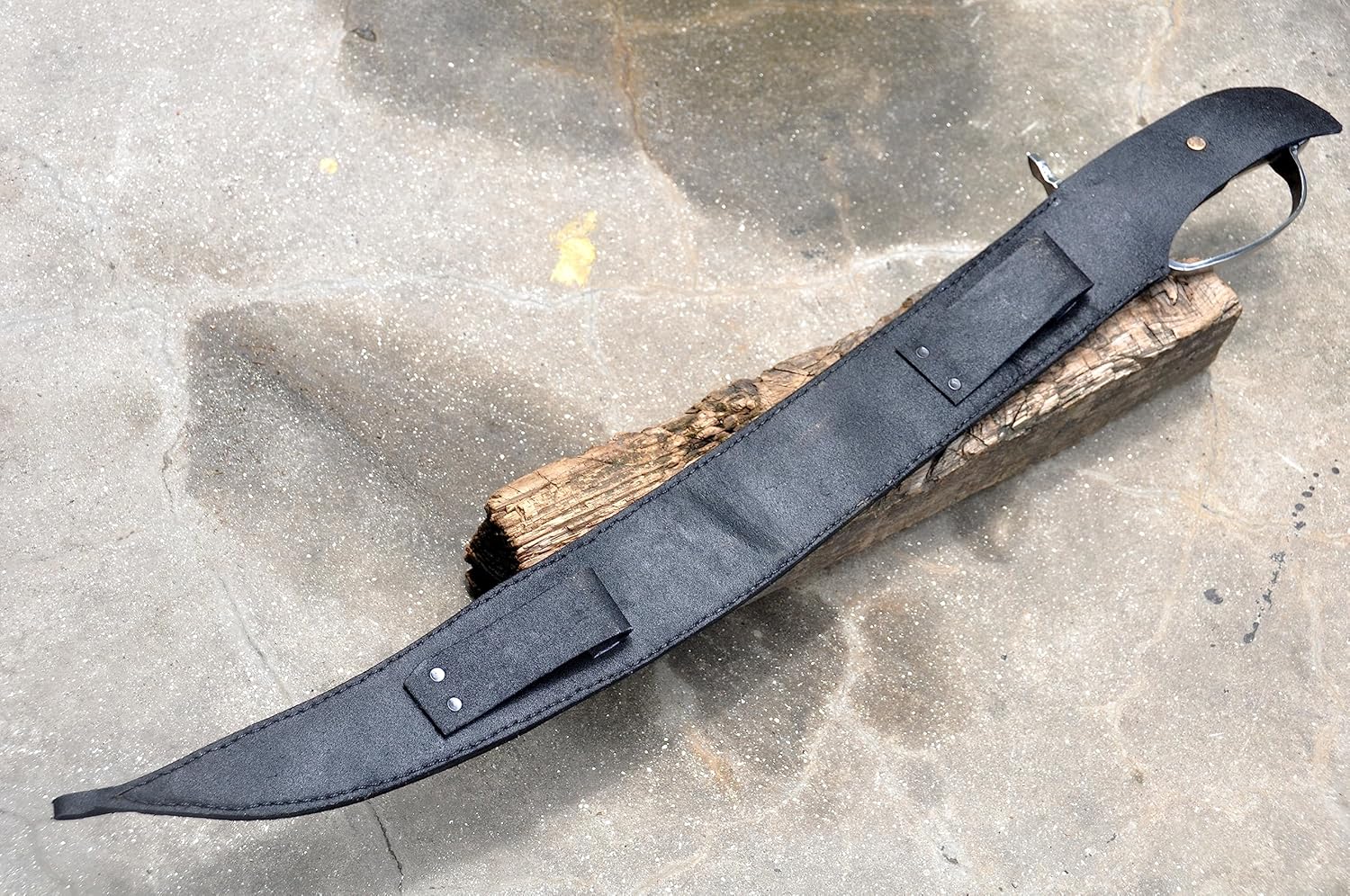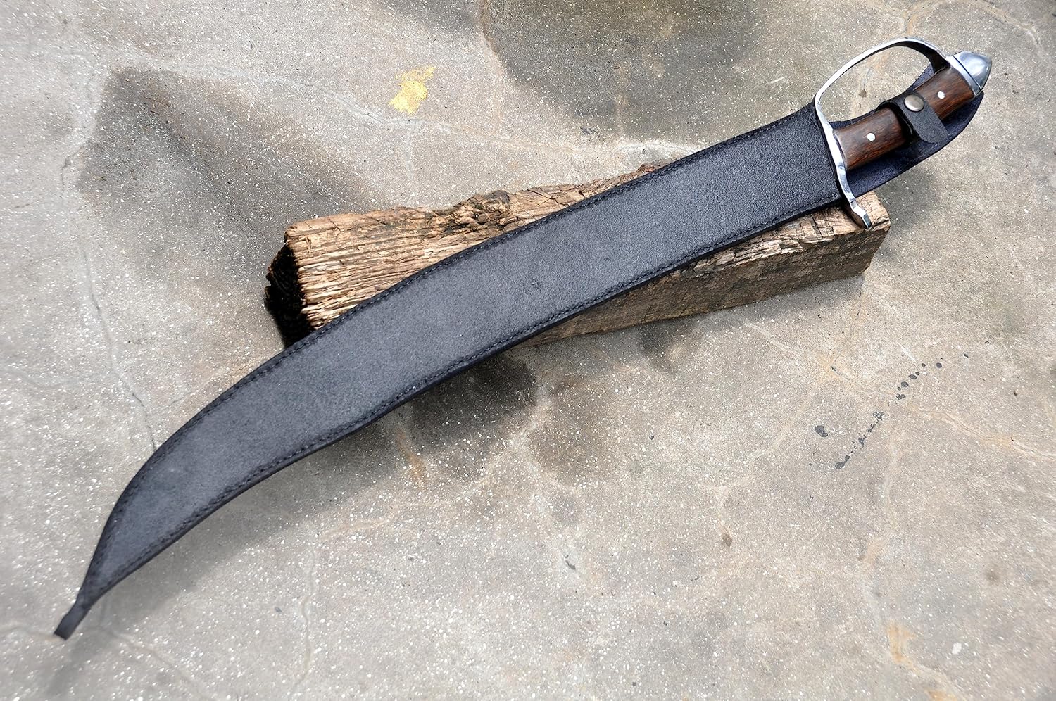 Realizzato artigianalmente in Nepal - utilizzando il metodo di forgiatura tradizionale Lama in acciaio al carbonio lunga 23 pollici con lama di bilanciamento temprata ad acqua sul bordo che la rende molto stabile Il manico da 6,5 pollici è completamente codolo ed è realizzato con fodero in pelle naturale di palissandro di alta qualità