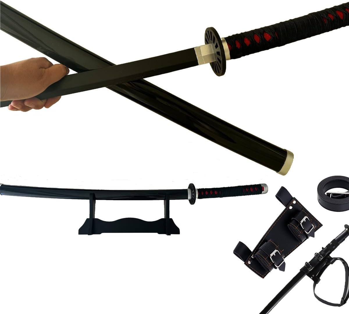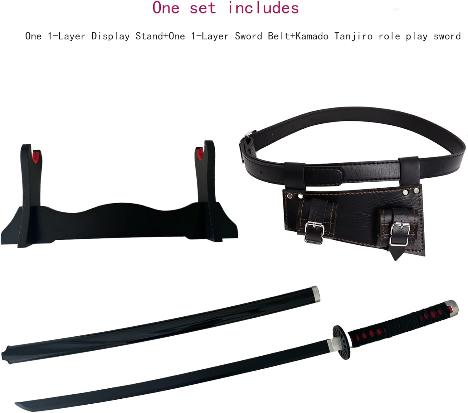 Anime Demon Killer, spada da gioco di ruolo Kamado Tanjiro, dotata di cintura portatile e espositore. L'espositore ha un'imbottitura rossa che protegge il fodero e gli oggetti da esposizione, prevenendo efficacemente i graffi. Molto adatto ad appassionati e collezionisti. Lunghezza totale: circa 104 cm/41 pollici; Lunghezza impugnatura: circa 27 cm/10,6 pollici; Lunghezza lama: circa 68 cm/26,7 pollici; Peso totale: circa 0,8 kg/1,76 libbre. Questa katana è una replica perfetta della katana dell'anime. Realizzata con cura, leggera, la lama è in bambù con buona tenacità e il resto è in plastica. Aspetto, lama e manico sono tutti realizzati secondo l'animazione originale. L'impugnatura è avvolta da una corda morbida che si adatta perfettamente al palmo della mano, facile da impugnare e offre il massimo comfort durante l'uso. Utilizzato per giochi di ruolo, decorazioni, collezioni, allenamenti di arti marziali e anche come miglior regalo per amici e familiari. A differenza delle spade affilate, questa spada Demon Slayer non è affilata, il che la rende sicura da esporre in casa o in eventi cosplay senza alcun rischio di incidenti. Questa spada è la scelta migliore e sicura per il cosplay, destinata ai bambini di età superiore ai 14 anni e cosplayer.