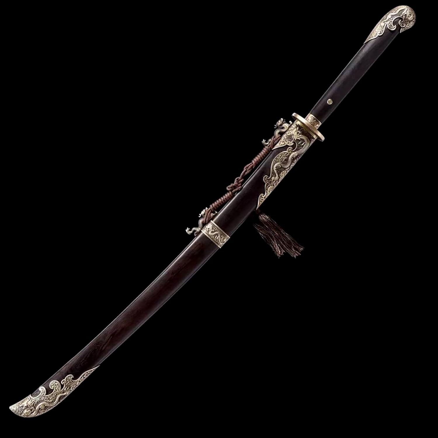 La lama è realizzata in acciaio modellato di alta qualità ed è stata piegata e forgiata più volte per garantire la perfetta combinazione di durezza e tenacità. Fodero in ebano naturale per riporre in sicurezza la lama. Il fodero è decorato con delicate nappe e decorazioni in metallo che conferiscono alla spada una bellezza unica. Lunghezza totale: 106 cm, lunghezza lama: 71 cm, lunghezza manico: 30 cm, larghezza lama: 3,75 cm, spessore lama: 0,7 cm, peso totale: 2,53 kg. Le proporzioni sono cruciali per la progettazione delle armi. Le proporzioni perfette non solo rendono la spada più bella, ma ne garantiscono anche la praticità e la funzionalità. Ogni spada è un'opera d'arte unica. È la prima scelta per collezionisti e appassionati di arti marziali.