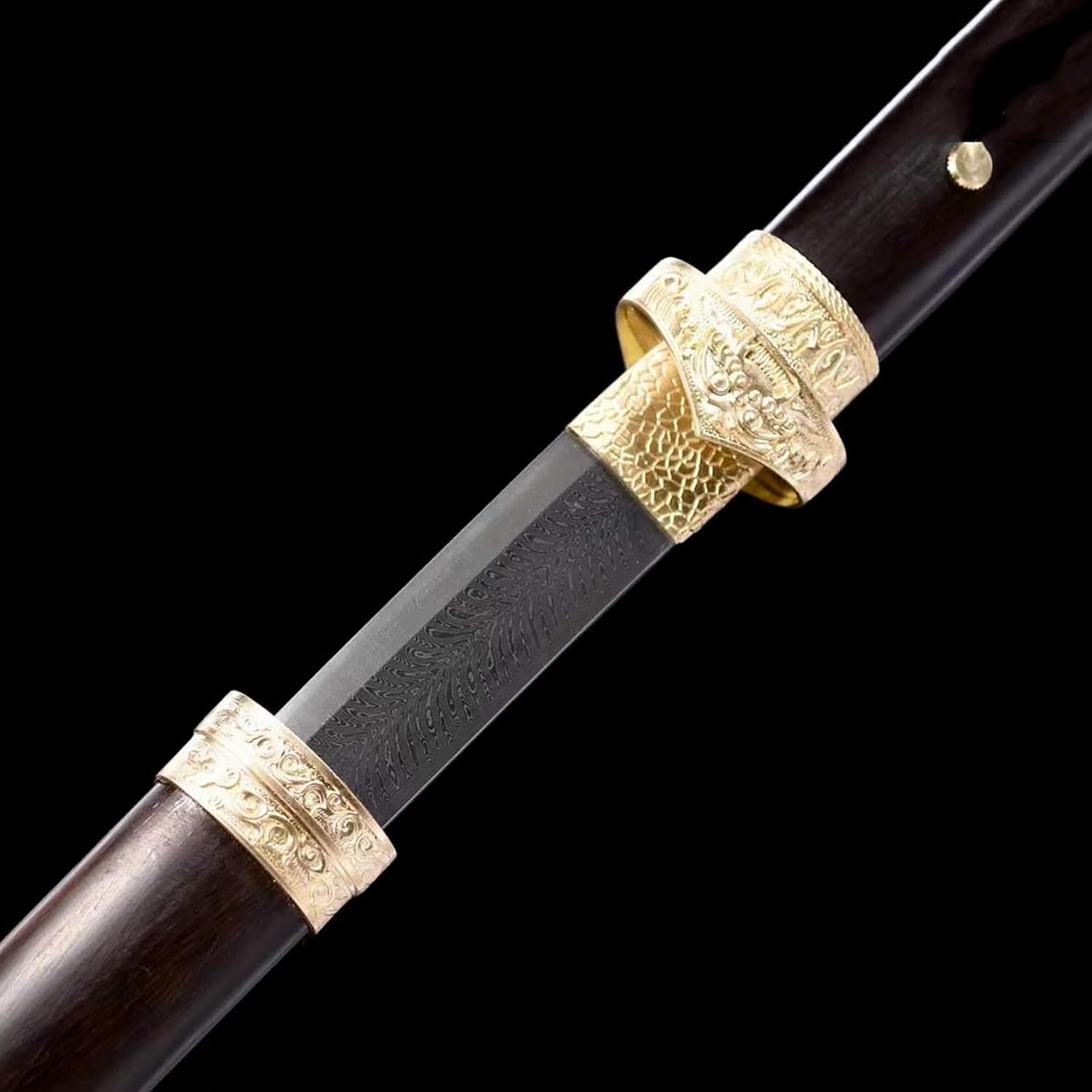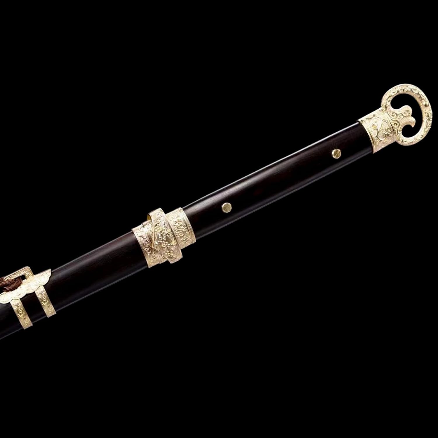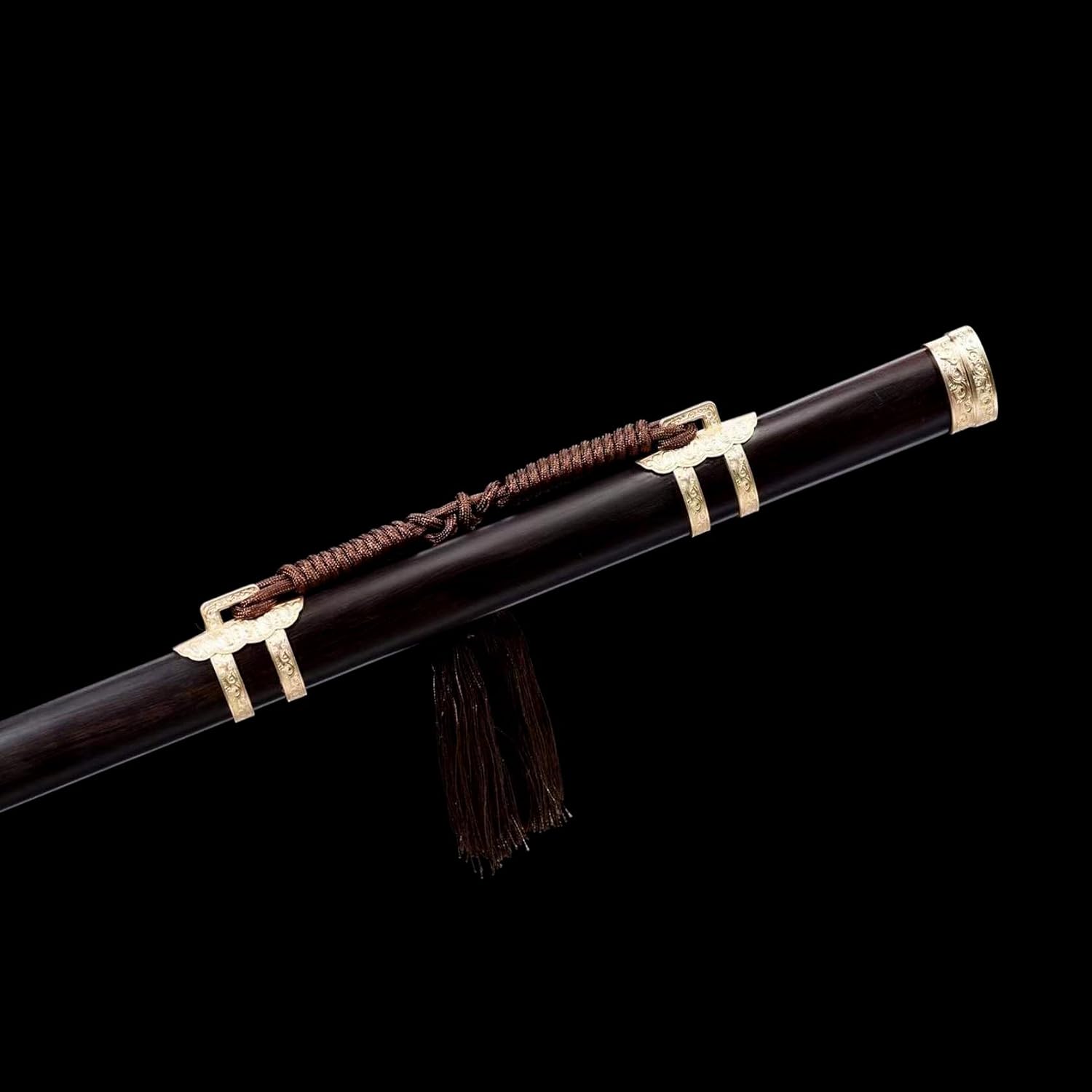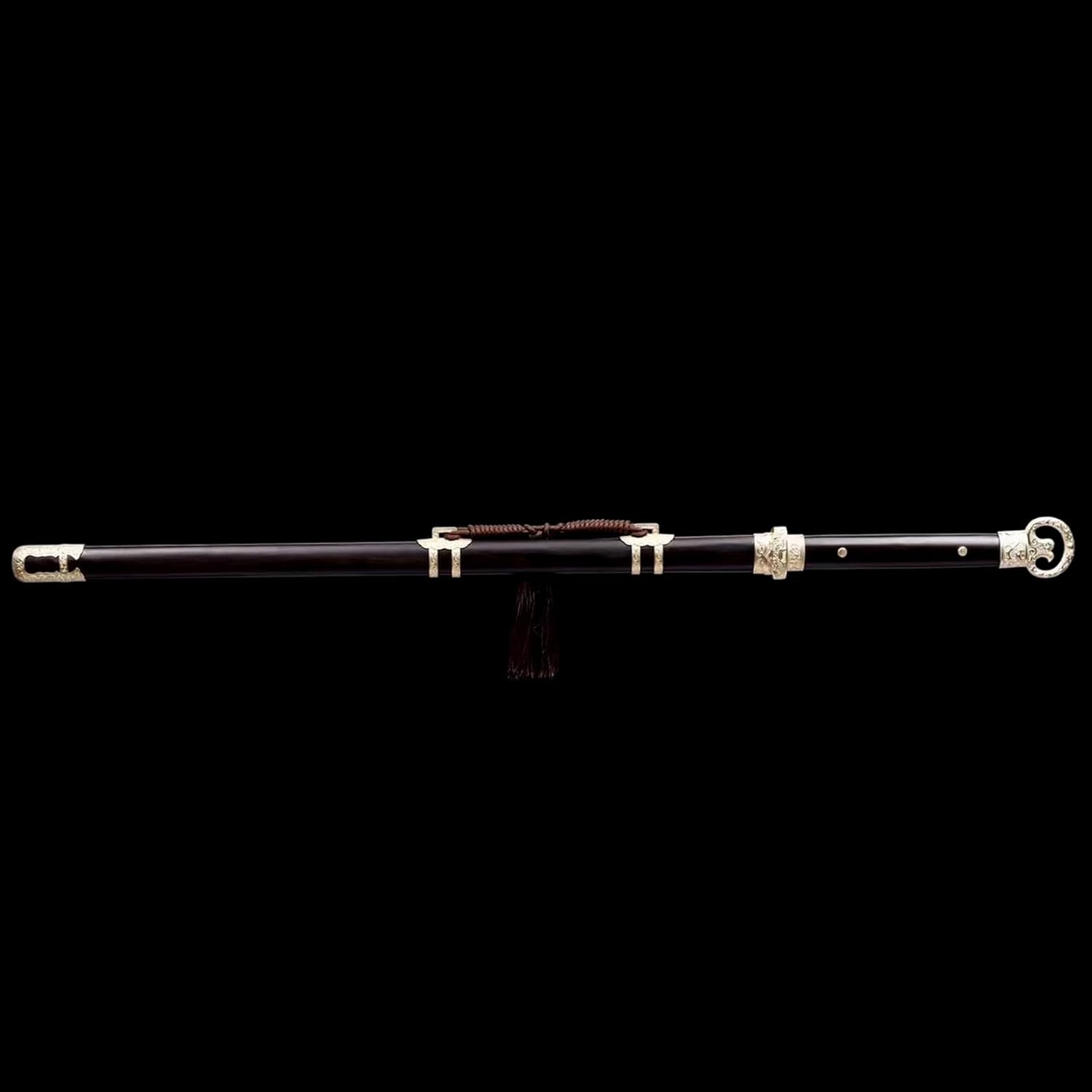 Ogni spada è un'opera d'arte unica. È la prima scelta per collezionisti e appassionati di arti marziali. La lama è realizzata in acciaio modellato di alta qualità ed è stata piegata e forgiata più volte per garantire la perfetta combinazione di durezza e tenacità. Lunghezza totale: 106 cm, lunghezza lama: 71 cm, larghezza lama: 3,1 cm, spessore lama: 0,7 cm, peso totale: 1,8 kg. Le proporzioni sono cruciali per la progettazione delle armi. Le proporzioni perfette non solo rendono la spada più bella, ma ne garantiscono anche la praticità e la funzionalità. Fodero in ebano naturale per riporre in sicurezza la lama. Il fodero è decorato con delicate nappe e decorazioni in metallo che conferiscono alla spada una bellezza unica.