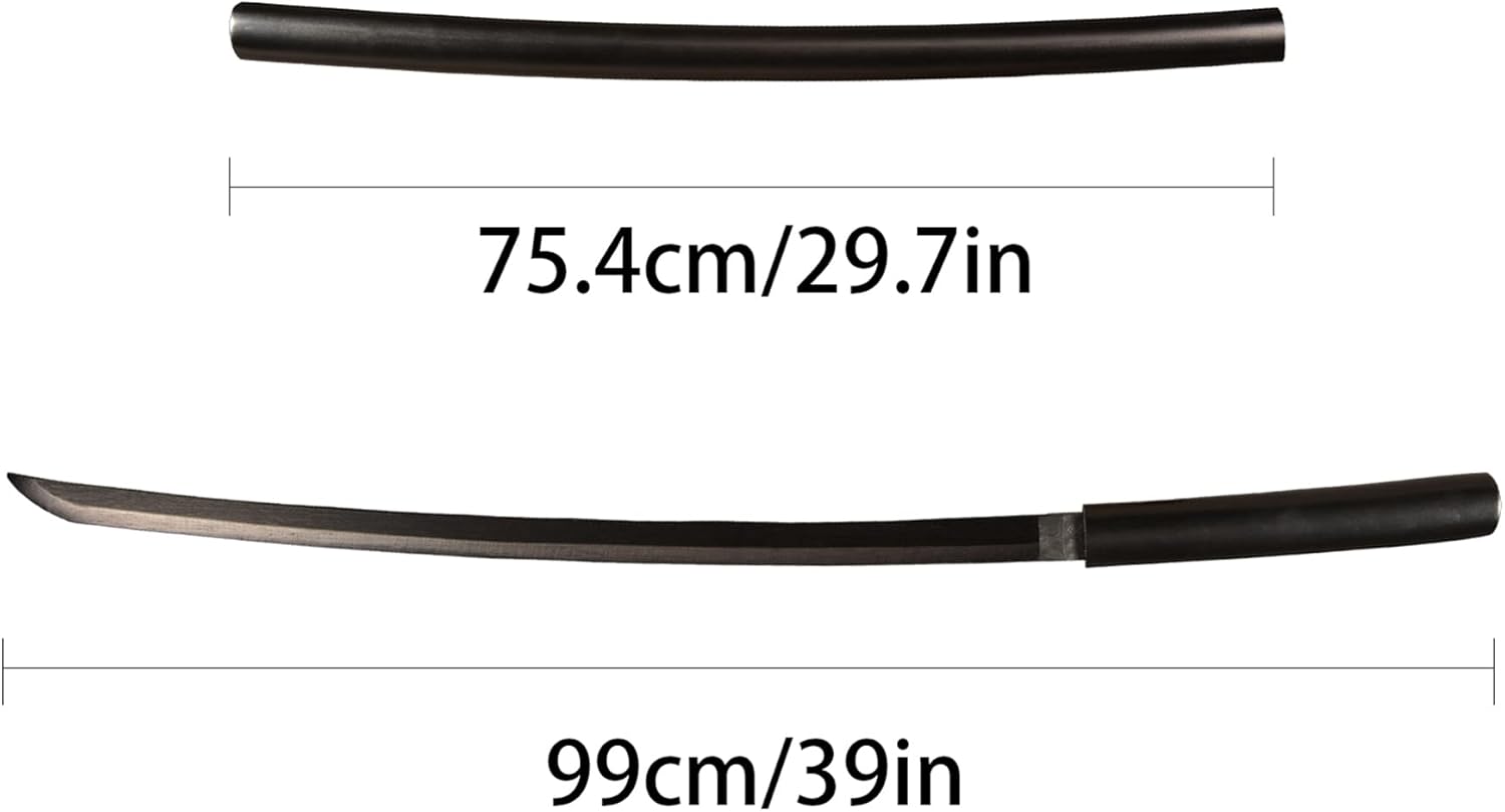 Spada di bambù leggera realizzata con cura La lunghezza totale è di circa 39 pollici, la lunghezza del fodero è di 29,7 pollici, la lunghezza del manico è di 9,4 pollici, la lunghezza della lama è di 27,5 pollici e il peso è di circa 0,77 libbre Il corpo della spada è fatto di bambù, che ha una buona tenacità e durata Il corpo della spada è trattato con vernice trasparente, che è resistente all'umidità e durevole Contattaci immediatamente se hai domande e offriamo garanzia di supporto al servizio al 100%