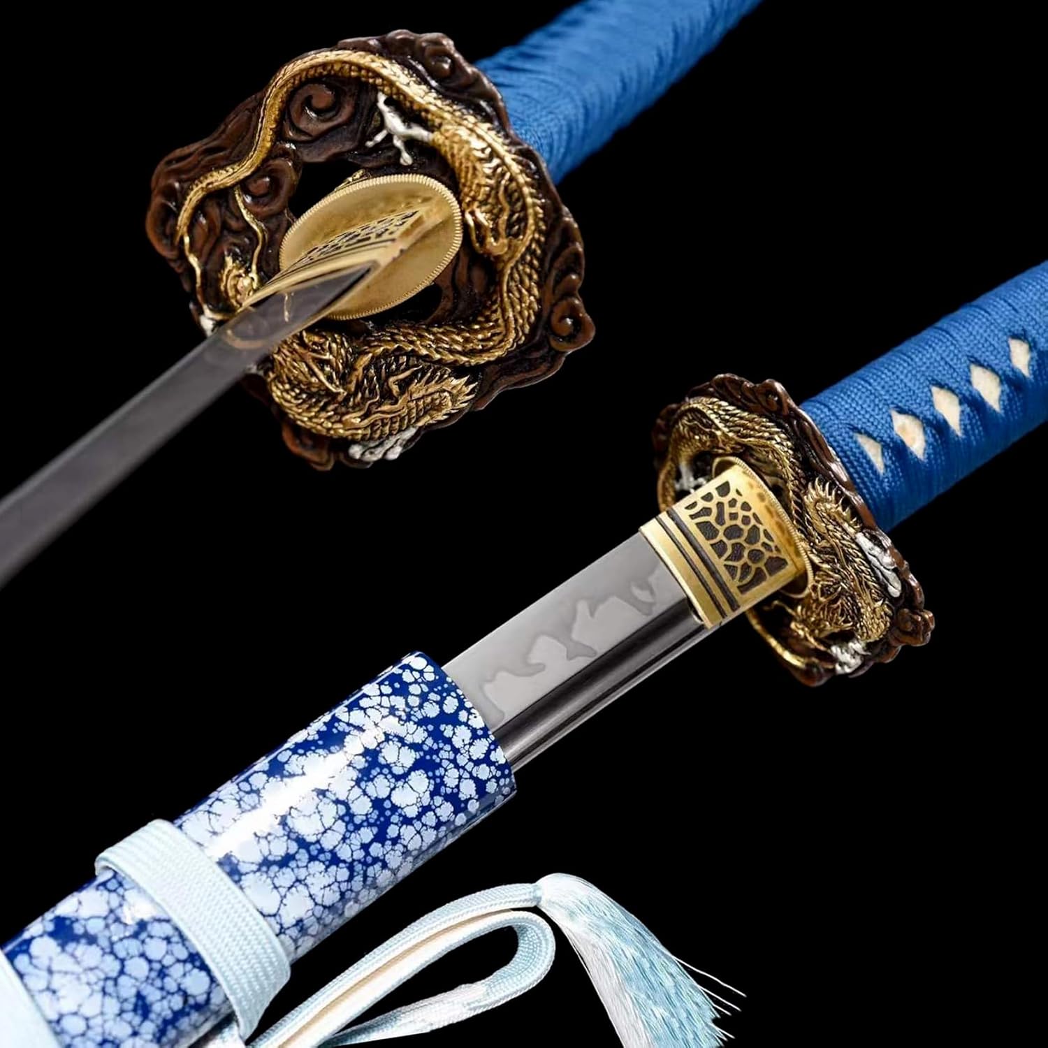 Ogni katana è un'opera d'arte unica. È la prima scelta per collezionisti e appassionati di arti marziali. La lama è realizzata in acciaio T10 di alta qualità con 18 processi di affilatura manuale e la durezza arriva fino a 60°. Lunghezza totale: 103 cm, lunghezza lama: 71 cm, lunghezza manico: 26 cm, larghezza lama: 3,2 cm, peso: 1,36 kg. Le proporzioni perfette non solo rendono la katana più bella, ma ne garantiscono anche la praticità e la funzionalità. Il manico è avvolto da una corda morbida che si adatta perfettamente al palmo della mano ed è facile da impugnare, offrendoti il massimo comfort durante l'utilizzo.