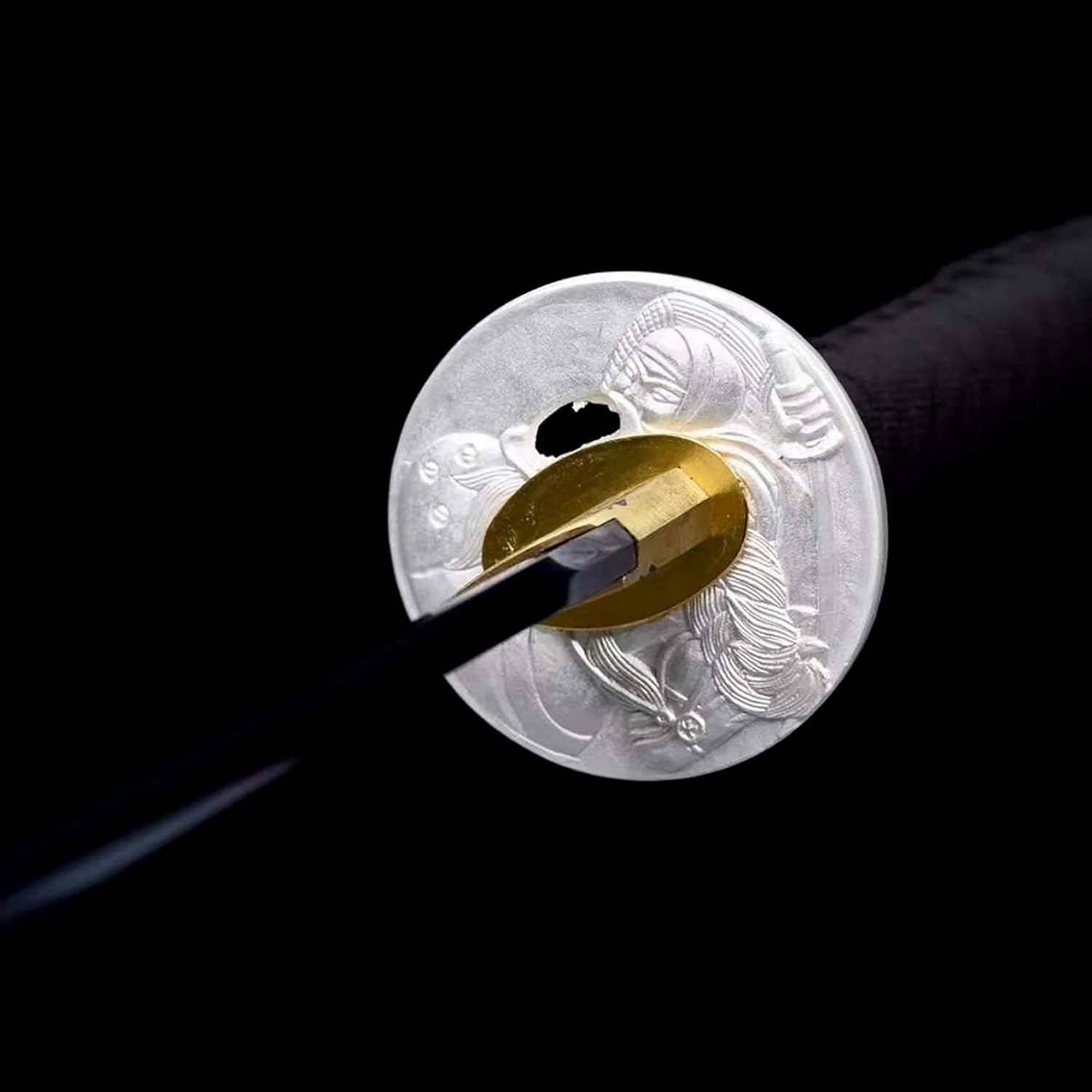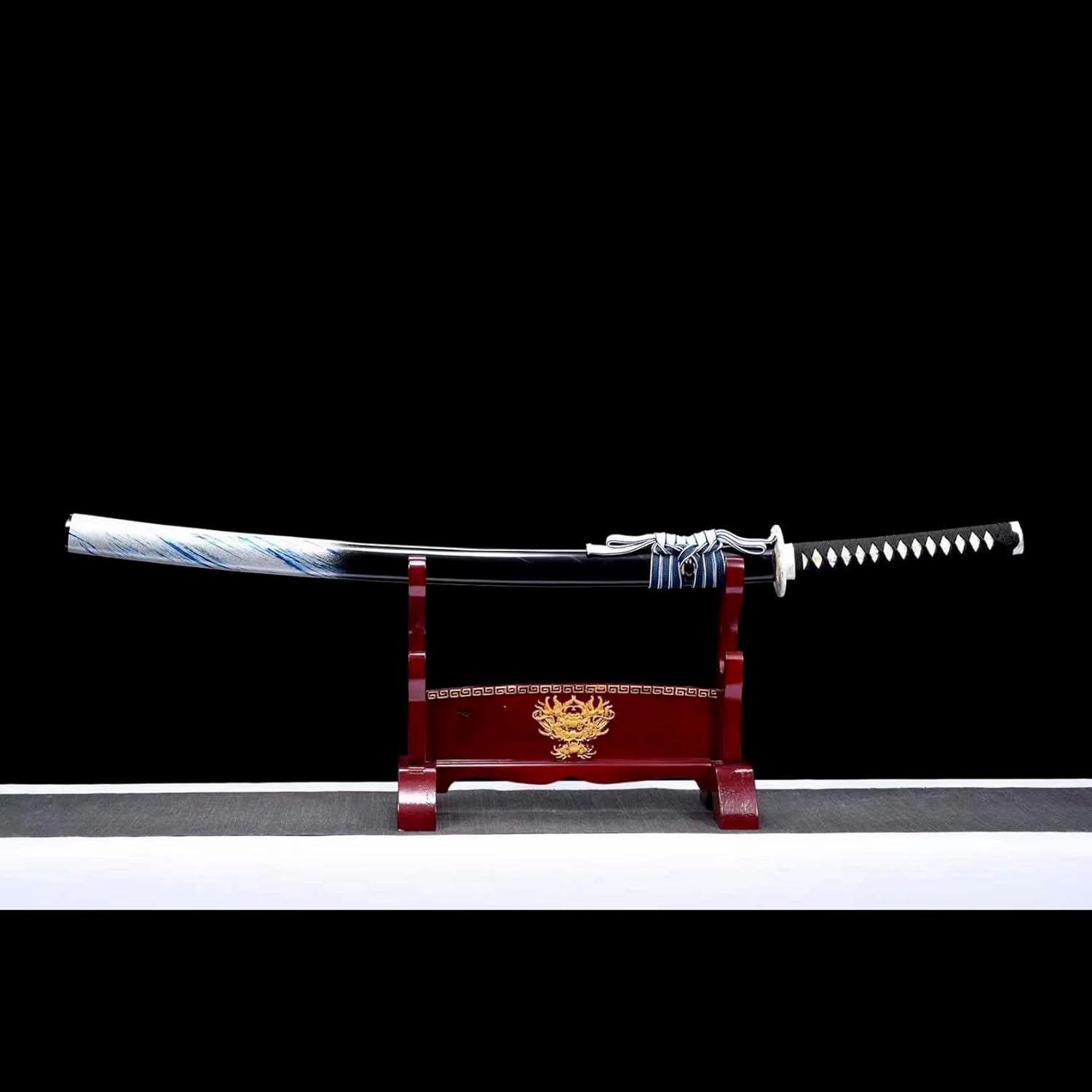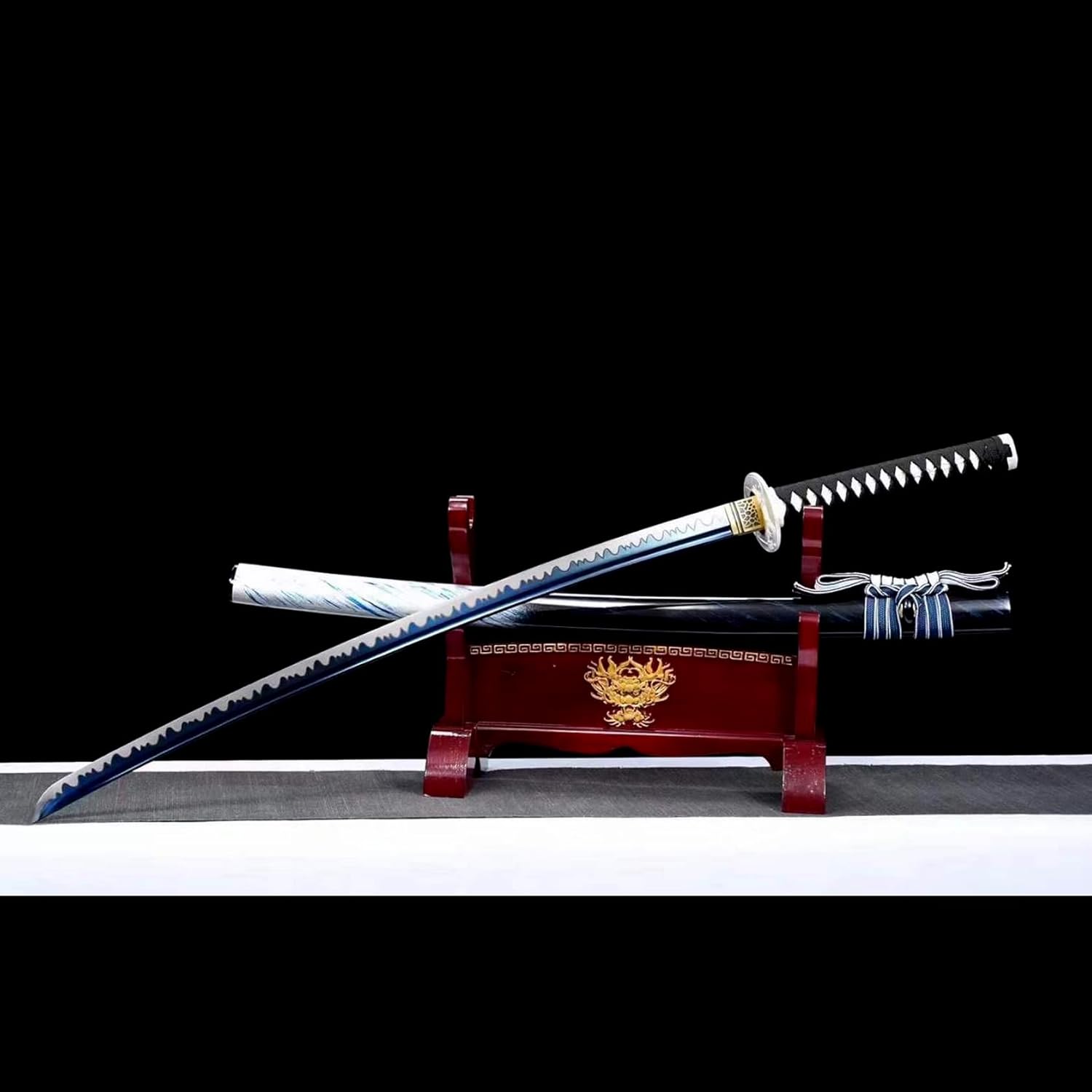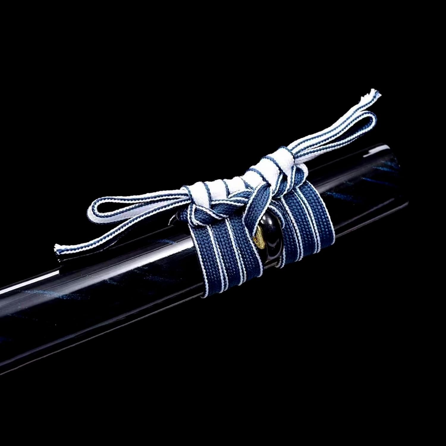 La lama è realizzata in acciaio per molle di alta qualità ed è prodotta utilizzando il tradizionale processo di forgiatura. Forgiato e affilato a mano per creare una lama perfetta. Lunghezza totale 103 cm, lunghezza lama 71 cm, lunghezza manico 26 cm, larghezza lama 3,2 cm, spessore lama 0,7 cm. Le proporzioni sono cruciali per la progettazione delle armi. Le proporzioni perfette non solo rendono la katana più bella, ma ne garantiscono anche la praticità e la funzionalità. La katana è dotata di un fodero in legno e l'esterno è verniciato a spruzzo, rendendola molto delicata e bella. Non solo protegge la lama da danni esterni, ma conferisce anche alla katana la sua bellezza unica. L'impugnatura è avvolta da una corda morbida che si adatta perfettamente al palmo della mano, è facile da impugnare e ha buone proprietà antiscivolo e resistenti all'usura, offrendoti il massimo comfort durante l'utilizzo.