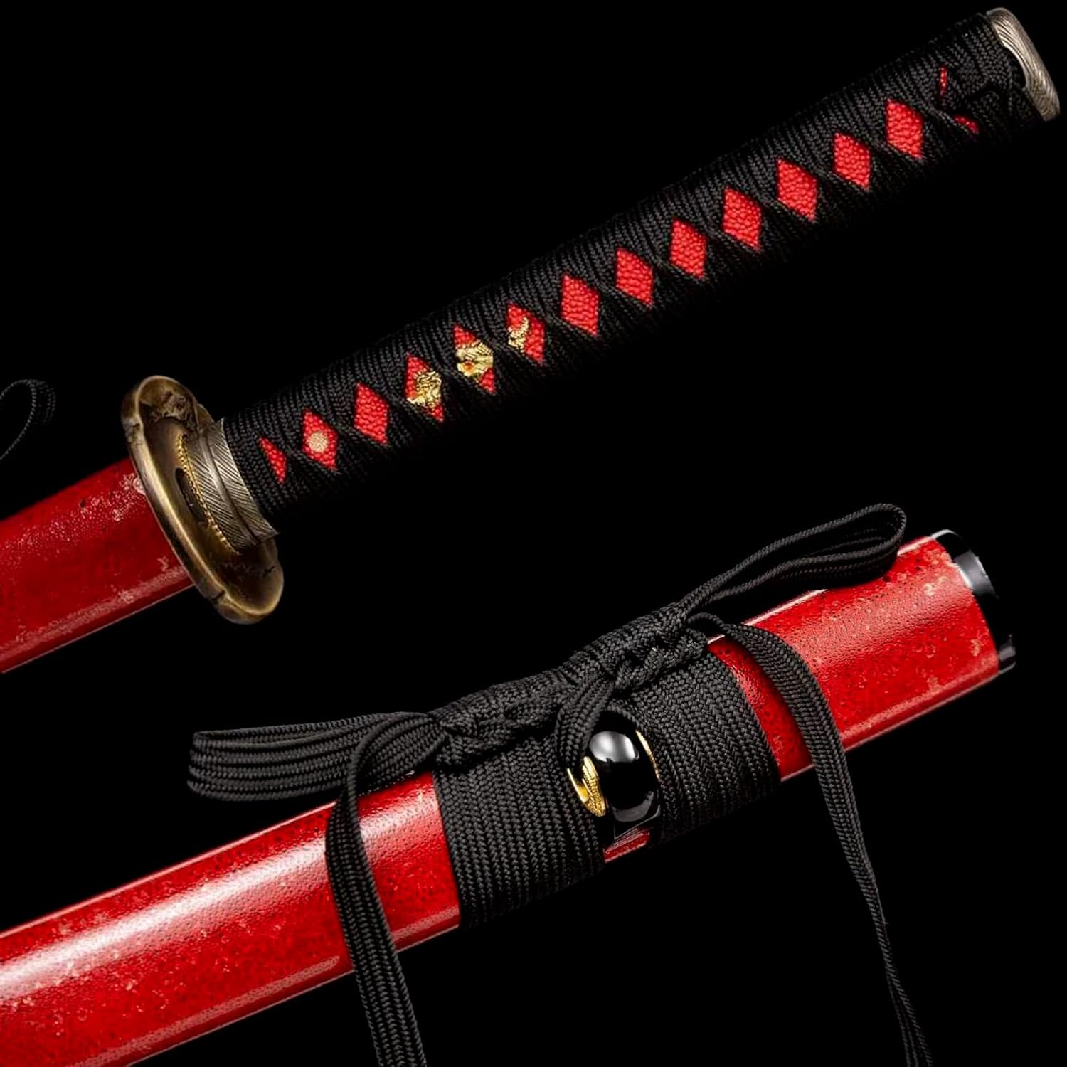 ❣️La lama è realizzata in acciaio per molle di alta qualità con una durezza fino a 60°. ❣️Il manico è avvolto da una corda morbida che si adatta perfettamente al palmo della mano ed è facile da impugnare, offrendoti il massimo comfort durante l'utilizzo. ❣️Ideale per Kendo, Iaido, arti marziali, collezioni, decorazioni per la casa, mostre, cosplay e altro ancora. ❣️Lunghezza totale: 103 cm, lunghezza lama: 71 cm, lunghezza manico: 26 cm, larghezza lama: 3,2 cm. ❣️Le proporzioni perfette non solo rendono la katana più bella, ma ne garantiscono anche la praticità e la funzionalità.