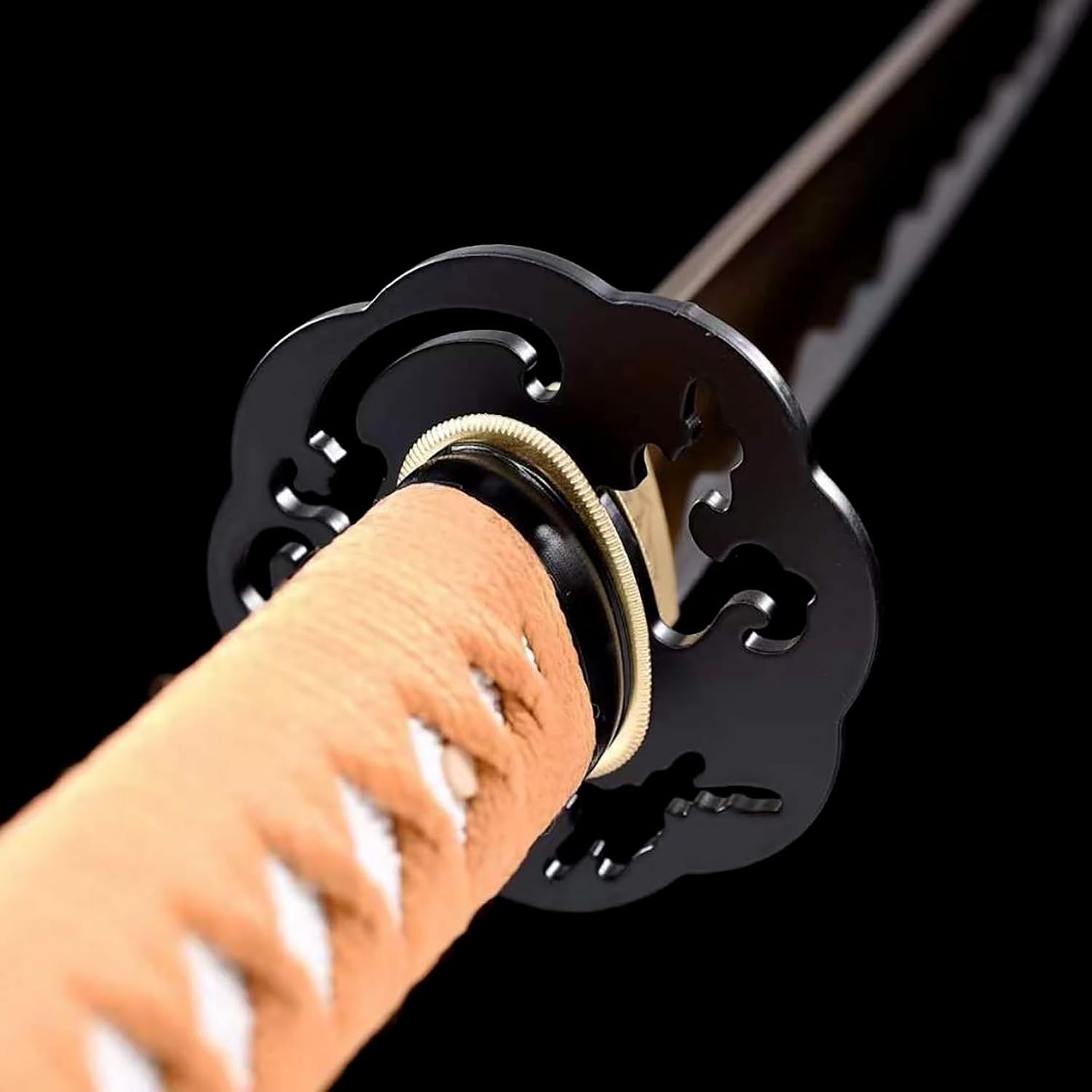 ி La lama è realizzata in acciaio al manganese di alta qualità, realizzato utilizzando tecniche tradizionali di forgiatura, e la lama è dorata con una durezza fino a 60°. Forgiato e affilato a mano per creare una lama perfetta. ி Lunghezza totale 103 cm, lunghezza lama 71 cm, lunghezza manico 26 cm, larghezza lama 3,2 cm. ி La lama è modellata in un unico pezzo e ha proporzioni perfette che ne facilitano la presa. Struttura perfetta, stabile e durevole. ி Le spade dei samurai sono versatili e perfette per regali, cosplay, collezioni, decorazioni per la casa, mostre, allenamenti di Kendo e Iaido, pratica di arti marziali, regali di Natale, Halloween, feste in costume, oggetti di scena, autodifesa, ecc. ி Ogni katana porta l'essenza dell'artigianato tradizionale. Dalla selezione dei materiali alla forgiatura, dall'affilatura alla tempra, ogni passaggio viene accuratamente lucidato dagli artigiani per garantire che ogni coltello sia un'opera d'arte unica.