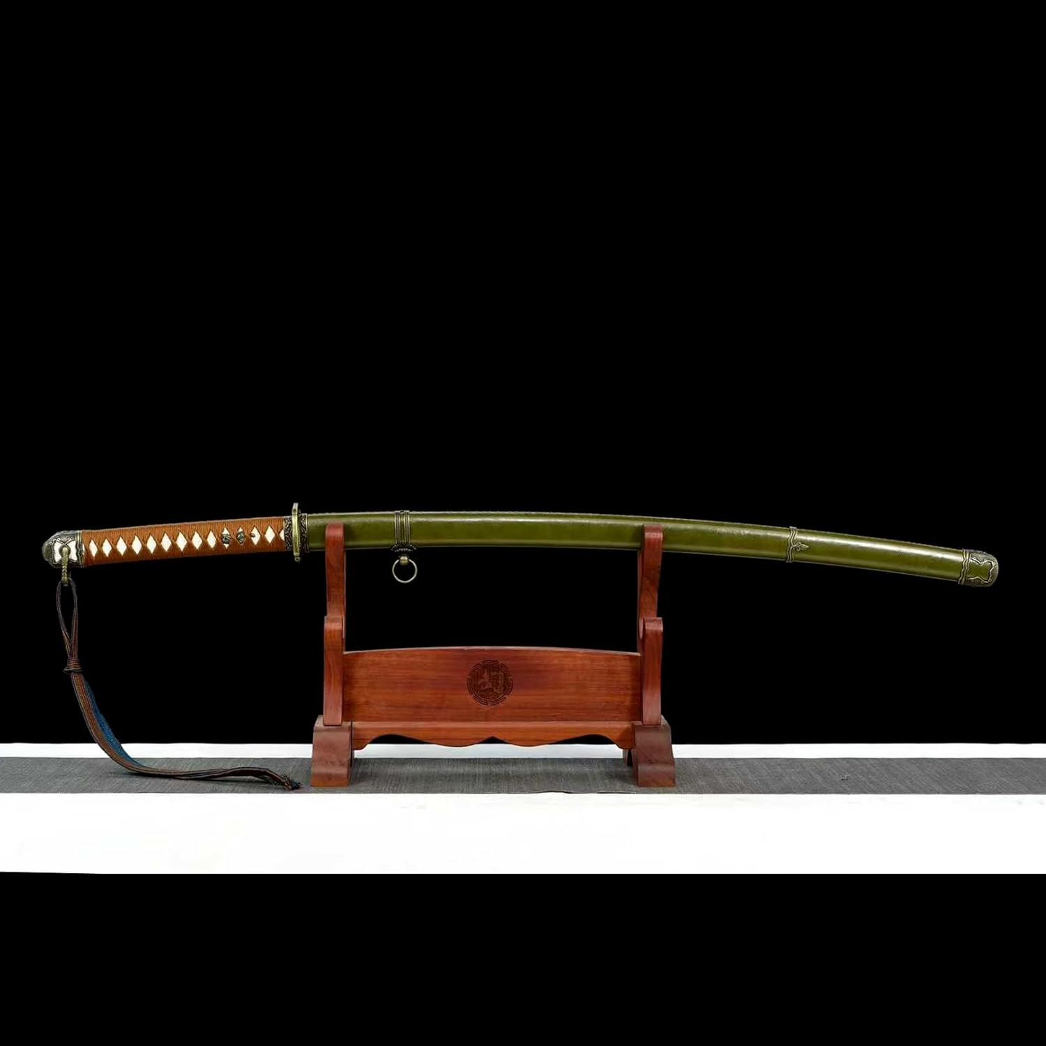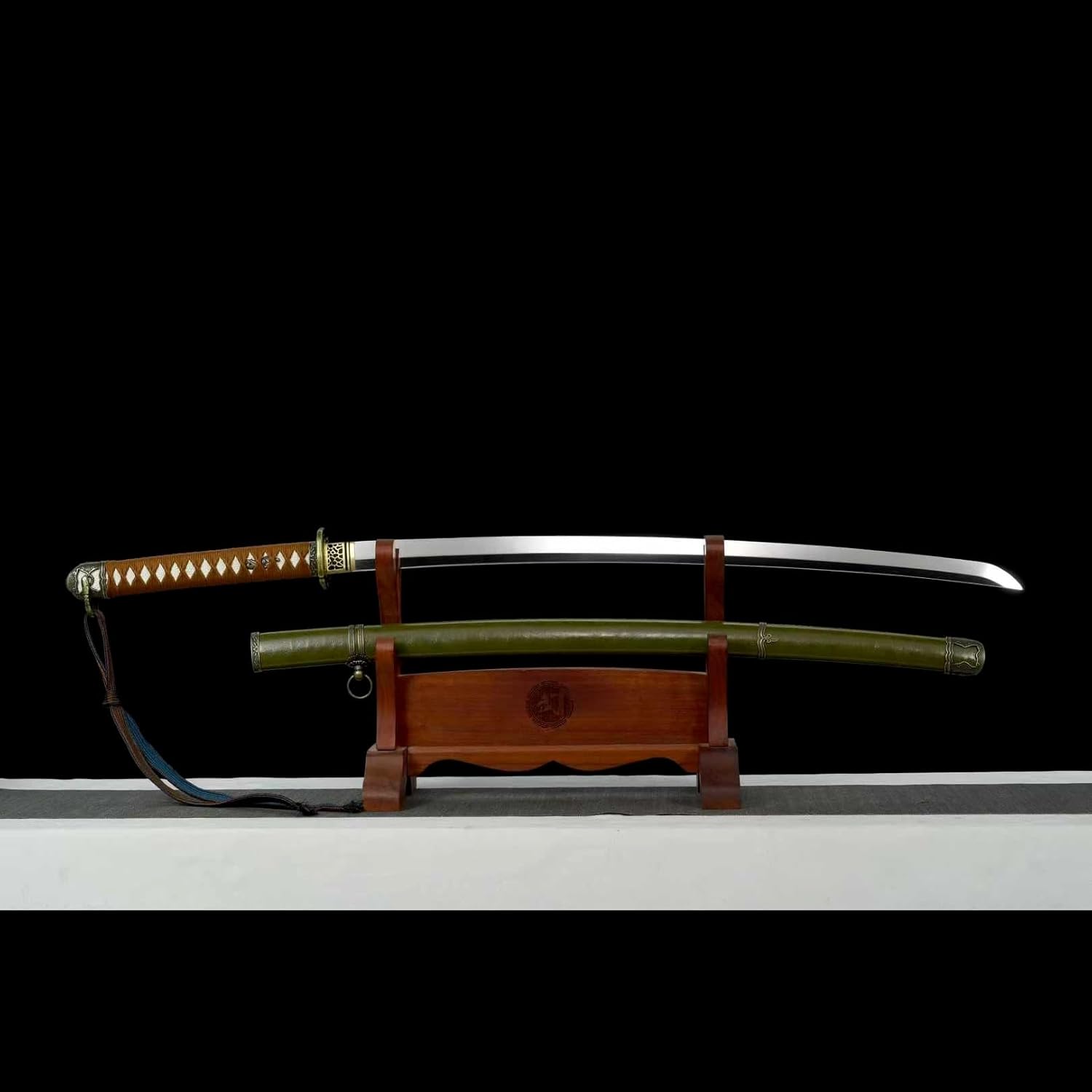 ✔️La lama è in acciaio al manganese. Durezza fino a 60°. La lama è stata accuratamente lucidata e brilla, e una luce fredda lampeggia dal bordo come se potesse tagliare qualsiasi cosa. ✔️Lunghezza totale: 103 cm, lunghezza lama: 71 cm, lunghezza impugnatura: 26,5 cm, larghezza lama: 3,2 cm. ✔️La dimensione perfetta rende la spada del samurai così armoniosa e bella. ✔️La katana viene fornita con un fodero in legno per riporre in sicurezza la lama. ✔️Il manico è avvolto da una corda morbida che si adatta perfettamente al palmo della mano ed è facile da impugnare.