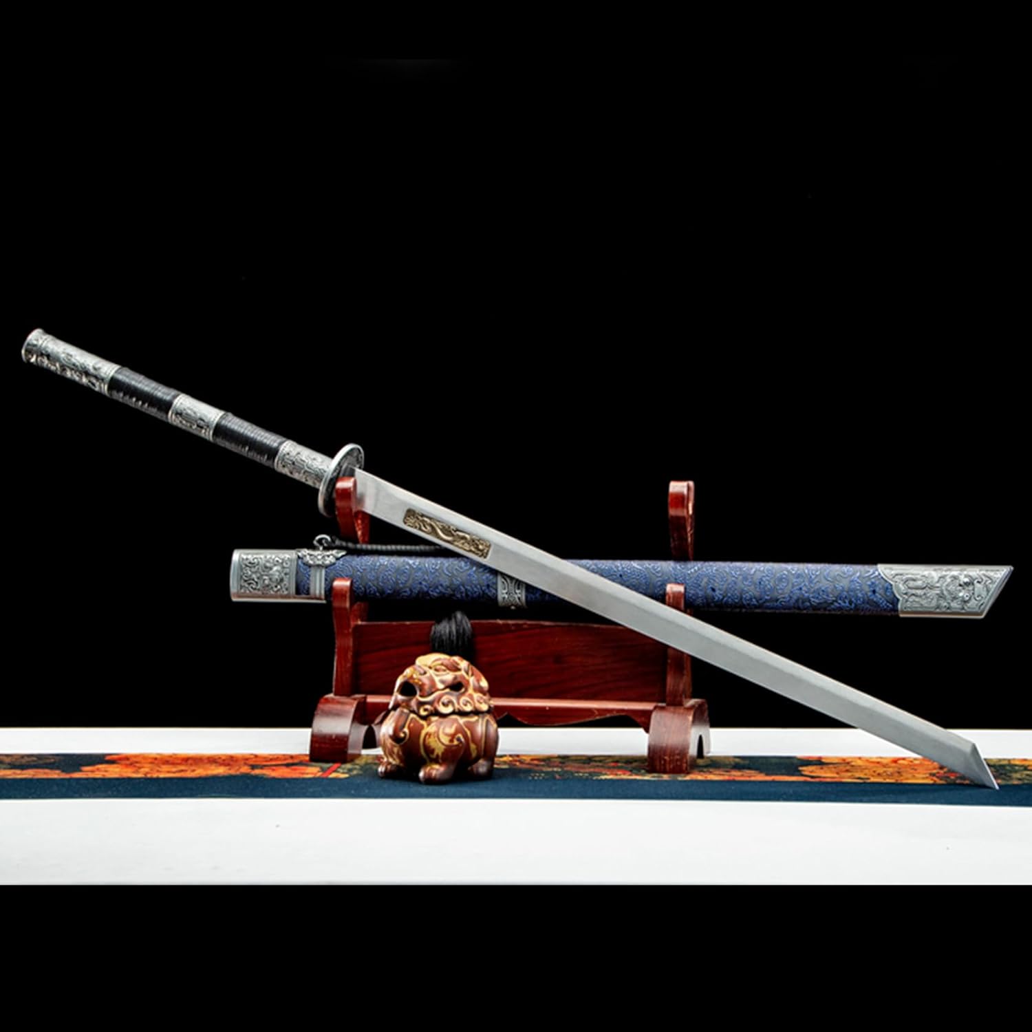 ✿ 【Materiali di alta qualità】 La lama della spada è realizzata in acciaio al manganese di alta qualità, lucida e dall'aspetto nobile ed elegante; il paramano è scolpito in metallo di alta qualità; Il fodero in legno è realizzato in legno rivestito in pelle stampata, che non solo ha un aspetto estetico ma fornisce anche una buona postura e protezione. ✿ 【Tecnica di forgiatura tradizionale】 Questa spada dritta cinese segue la tradizionale tecnica di forgiatura Longquan e utilizza la tecnica di forgiatura a mano pura. Ogni fase del processo è il risultato del duro lavoro e dell'abilità artigianale per garantire la robustezza del corpo della spada e ripristinare l'eleganza delle antiche spade famose. ✿ 【Lavorazione rigorosa】 La lama della spada è stata lavorata attraverso molteplici processi fini come indurimento, rinvenimento e reindurimento. Questi processi non solo aumentano la durezza e la tenacità del corpo della spada, ma lo rendono anche più durevole e meno soggetto a rotture, dimostrando le eccellenti capacità del mestiere. ✿ 【Ampie applicazioni】 Questa spada dritta cinese è adatta a varie occasioni, sia come pezzo da esposizione a casa o in mostre, come regalo per amici e parenti, o per autodifesa, performance di cosplay, celebrazioni festive, ecc., sarà il tuo compagno indispensabile. ✿【Proporzioni perfette】Lunghezza totale 115 cm, lunghezza lama 72 cm, lunghezza impugnatura 37 cm, larghezza lama 3,8 cm, spessore lama 0,5 cm, peso circa 2,2 kg. Queste dimensioni e peso sono progettati per garantire la stabilità e la maneggevolezza del corpo della spada senza essere troppo pesante, facilitando la gestione durante l'utilizzo.