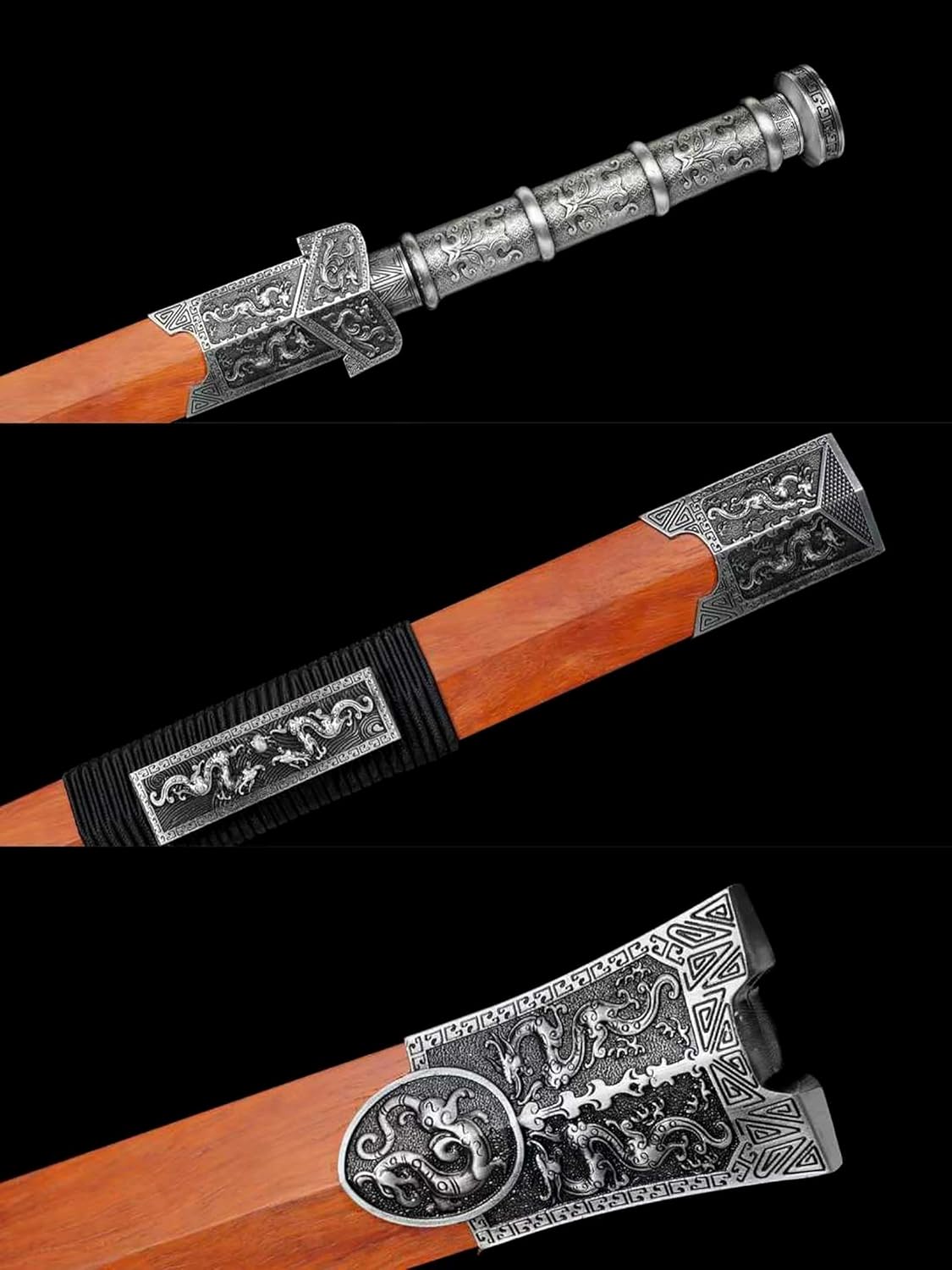 【Materiale lama】: acciaio modellato. Durezza fino a 60°. 【Materiale del fodero】: mogano. 【Materiale di protezione delle mani】: lega di zinco. 【Taglia】: Lunghezza totale: 102 cm, Lunghezza impugnatura: 21 cm, Lunghezza lama: 75 cm, Larghezza lama: 3,7 cm, Spessore lama: 0,75 cm, Peso totale: 2 kg. Adatto per: arti marziali, collezioni, mostre, regali, cosplay, decorazioni, ecc.