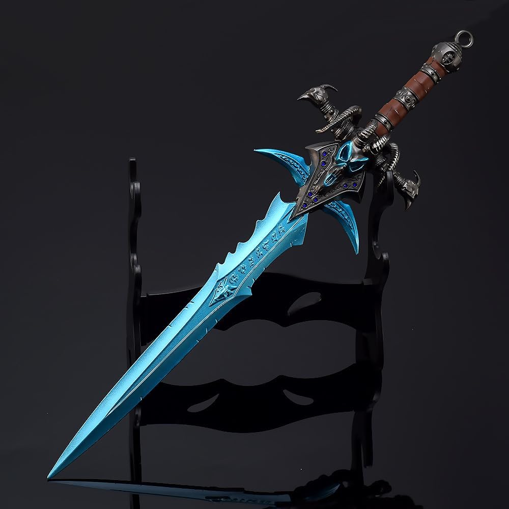*Modelli di World of Warcraft da collezione: sperimentare il potere del re Lich con questa straordinaria replica di spada di Frostmourne da World of Warcraft. Questa spada leggendaria è progettata appositamente per qualsiasi fan WOW che cerca di dare vita a un pezzo del gioco. *Collezioni dei fan: nel gioco Warcraft, in quel mondo virtuale, questi preziosi oggetti di scena portano sempre troppi ricordi, il warglaive di Azzinoth è senza dubbio l'arma più abbagliante tra loro. *Display unico: ogni spada blu Frostmourne è stata accuratamente realizzata dagli artigiani, che si tratti della consistenza del corpo della spada o della presa della maniglia, sono state accuratamente studiate.È un collezione accuratamente realizzato e una scelta ideale per gli appassionati di World of Warcraft. *Materiali di alta qualità: realizzato in lega di zinco durevole, questo pezzo da collezione è progettato appositamente per qualsiasi fan del gioco che cerca di aggiungere un tocco di fantasia alla loro collezione.Ha una bella lavorazione e un'eccellente sensazione di mano, garantendo che ogni dettaglio sia realistico con attenzione ai dettagli e costruita per durare, questa spada è un must per qualsiasi fan del gioco. *Il miglior regalo per gli appassionati di gioco: questo pezzo meticolosamente realizzato è pieno in una scatola regalo e include uno stand di display per mostrare dettagli intricati, perfetto come ornamento della stanza o decorazione desktop per gli appassionati di wow il regalo perfetto per qualsiasi giocatore o fan del popolare video popolareSerie di giochi.