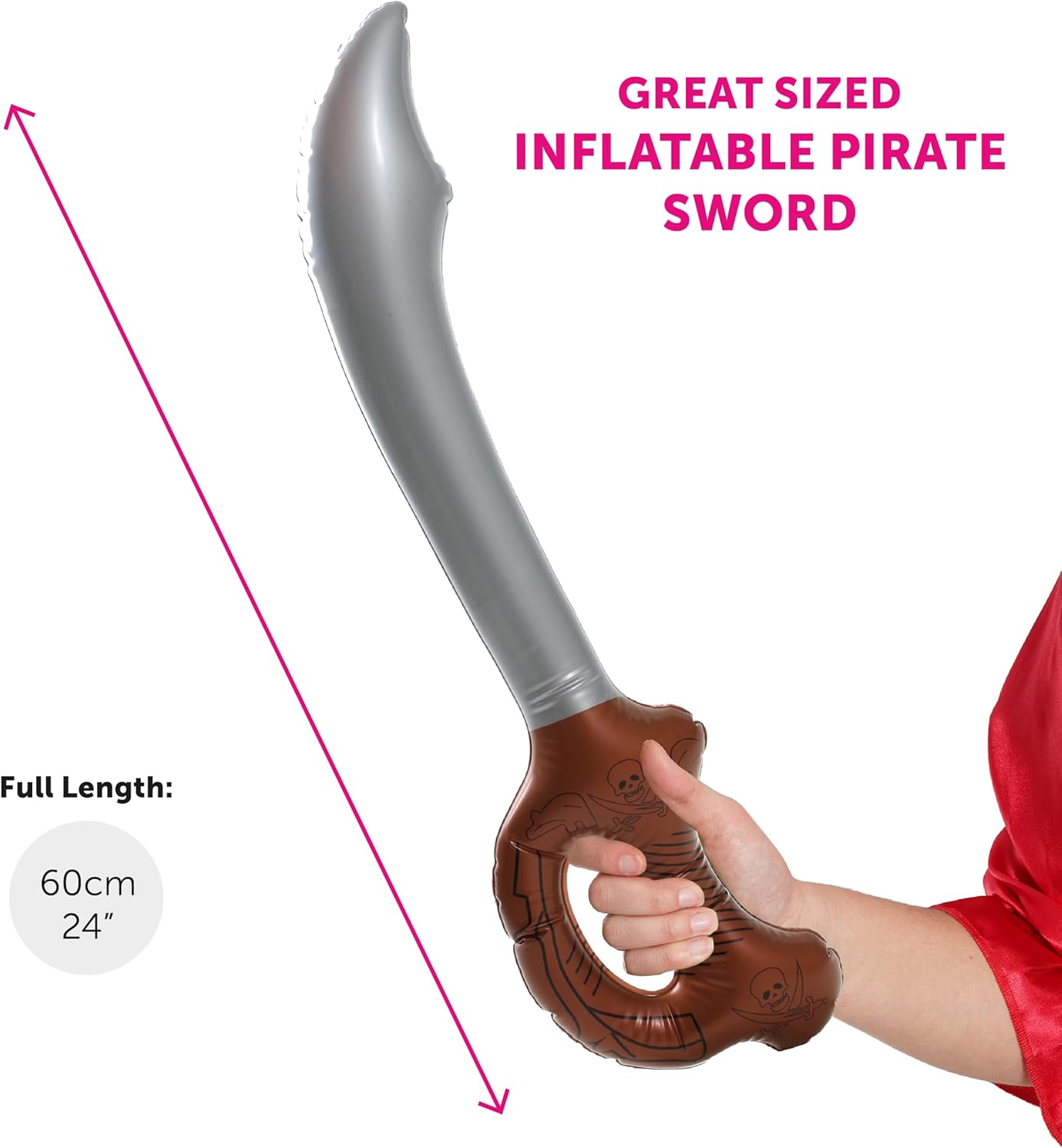 Spada gonfiabile da pirata, spada da pirata con lama argentata e manico marrone, accessorio per costume da pirata