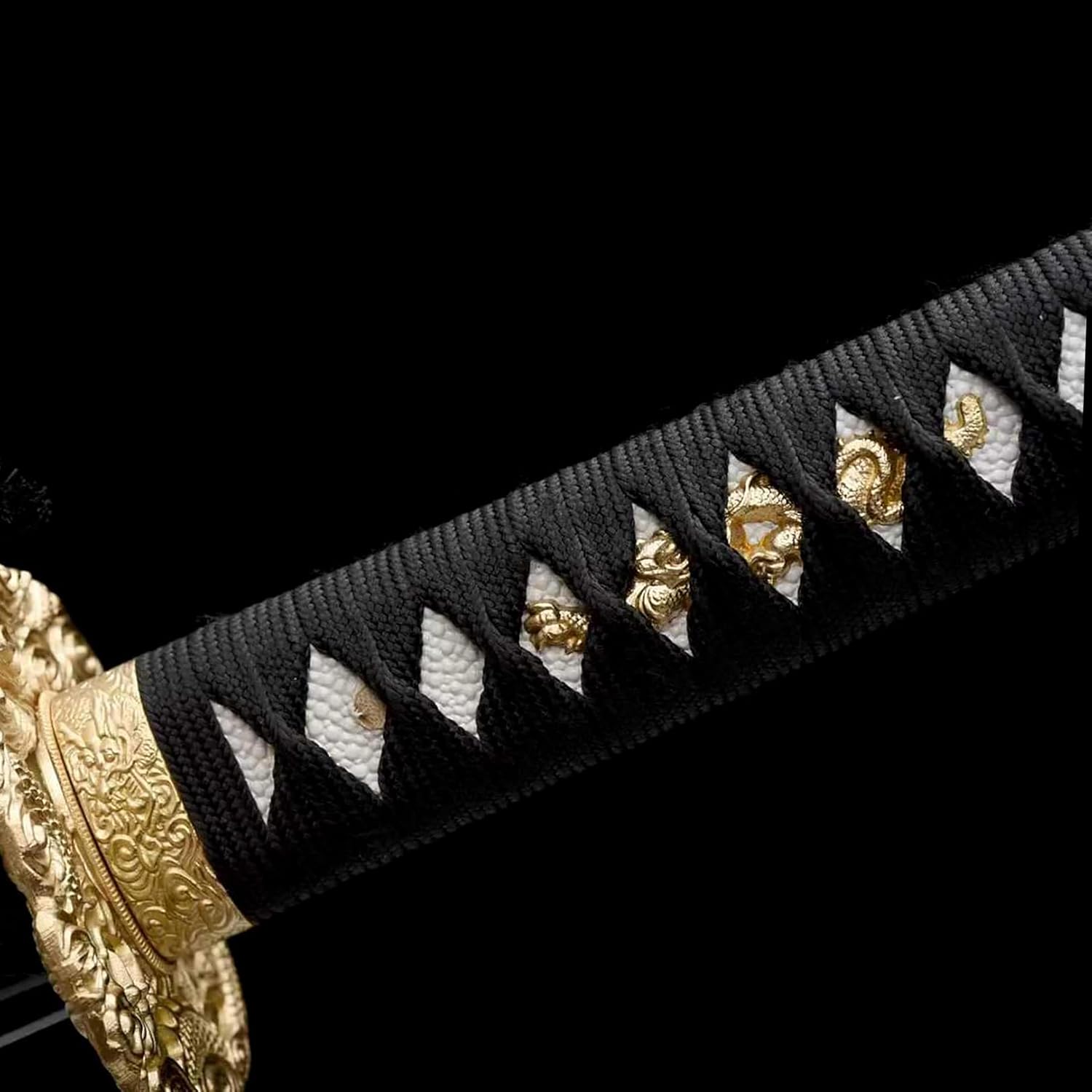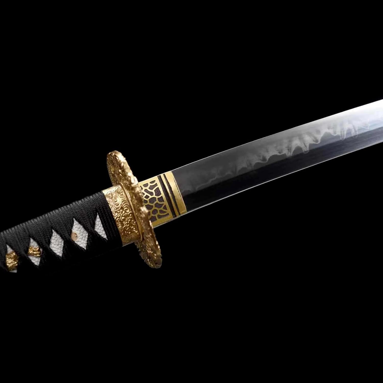 La dimensione perfetta rende la katana così armoniosa e bella. Lunghezza totale: 103 cm, lunghezza lama: 71 cm, lunghezza manico: 26 cm, larghezza lama: 3,2 cm, peso: 1,5 kg. Materiale lama: acciaio T10, materiale fodero: legno massiccio, materiale protezione mano: rame puro. La lama è stata accuratamente lucidata e brilla, e una luce fredda lampeggia dal bordo come se potesse tagliare qualsiasi cosa. Questa spada da samurai non è solo pratica, ma anche un tesoro agli occhi dei collezionisti. Ogni spada da samurai è un'opera d'arte unica. Questa spada da samurai è il regalo perfetto per chi ama la cultura giapponese o è interessato a collezionare coltelli.