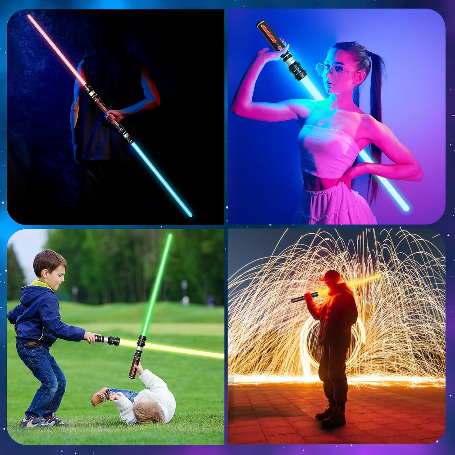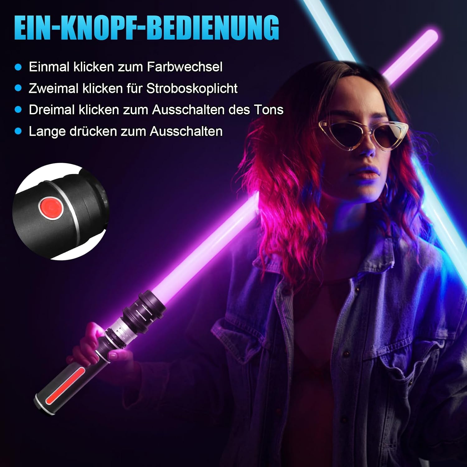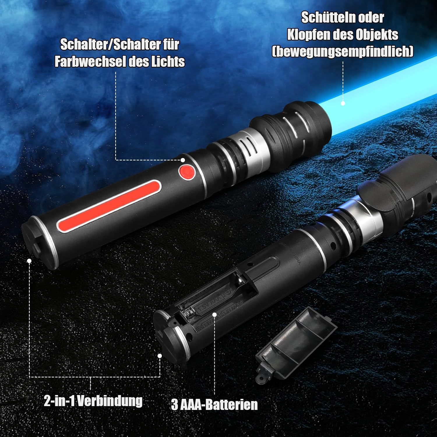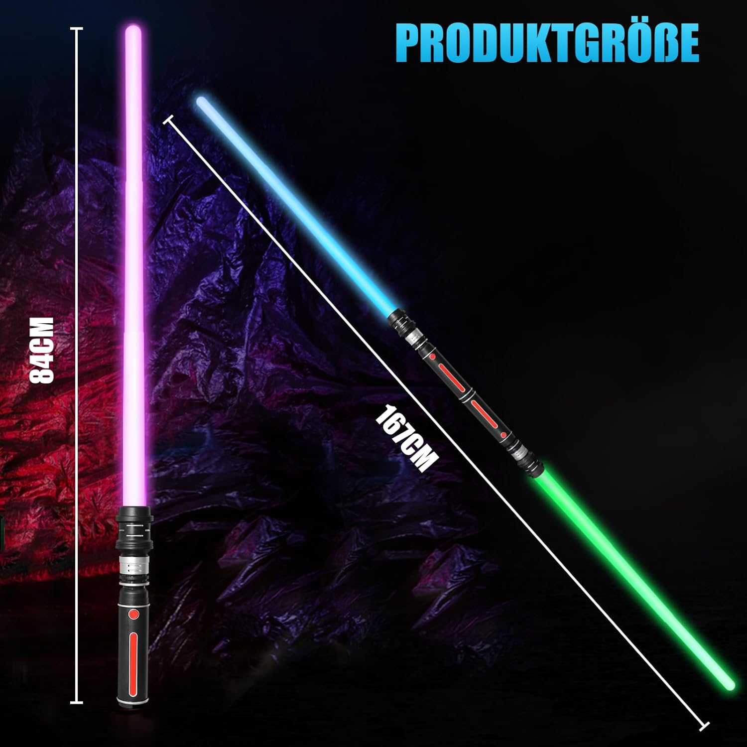 【12 colori RGB】 La spada laser a doppia faccia può produrre 12 effetti di luce. Fai clic per cambiare i colori e fai doppio clic per attivare la modalità burst, in cui la lama tremola come fiamme danzanti. Gli effetti sonori realistici cambiano quando accendi la spada, come se fossi nel mezzo di un'epica battaglia galattica. 【Spada laser 2 in 1】 La lunghezza della lama singola può essere estesa da 46 cm a 84 cm. L'elsa della spada laser è dotata di un connettore all'estremità e, ruotandola, è possibile collegare due spade laser tra loro, raggiungendo una lunghezza totale fino a 167 cm. 【Materiale sicuro】 La spada laser è realizzata in plastica di alta qualità, splendidamente lucidata, comoda da impugnare, non facile da piegare, antiurto e riutilizzabile. Puoi usare la spada laser per duellare o oscillare dolcemente senza preoccuparti che venga danneggiata. 【Battaglia del destino】 Spegni le luci e sfrutta il potere della Forza con queste spade che si illuminano al buio con LED luminosi che cambiano colore e suoni FX, scegli il tuo colore preferito per determinare la tua abilità e mostra il tuo lato prescelto in questa battaglia interstellare. 【Versatile】: le spade laser sono il regalo perfetto per compleanni, Natale e Halloween. La spada luminosa può essere utilizzata per feste in costume, eventi cosplay, intrattenimento di gioco e altre occasioni. Ricrea i combattimenti divertenti dei tuoi programmi e film preferiti con le nostre spade laser. 【Qualità dei servizi】 La spada laser è alimentata da 3 batterie AAA, che non sono incluse e devono essere acquistate da soli. Se hai domande dopo aver ricevuto il prodotto, contattaci e ti risponderemo immediatamente. Attenzione: una forza eccessiva o impropria può danneggiare il prodotto. Attenzione: una forza eccessiva o impropria può danneggiare il prodotto.