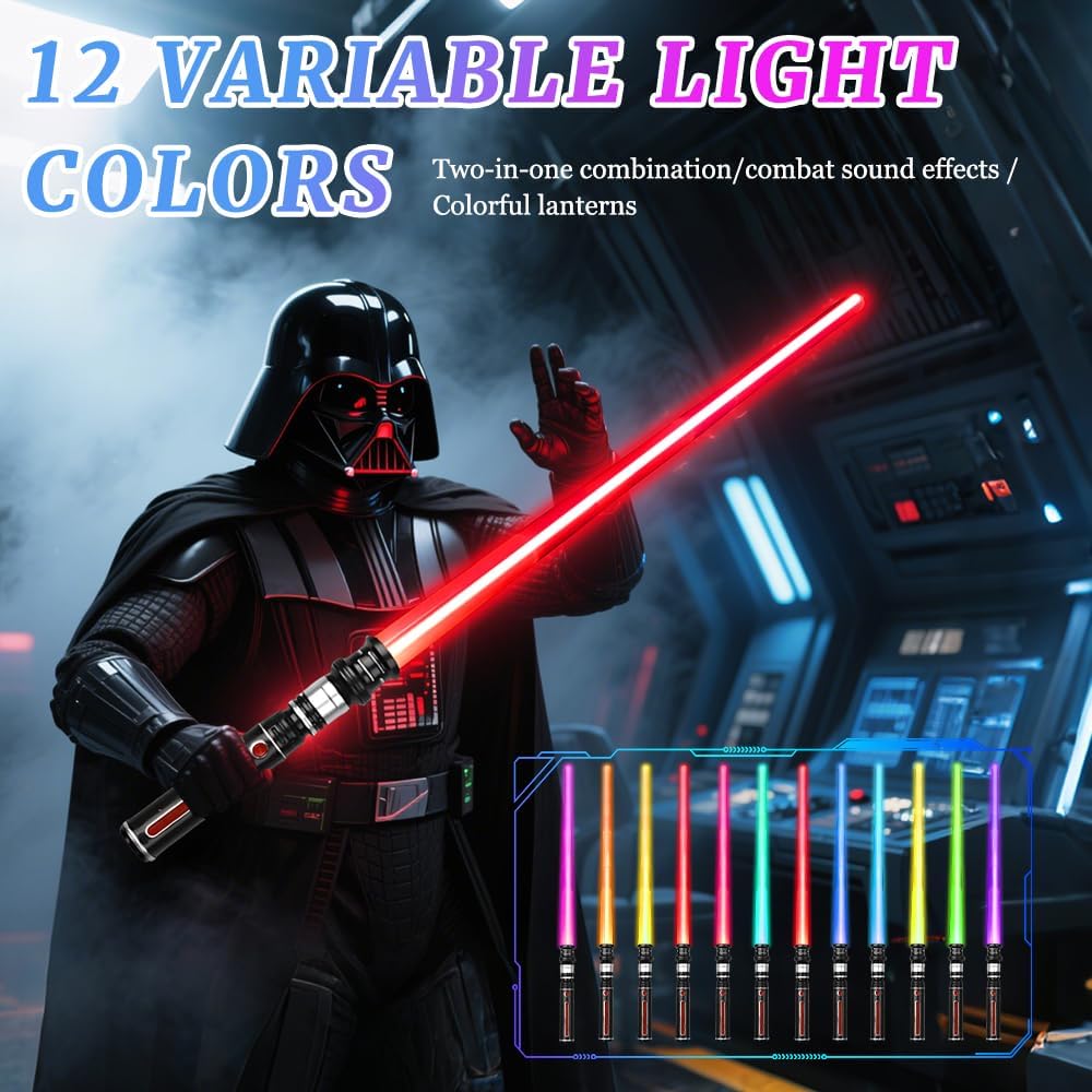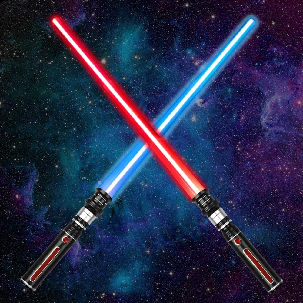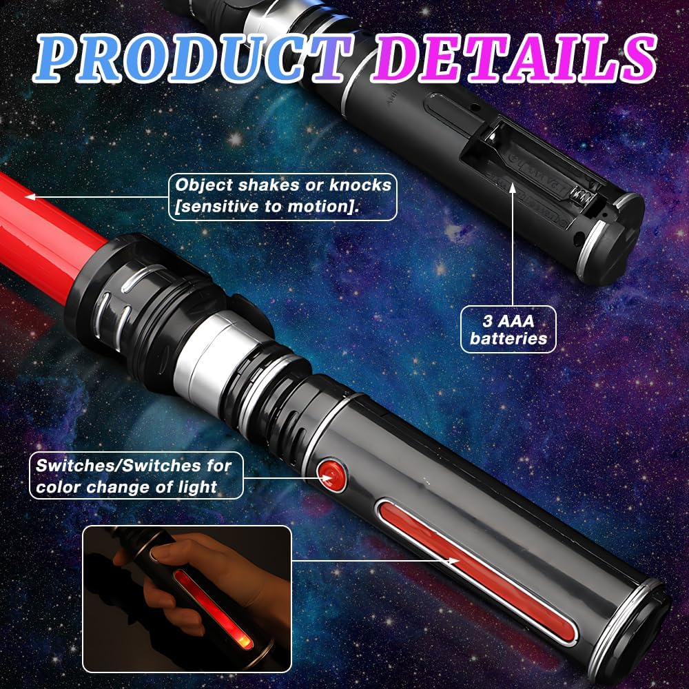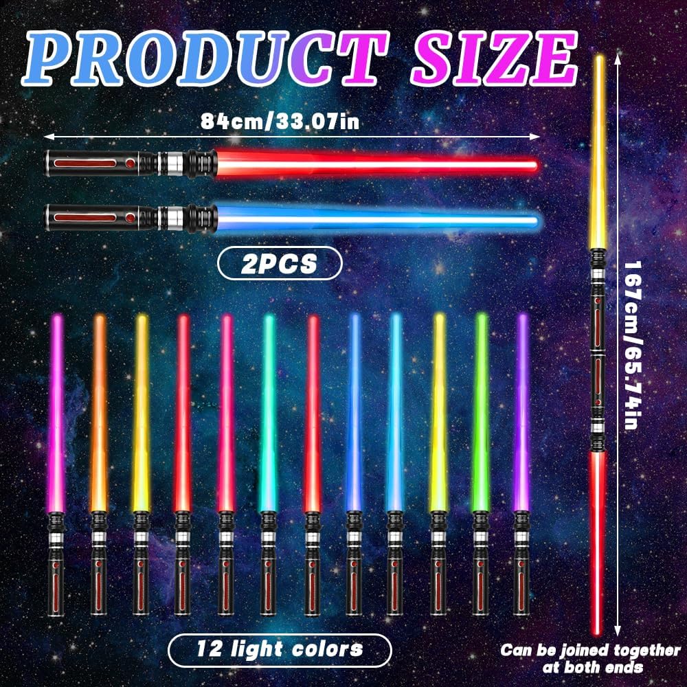 Cambiamenti di colore ed effetti sonori: questo è un giocattolo spada laser molto interessante, in grado di produrre 12 effetti luminosi, principalmente nei colori viola, blu, verde, rosso e giallo, accompagnati da realistici effetti sonori di combattimento, come se foste nel bel mezzo di un'epica battaglia galattica, offrendo a voi o ai bambini un'esperienza di gioco di ruolo coinvolgente Spada laser retrattile 2 in 1: la spada laser per bambini è estensibile e regolabile. La lunghezza della singola spada laser può essere estesa da 46 cm a 84 cm. La spada laser per bambini ha un connettore all'estremità dell'impugnatura che può essere ruotato per collegare le due spade laser per una lunghezza totale di 167 cm Sicurezza e durata: la spada laser per bambini è realizzata in plastica di alta qualità, è splendidamente lucidata, è comoda da impugnare, non si piega facilmente, è resistente agli urti e riutilizzabile. È possibile giocare e combattere con la spada laser senza preoccuparsi di danneggiarla. Nota: alimentazione tramite 3 batterie AAA, batterie non incluse. Durante il gioco e il combattimento, prestare attenzione alle misure di sicurezza adeguate per evitare lesioni Esperienza di gioco fantastica: spegnete le luci e utilizzate la forza della Macht con queste spade che brillano al buio, combattete battaglie simulate emozionanti e godetevi il vostro tempo libero. Preparatevi a immergervi nell'atmosfera coinvolgente delle spade laser o a creare il vostro video di sfida con la spada laser Regalo ideale: la spada laser non è solo un giocattolo per bambini, ma anche un'ottima decorazione e un oggetto di scena interattivo per feste, celebrazioni e altre occasioni, ad esempio feste a tema Galactic Warrior, Natale, feste in maschera di Halloween, spettacoli, film, oggetti di scena per giochi di ruolo e ospitalità. Che sia un regalo o una decorazione per una festa, garantisce divertimento infinito e momenti salienti