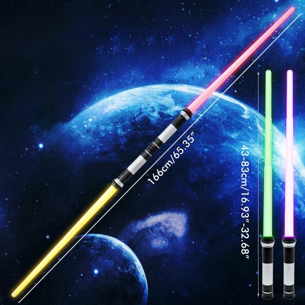 Giocattolo a spada: è realizzato in plastica di alta qualità e resistente. La dimensione della spada telescopica (accorciata: 44,5 cm, dimensione più lunga: 78 cm) utilizza 3 batterie AAA (non incluse). Effetti sonori simulati reali: quando agiti o attacchi, ci saranno effetti sonori realistici di battaglia! Immergiti nella spada! Luce LED: la spada ha una luce LED brillante, che può brillare al buio e illuminare la scena. 3 colori chiari, porta 'arma a doppio taglio e mostra le tue abilità di combattimento con gli amici nello spettacolo di luci. 3 colori monocromatici, puoi scegliere quello che ti piace in base alle tue preferenze. Puntelli di ruolo: La spada laser sembra davvero forgiata in futuro. Look fantascientifico originale come una sciabola giocattolo brillante per la stanza dei bambini, ma anche i giovani di cuore e collezionisti di merci apprezzeranno questa spada laser. Accessori per l'abbigliamento: questa spada è ottimo accessorio per qualsiasi film fantasy o costume di ruolo. Emozionanti combattimenti con spada laser e scene di battaglia spaziale che emozionano. Grazie al suono, alle luci e all'estensione/retrazione, si possono ottenere grandi effetti.