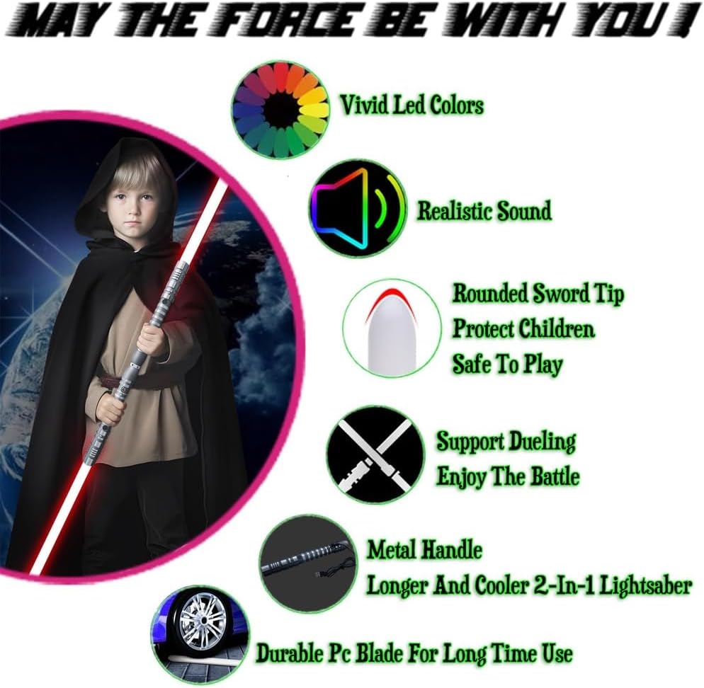 1. DESIGN SICUREZZA: Punta rinforzata con guaina termorestringente previene distacco durante gioco, lama in policarbonato ad alta resistenza adatta ad attività familiari e scolastiche 2. ESPERIENZA IMMERSIVA: Offre profili sonori classici con funzione muto, variazioni controllate da pulsante alone metallico per scenari di ruolo cinematografici 3. VERSATILE PRONTO AL COMBATTIMENTO: Connettore 2-in-1 per duelli prolungati. Lame ed impugnature staccabili permettono combinazione in design doppia lama ideale per avventure esterne o battaglie di gruppo interattive 4. MANEGGIO PREMIUM: Costruzione ergonomica impugnatura metallica. Manico pieno metallo distribuisce peso bilanciato e presa antiscivolo migliorando comfort per uso prolungato da adolescenti e adulti 5. ALIMENTAZIONE PRATICA: Batteria ricaricabile USB e ricarica rapida, ripristino energetico rapido entro ore per sessioni di gioco spontanee
