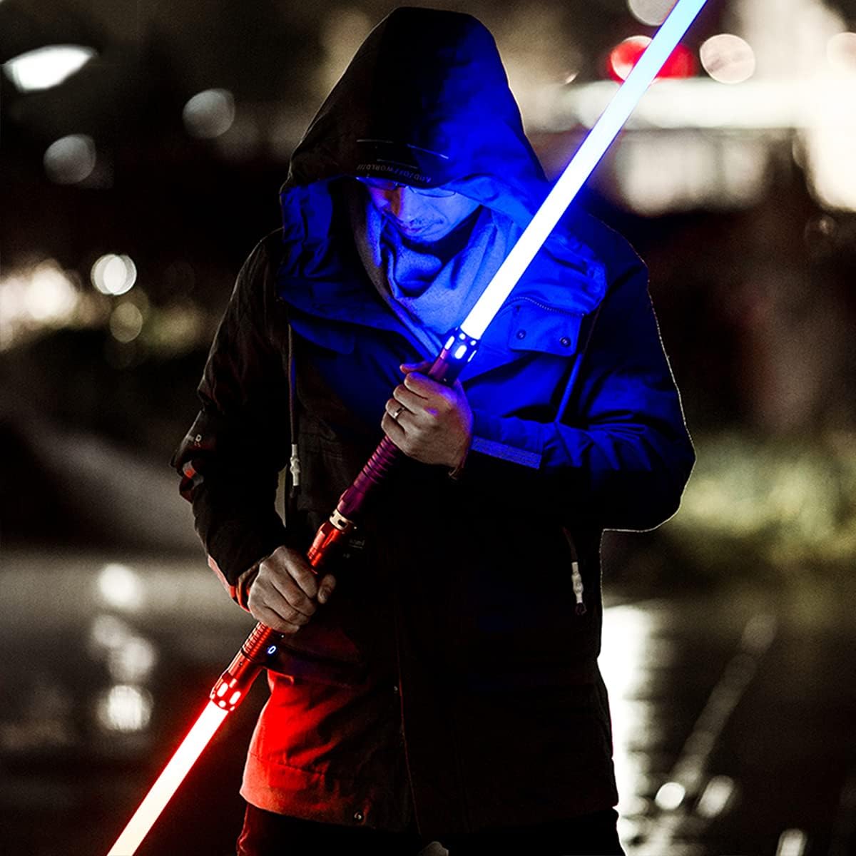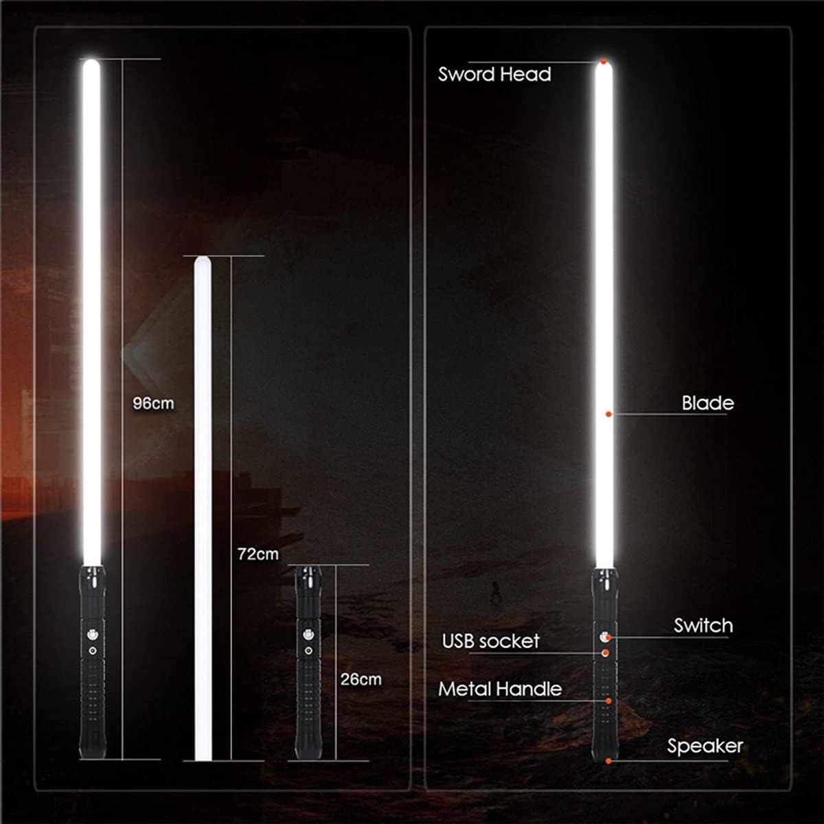 Saber leggero con manico in metallo in alluminio: la maniglia della sciabola è realizzata in alluminio metallico, e si sente a suo agio. La mano è leggera e robusta, e la sua maniglia metallica liscia ti eccitarà quando lo tieni. Quando lo fai scorrere, è come una vera spada. Lame luminose: tutti gli stili includono lame. Quando accendi il pulsante di illuminazione, sentirai che la vera sensazione di battaglia cambierà durante la battaglia. Le lame per PC di alta qualità, supportano Duelli reali, lampeggianti quando si collide. 11 tipi di effetti di illuminazione: la spada laser ha 11 colori vivaci, giallo / arancio / rosso / viola / blu / rosa rosso / azzurro / blu chiaro / verde blu / verde / bianco, colori multipli, semplice modalità di cambio colore, è possibile cambiare la selezione arbitrariamente Il miglior regalo: la lama può essere rimossa per una facile conservazione. L'elsa è lunga 26 cm e la lama è lunga 72 cm, che è leggera in peso. La lunghezza totale della spada è di 96 cm. Un giocattolo genitore-bambino adatto per adulti e bambini, utilizzato su compleanni o festività. USB ricaricabile: la spada laser è dotata di un cavo di ricarica USB, che può essere collegato alla porta USB del computer per la ricarica o può essere collegata a un caricabatterie che emette 5v1a! ! ! La testa di ricarica non può superare 5V2A, altrimenti brucerà il circuito della spazzatura!
