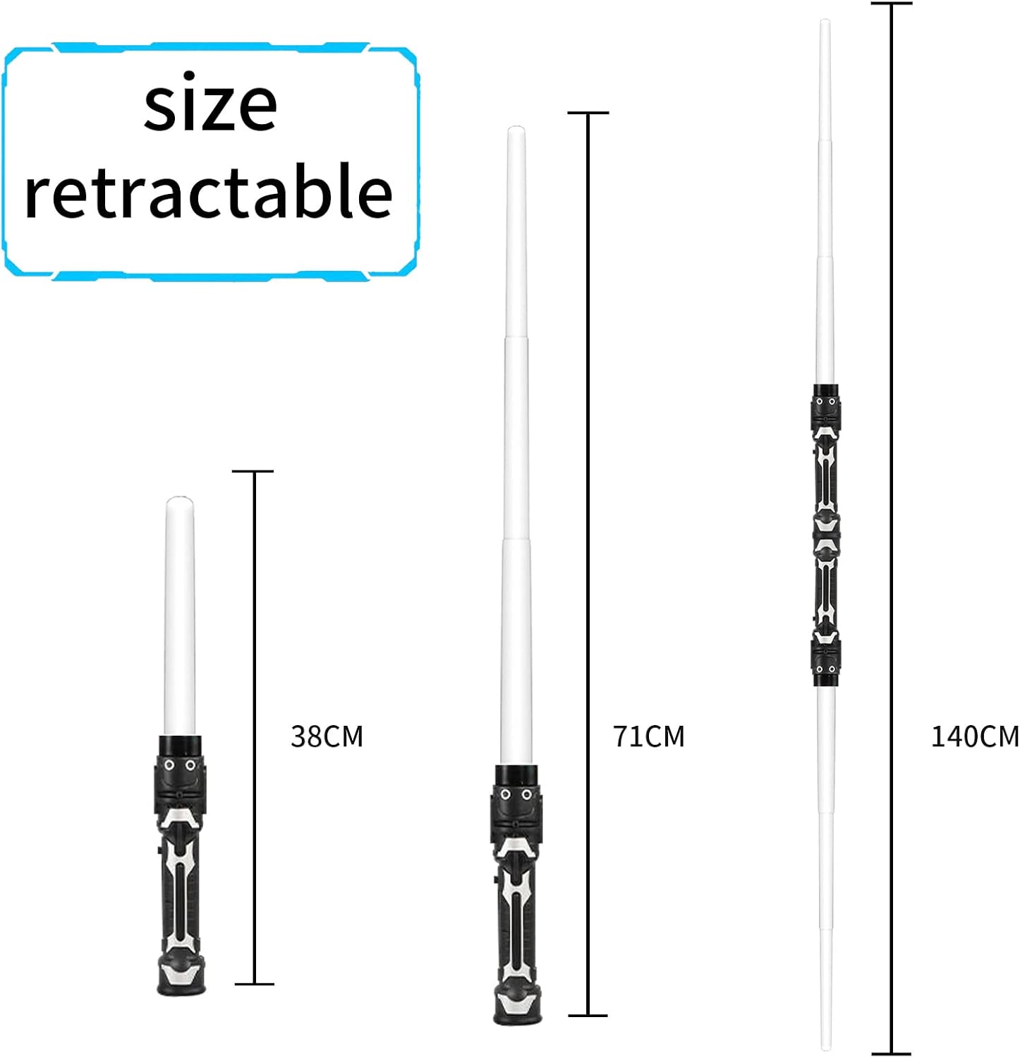 ★【Materiale sicuro e durevole】:La sciabola laser è fabbricata in plastica di alta qualità, con una trasparenza e un'elevata durevolezza. È durevole, riutilizzabile, adatto ai bambini, facile da usare e non tossico. Comodo per i bambini di più di 3 anni ★ Design più recente]:Le nostre due sciabole laser possono non essere solo dei giochi separati, ma c'è anche un connettore per combinare la lampada a due, il tubo luminoso è retrattile, facile da trasportare e da riporre, in modo che tu possa apprezzare il tuo plaisir. ★[Doppie spade laser]: 2 spade laser possono essere combinate in un unico laser a sciabola tramite il connettore, lungo solo 138 cm, per un divertimento ancora maggiore. Il poignee può essere utilizzato anche per facilitare il raggio d'azione e il trasporto, permettendoti di giocare senza limiti. ★[Ottimo cadeau]: Sabre laser robuste per adulti e bambini, Sabre laser fosforescente, immaginaz-vous in the peau dun guerrier, per les garçons et les filles, il saber laser è una divertente sorpresa per ogni occasione. Perfetto per i cadeaux de Noël, i costumi di Halloween, gli anniversari, le feste di famiglia, il campeggio all'aria aperta e altro ancora! ★【Les lumières froides e les effect sonores】:6 modalità e 7 cambi di colore, la sciabola laser a 7 colori può essere regolata in base al colore sorgente e può essere utilizzata in diverse scene di divertissement. La sciabola laser a doppio transchant è figlia del combattimento lorsquil entre en contact con dautres oggetti, recréant istantaneamente des scènes de film spectaculaires. (La modalità è ora disattivata)