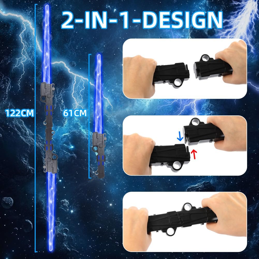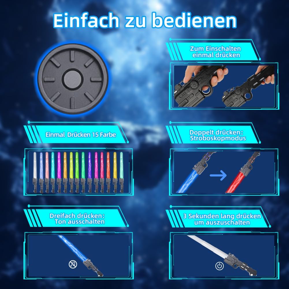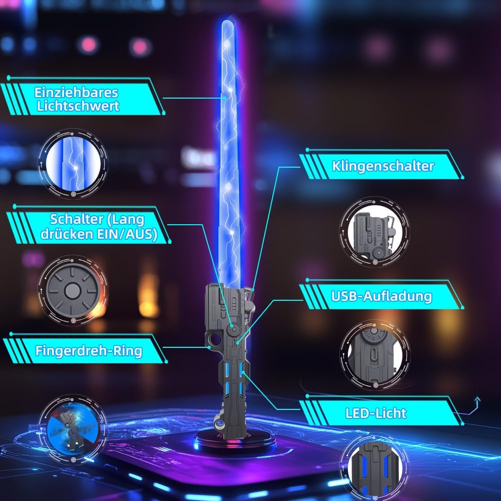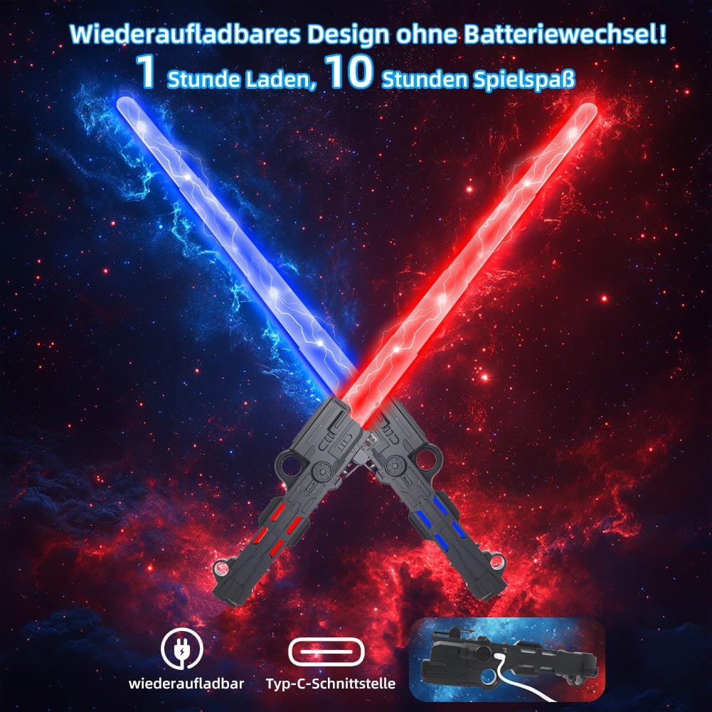 【Spada laser per bambini ricaricabile】 La spada laser per bambini ha una batteria integrata che può essere caricata con il cavo USB in dotazione. Un'ora di ricarica è sufficiente per un massimo di 10 ore di intenso divertimento di gioco. Ciò rende la spada laser per bambini una scelta sostenibile che elimina la necessità delle batterie tradizionali e prolunga il divertimento per bambini e genitori. 【14 colori per creatività illimitata】 Questa spada laser offre 14 colori dinamici che possono essere modificati con la semplice pressione di un pulsante. I bambini possono scegliere i loro colori preferiti o personalizzare i colori per adattarli a diversi scenari di gioco. Gli effetti sonori integrati rendono l'esperienza di gioco ancora più coinvolgente, facendo sentire ogni bambino un vero guerriero galattico. 【Attivazione semplice per un divertimento immediato】 La spada laser per bambini è molto facile da usare: basta premere l'interruttore una volta e la spada laser è pronta per l'uso immediato. I controlli intuitivi consentono ai bambini di cambiare rapidamente il colore o l'effetto sonoro e di immergersi in avventure fantasiose. Grazie alle 14 diverse opzioni di colore, ogni situazione di gioco è unica ed emozionante. 【Funzione 2 in 1 e lunghezza regolabile】 Con una lunghezza massima di 61 cm, la spada laser offre ai bambini una portata impressionante. Le due spade possono essere combinate in una spada laser a doppia faccia utilizzando un connettore. Che si tratti di avventure in solitaria o di combattimenti di squadra, questa spada luminosa si adatta perfettamente a qualsiasi situazione di gioco e garantisce il massimo divertimento. 【Costruzione sicura e durevole】 La spada laser per bambini è realizzata in plastica ABS di alta qualità, robusta ma leggera. Con bordi lisci e lavorazione robusta, la spada è sicura per i bambini dai 3 anni in su. Può resistere a situazioni di gioco intense e offre una scelta duratura per innumerevoli avventure e duelli. 【Perfetto per ogni occasione】 Che si tratti di Halloween, cosplay o regali di compleanno, la spada laser è la scelta ideale per piccoli e grandi fan dei guerrieri della galassia. I bambini possono ricreare i loro personaggi preferiti, combattere battaglie epiche e creare ricordi indimenticabili. Questa spada laser è il regalo perfetto che sicuramente delizierà. 【Incoraggia l'immaginazione e l'interazione】 La spada illuminata per bambini stimola l'immaginazione e crea una piattaforma per il gioco creativo. Incoraggia i bambini a interagire con amici o fratelli, sviluppare storie e vivere insieme avventure indimenticabili. Ideale per ridurre il tempo trascorso davanti allo schermo e promuovere le abilità sociali. 【Design realistico per un'esperienza coinvolgente】Con un'impugnatura color argento dall'aspetto metallico e una lama LED colorata, questa spada laser colpisce per il suo design autentico. I bambini possono immergersi nei loro ruoli galattici e impegnarsi in emozionanti duelli che portano l'esperienza di gioco a un nuovo livello.