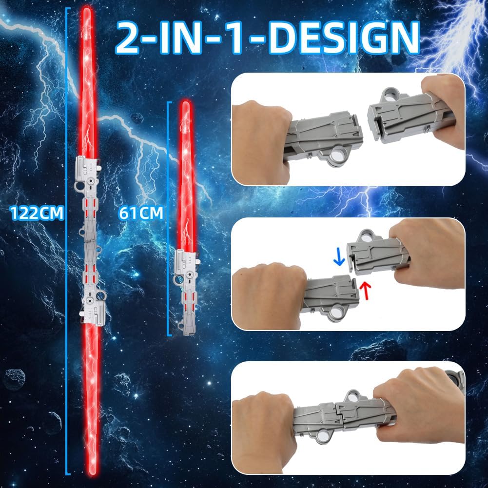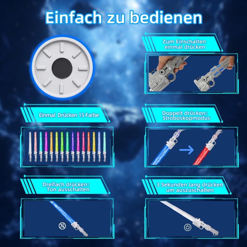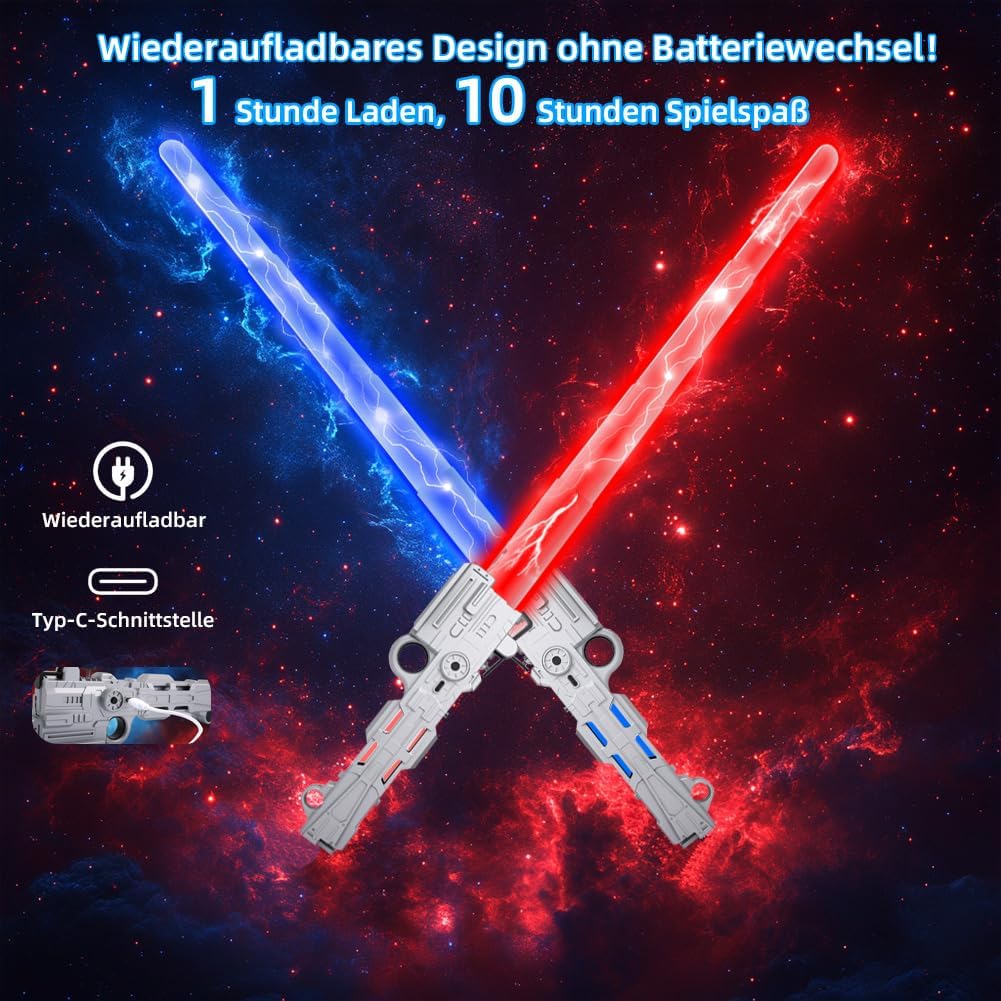 【Spada laser per bambini ricaricabile】 La spada laser per bambini ha una batteria integrata che può essere caricata con il cavo USB in dotazione. Un'ora di ricarica è sufficiente per un massimo di 10 ore di intenso divertimento di gioco. Ciò rende la spada laser per bambini una scelta sostenibile che elimina la necessità delle batterie tradizionali e prolunga il divertimento per bambini e genitori. 【14 colori per creatività illimitata】 Questa spada laser offre 14 colori dinamici che possono essere modificati con la semplice pressione di un pulsante. I bambini possono scegliere i loro colori preferiti o personalizzare i colori per adattarli a diversi scenari di gioco. Gli effetti sonori integrati rendono l'esperienza di gioco ancora più coinvolgente, facendo sentire ogni bambino un vero guerriero galattico. 【Attivazione semplice per un divertimento immediato】 La spada laser per bambini è molto facile da usare: basta premere l'interruttore una volta e la spada laser è pronta per l'uso immediato. I controlli intuitivi consentono ai bambini di cambiare rapidamente il colore o l'effetto sonoro e di immergersi in avventure fantasiose. Grazie alle 14 diverse opzioni di colore, ogni situazione di gioco è unica ed emozionante. 【Funzione 2 in 1 e lunghezza regolabile】 Con una lunghezza massima di 61 cm, la spada laser offre ai bambini una portata impressionante. Le due spade possono essere combinate in una spada laser a doppia faccia utilizzando un connettore. Che si tratti di avventure in solitaria o di combattimenti di squadra, questa spada luminosa si adatta perfettamente a qualsiasi situazione di gioco e garantisce il massimo divertimento. 【Costruzione sicura e durevole】 La spada laser per bambini è realizzata in plastica ABS di alta qualità, robusta ma leggera. Con bordi lisci e lavorazione robusta, la spada è sicura per i bambini dai 3 anni in su. Può resistere a situazioni di gioco intense e offre una scelta duratura per innumerevoli avventure e duelli. 【Perfetto per ogni occasione】 Che si tratti di Halloween, cosplay o regali di compleanno, la spada laser è la scelta ideale per piccoli e grandi fan dei guerrieri della galassia. I bambini possono ricreare i loro personaggi preferiti, combattere battaglie epiche e creare ricordi indimenticabili. Questa spada laser è il regalo perfetto che sicuramente delizierà. 【Incoraggia l'immaginazione e l'interazione】 La spada illuminata per bambini stimola l'immaginazione e crea una piattaforma per il gioco creativo. Incoraggia i bambini a interagire con amici o fratelli, sviluppare storie e vivere insieme avventure indimenticabili. Ideale per ridurre il tempo trascorso davanti allo schermo e promuovere le abilità sociali. 【Design realistico per un'esperienza coinvolgente】Con un'impugnatura color argento dall'aspetto metallico e una lama LED colorata, questa spada laser colpisce per il suo design autentico. I bambini possono immergersi nei loro ruoli galattici e impegnarsi in emozionanti duelli che portano l'esperienza di gioco a un nuovo livello.
