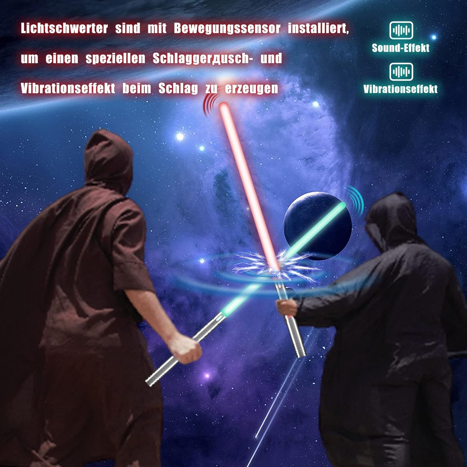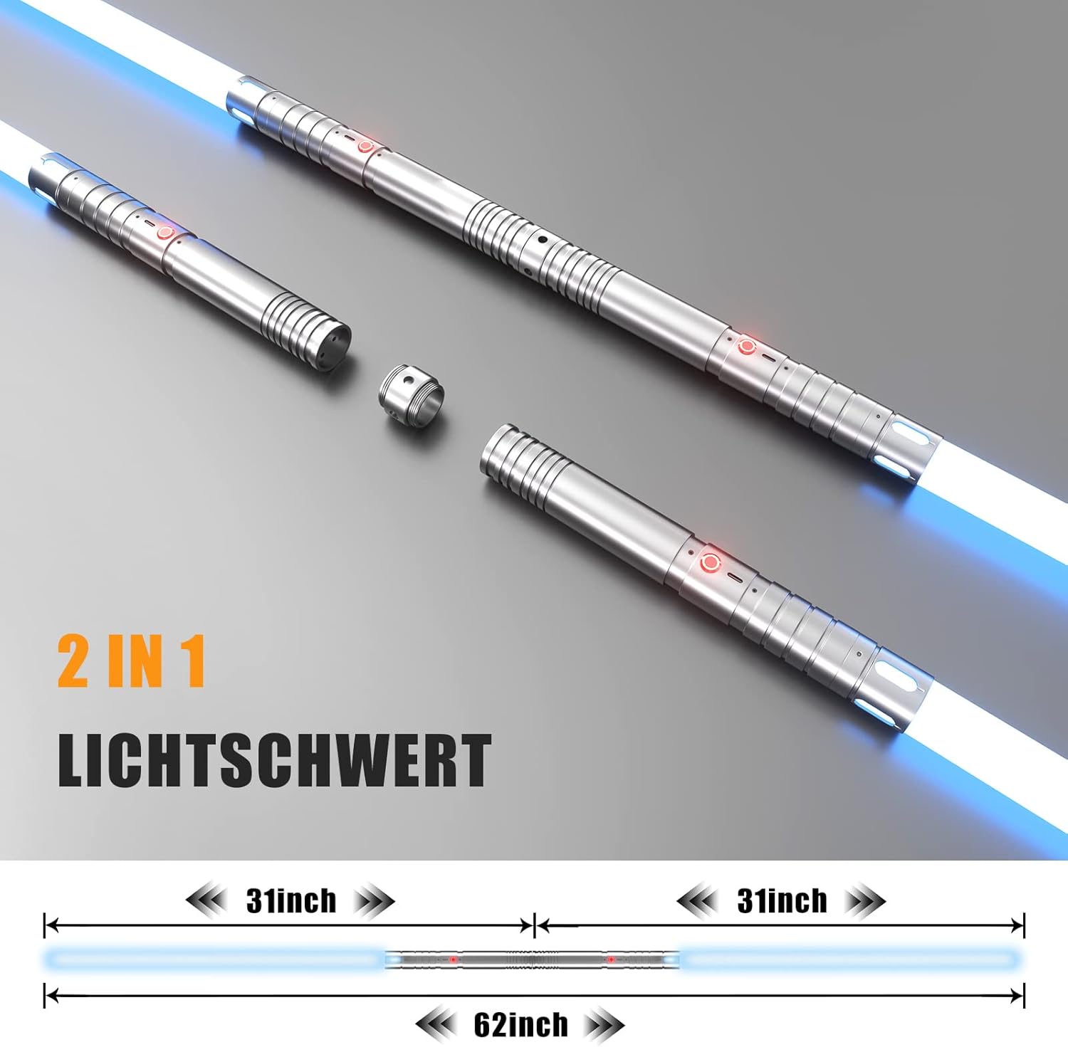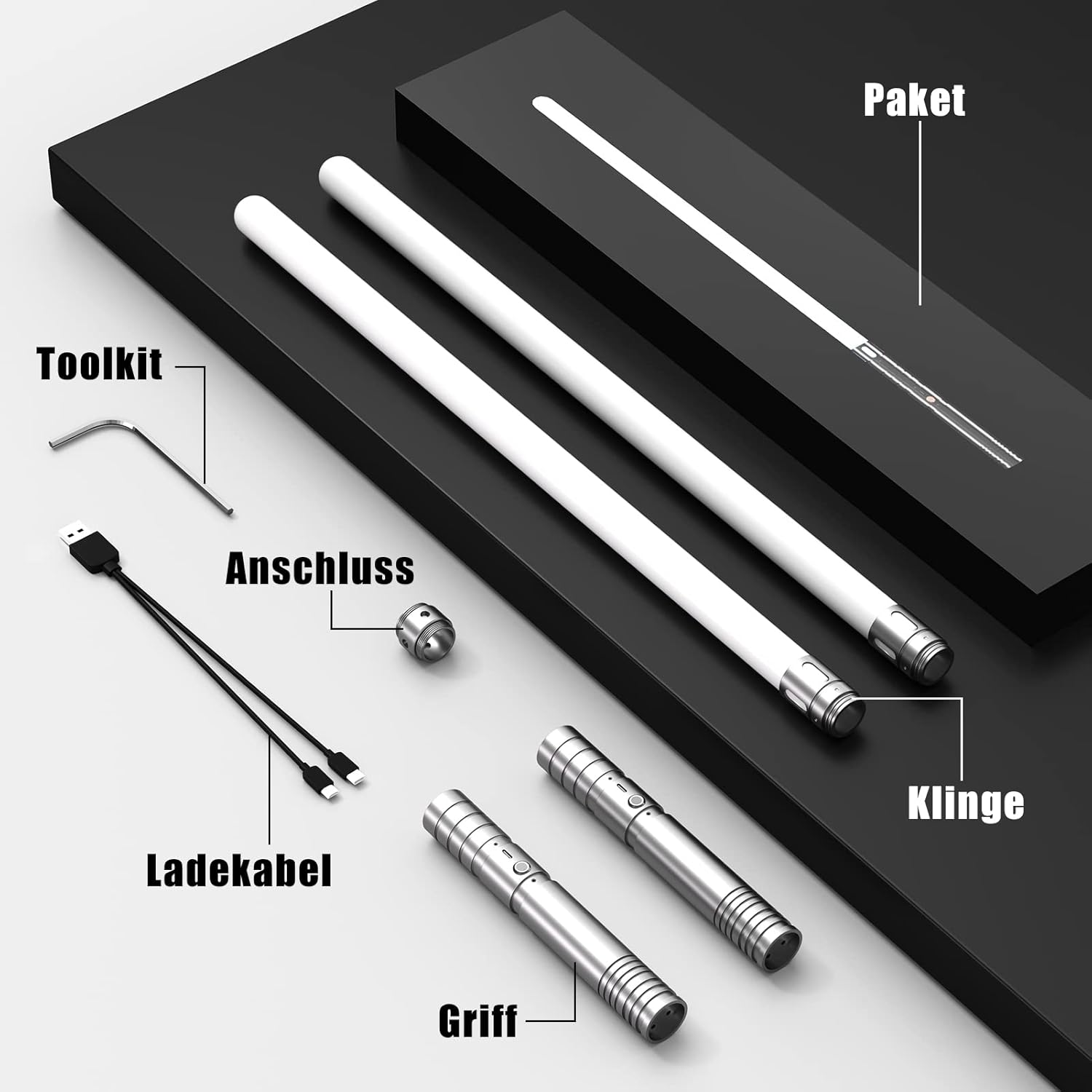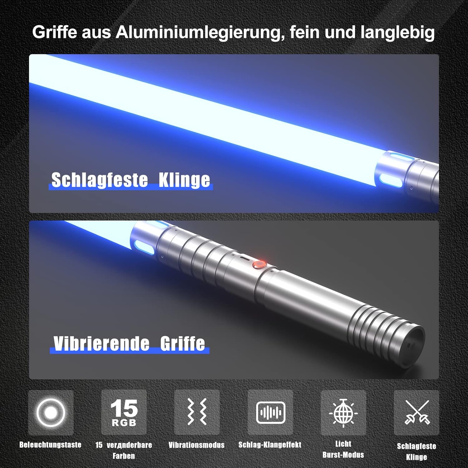 ✅【Maniglie in metallo alluminio con design cavo】Entrambe le maniglie sono realizzate in alluminio ispessito di alta qualità, quindi sono più resistenti e più spesse delle normali spade laser sul mercato, inoltre comode da impugnare e facili da impugnare. Lo speciale design scavato che aggiungiamo alla sciabola ha un effetto luminoso e rende la sciabola molto bella. ✅ 【Set di due spade laser collegabili】 La nostra confezione contiene due spade laser e un connettore. Tu e il tuo amico potete impugnare una spada laser per duellare tra loro, oppure potete collegare due spade laser insieme per diventare un guerriero più forte! ✅ 【Lama resistente agli urti e impugnatura vibrante】 Le nostre lame sono realizzate in PVC ad alto impatto, puoi duellare liberamente tra loro e colpire forte la spada laser senza preoccuparti che la lama si rompa. Le sciabole sono dotate di un sensore di movimento migliorato che crea vibrazioni ed effetti sonori quando vengono colpiti dalle spade laser (il suono può essere attivato o disattivato). ✅【Spada laser RGB a 20 colori aggiornata】Abbiamo aggiornato la sorgente luminosa della spada laser. Adesso è più luminoso e più forte. La spada laser Kiseely utilizza un LED regolabile da 12 W. Ci sono 15 colori tra cui scegliere, che possono simulare perfettamente la scena del duello. ✅ 【Modalità Super Burst】 La nostra spada laser RGB ha una modalità super lampeggiante. In questa funzione, la spada laser ha una nuova modalità audio e fornisce anche un diverso effetto luminoso. Ti immergerai nella vera scena della battaglia!