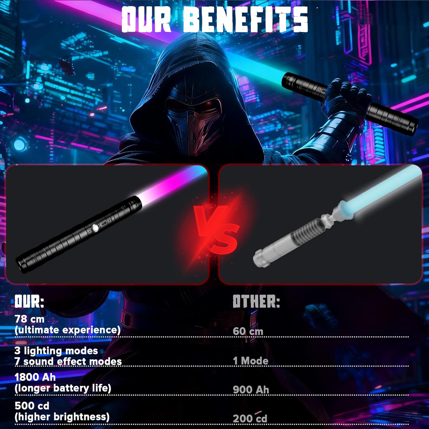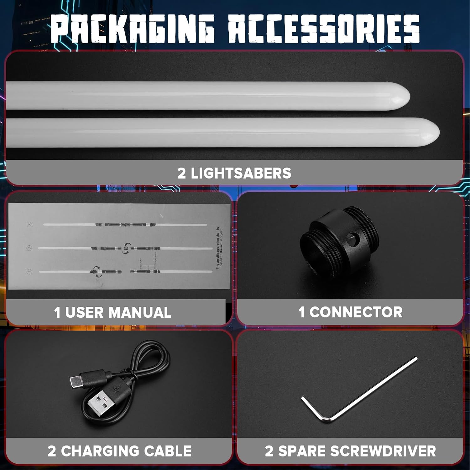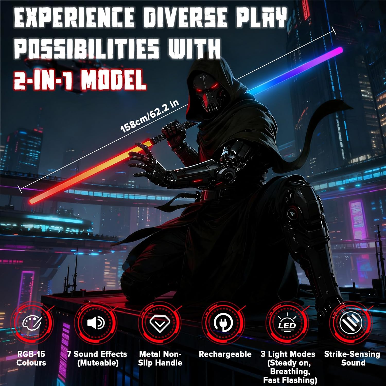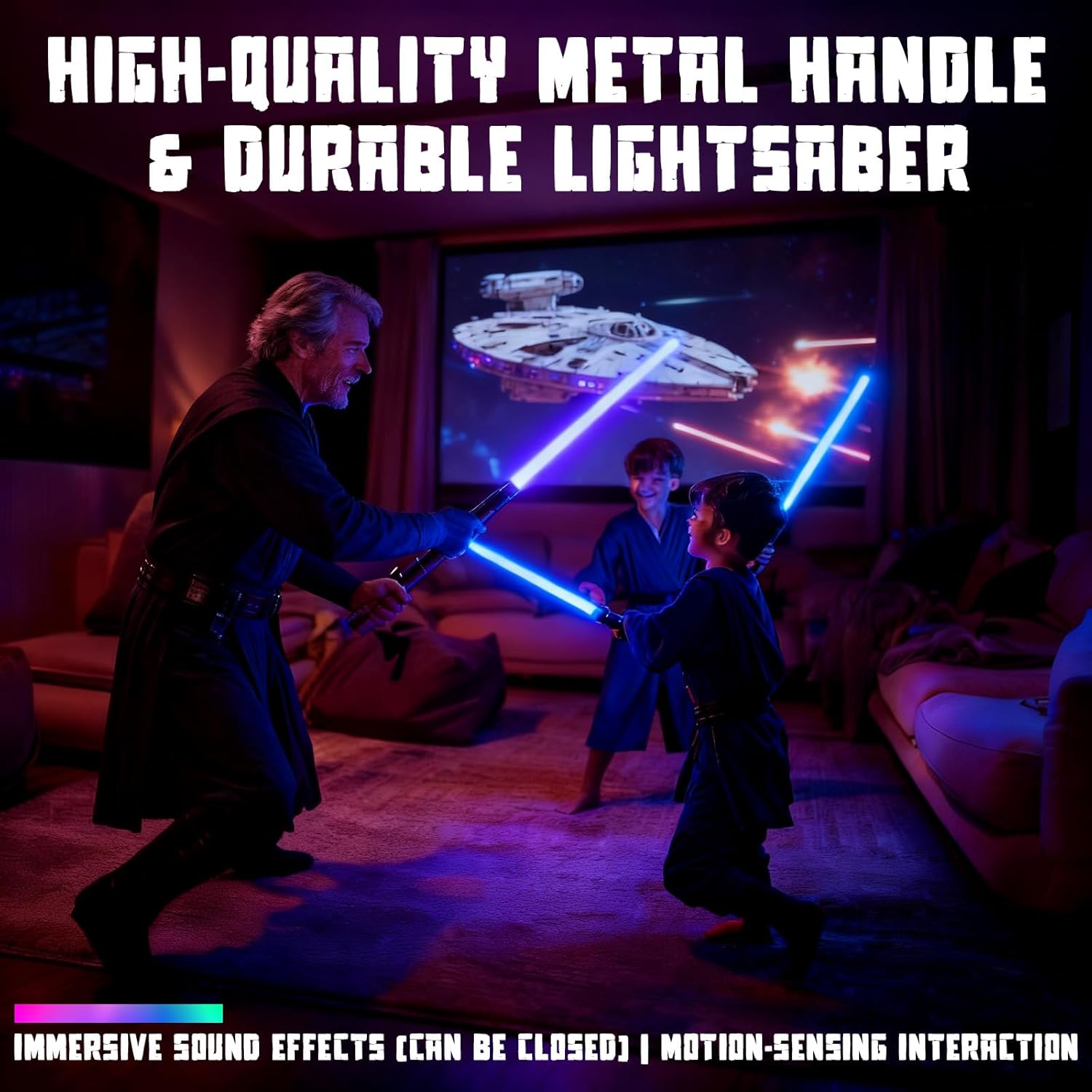 Costruzione durevole e design 2 in 1: realizzata in lega di alluminio aeronautico di alta qualità, la nostra elsa a sciabola leggera offre una presa lucida e confortevole che è altamente durevole e resistente ai graffi. Costruito per resistere a duelli energici, offre una vera sensazione di combattimento. Il design innovativo consente a due spade luminose separate di collegarsi facilmente, trasformandosi in un'impressionante sciabola a doppia lama per un gioco dinamico. Oscillazione fluida e sensibilità al movimento: sperimenta il realismo di livello superiore con la tecnologia avanzata Smooth Swing. La spada laser Star Wars risponde intuitivamente a ogni tua mossa, generando ronzii iconici, scontri ed effetti flash-on-clash ad ogni movimento e impatto. Questo controllo del movimento super sensibile crea uno spettacolo di luci mozzafiato, facendoti sentire come se stessi deviando i bulloni del blaster al buio. Luce vivida e autentici effetti sonori dei film: Dai vita alla galassia con la brillante illuminazione a LED RGB e i font audio autentici dei film. Scegli tra 15 colori vivaci e molteplici effetti sonori per abbinare i tuoi personaggi preferiti. Le caratteristiche includono speciali effetti sonori di combattimento, effetti di scontro e 3 modalità flash distinte, rendendo ogni duello più luminoso, più forte e più coinvolgente. Sicuro e facile da usare: progettate pensando ai giovani Jedi, le nostre sciabole leggere sono sicure e facili da usare. Sono dotati di bordi morbidi e arrotondati e di un'impugnatura leggera ed ergonomica per una presa sicura e confortevole. Con una semplice attivazione con un solo pulsante e facile montaggio, i bambini possono iniziare rapidamente la loro avventura. La costruzione robusta assicura che possa gestire il normale gioco di combattimento in modo sicuro. Divertimento versatile e regalo perfetto: perfetto per feste, sport all'aria aperta, campeggio o eventi cosplay come Halloween e Natale. Questa spada laser di Star Wars incoraggia il gioco attivo e fantasioso ed è un regalo eccellente che promuove il movimento e la creatività. La confezione include 2 spade laser, 2 cavi di ricarica di tipo C, un connettore, 2 cacciaviti di ricambio e un manuale, fornendo tutto il necessario per epiche battaglie interstellari appena fuori dalla scatola.