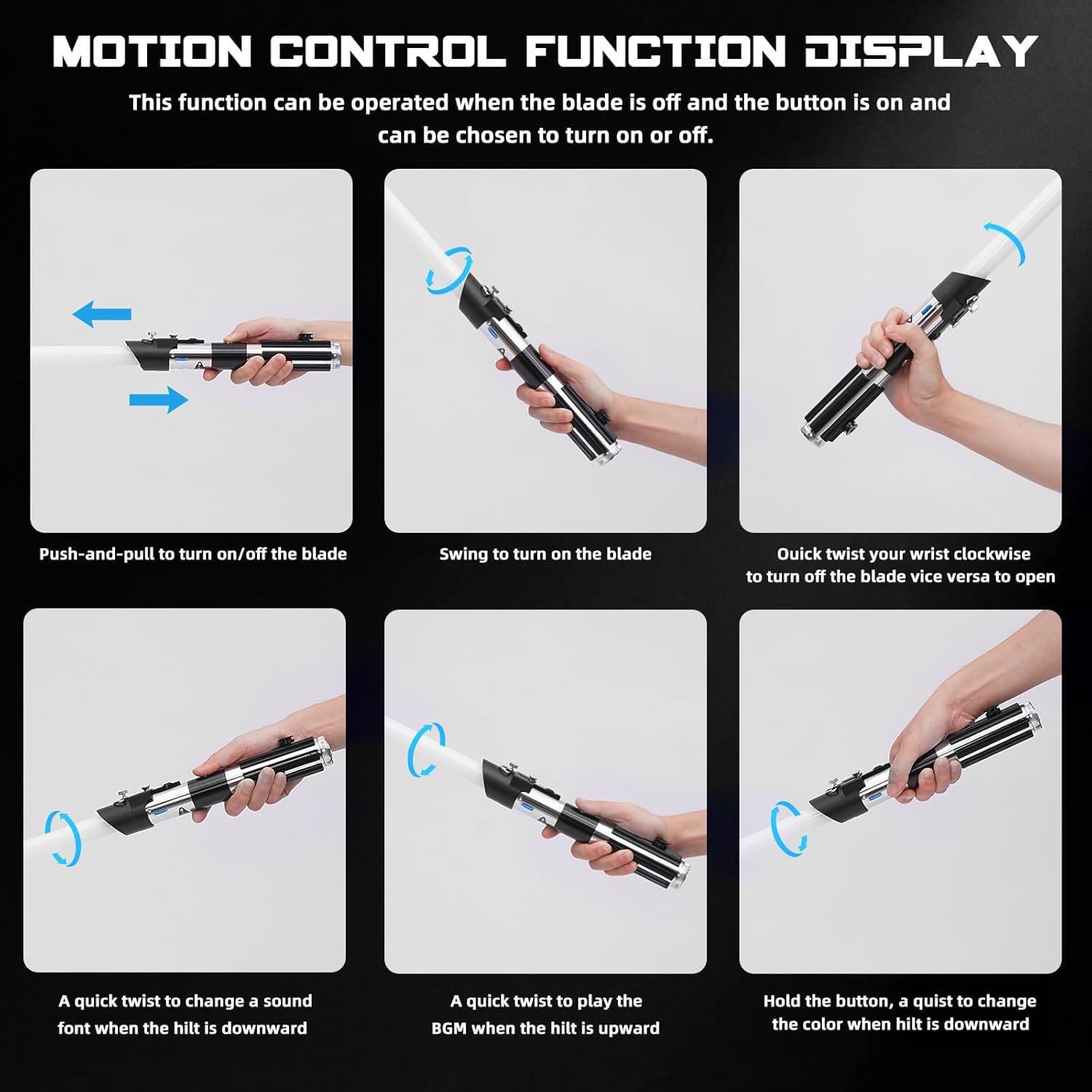 Spada laser migliorata: la tecnologia Smooth Sensitive Swing aggiunge realismo emettendo questo suono e luce lampeggianti ogni volta che la lama della spada laser tocca qualcosa automaticamente, la spada laser abbaglia e devia un blaster mentre oscilla nell'oscurità. Spada laser con 16 suoni di film e 12 colori RGB: 16 suoni di caratteri o temi da selezionare. È possibile modificare 12 colori, 3 modalità di fiamma: modalità luce completa, modalità respirazione, modalità flash on-clash e funzione blaster, che ti consente di passare attraverso il film reale. Scegli il tuo colore preferito e gli effetti sonori per duellare. Spade laser con impugnatura in metallo per duelli pesanti: l'elsa della sciabola è molto ben realizzata in alluminio metallico e ben lucidata. Il buon peso solido e il design antiscivolo lo rendono comodo da impugnare, robusto e non facile da deformare, difficile da graffiare. Lama durevole in policarbonato ad alto impatto, non facile da piegare o piegare, supporta un vero duello pesante. Spade laser con funzione di controllo del movimento intelligente: abbassa la lama della spada laser e ruota per accendere o spegnere la lama, oscilla per accendere la lama mentre la sciabola è accesa. Basta accendere o spegnere la lama ruotandola o facendola oscillare. Tieni la tua realistica croce con la spada laser nel mondo di Star Wars e diventa l'ultimo Sith Jedi. Servizio post-vendita completo per la spada laser: garantiamo 12 mesi di garanzia e un servizio post-vendita completo, aiutando a fornire aiuto o consulenza professionale in tempo. Che la forza sia con te: spada laser alla moda premium per feste, sport all'aria aperta, intrattenimento per la famiglia, campeggio all'aperto, ideale per praticare duelli e giochi casual. Come feste, Halloween, cosplay di Natale. È anche un buon regalo di compleanno o festival per adulti e adolescenti.