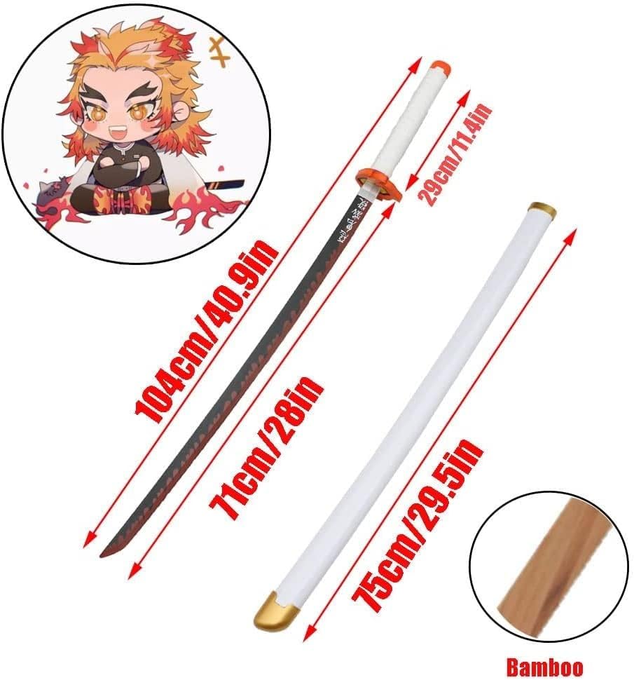 █ Materiale: lama di bambù, quindi più leggera della katana di ferro e più dura della lama di legno. Il fodero e il paramano sono realizzati in plastica dura. La corda avvolta attorno al manico è realizzata in puro cotone, che può assorbire efficacemente il sudore e scivolare. █ Replica perfetta: questa katana di bambù (spada giapponese) è una replica perfetta dell'anime katana. La lama e l'elsa di questa spada sono basate sulla serie anime originale. █ Dimensioni: la lunghezza totale è di ca. 75 cm, 104 cm. Disponibile in due misure, abbiamo anche una cintura con fodero █ Fan degli anime: il regalo perfetto per i fan degli anime, questa katana è una spada cosplay di Rengoku Kyoujurou █ Sicura da usare: la lama non è affilata, la spada da samurai è molto leggera e i bambini non si sentiranno pesanti quando la usano