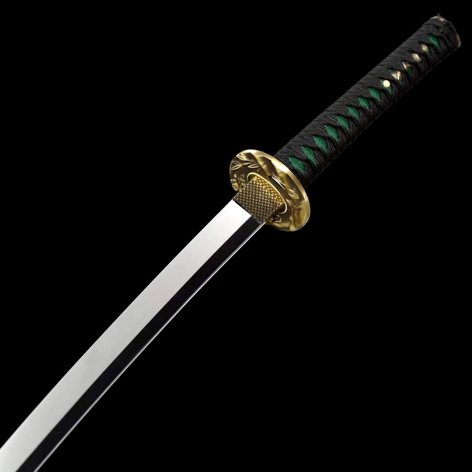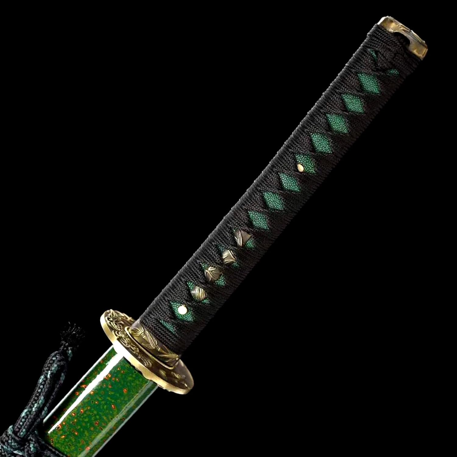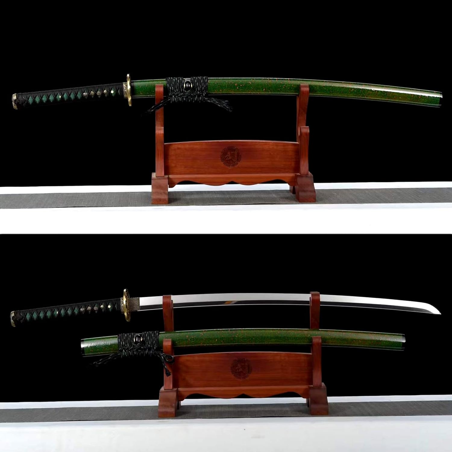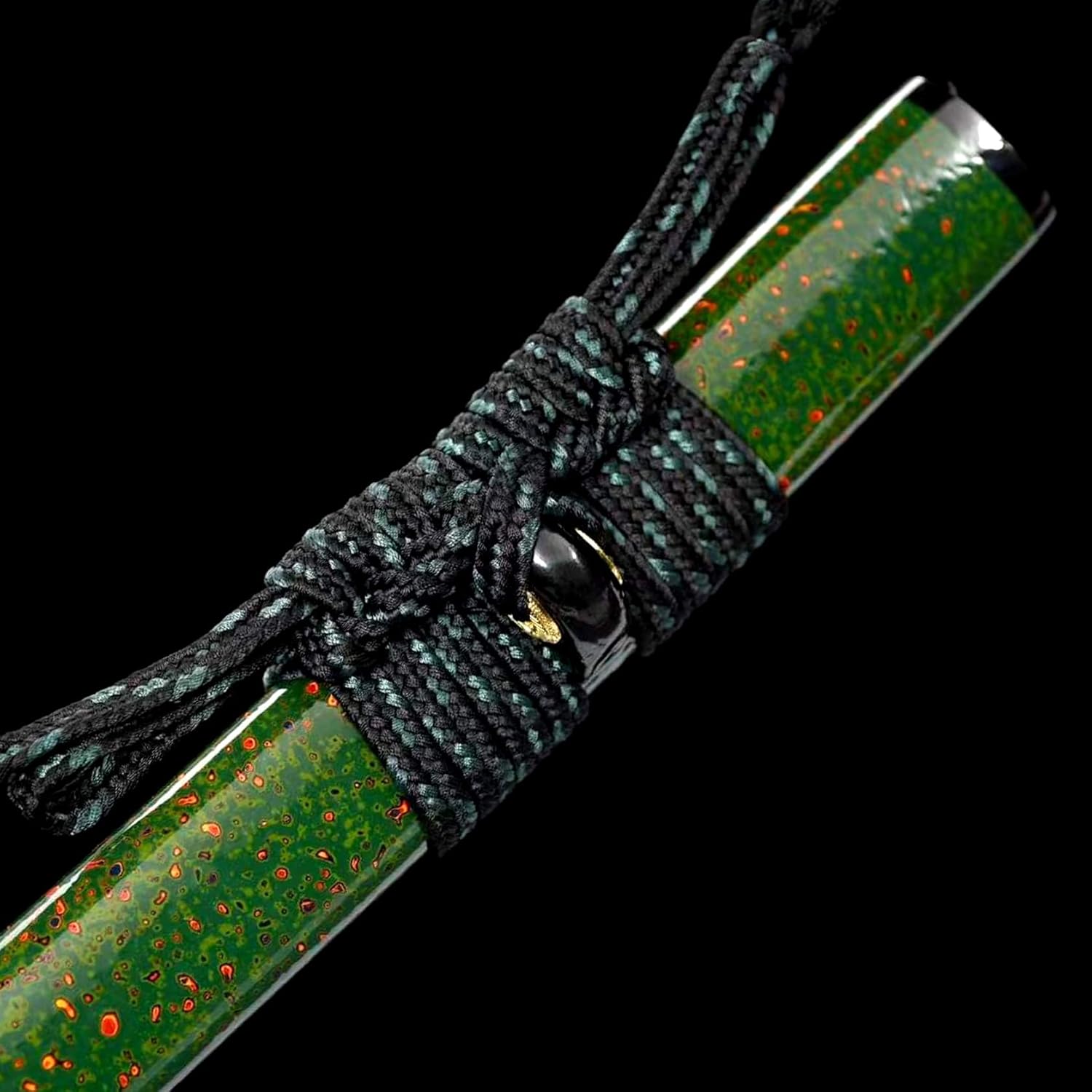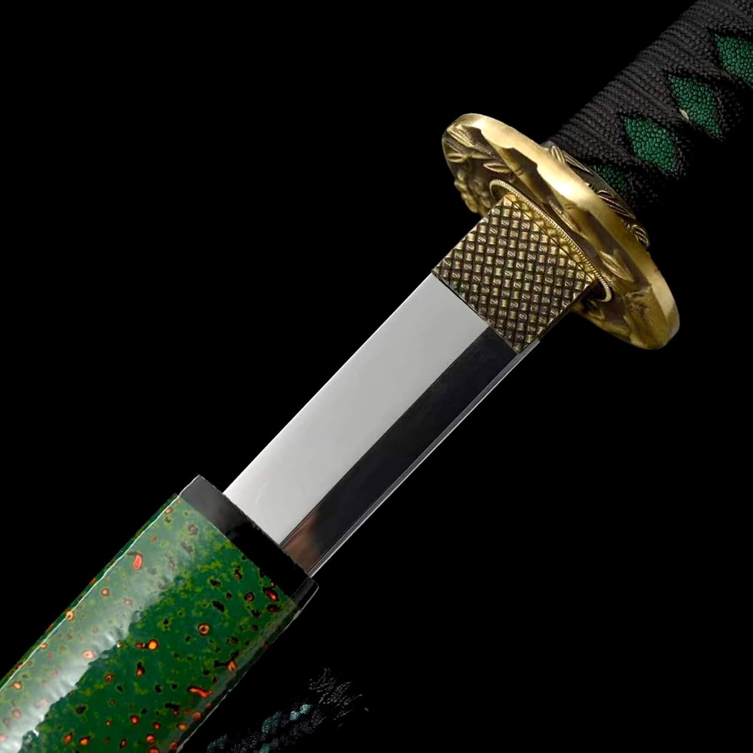 ❈【Materiale di alta qualità】: la lama della katana è forgiata a mano in acciaio ad alta velocità, che ha elevata tenacità e durezza. La protezione per la mano è scolpita in rame puro e ha una lavorazione squisita. Il fodero è realizzato in legno massello verniciato a spruzzo e l'aspetto verde non solo evidenzia la bellezza della katana ma protegge anche efficacemente la lama. ❈【Artigianato tradizionale】: le nostre spade katana sono forgiate a mano da abili artigiani utilizzando tecniche tradizionali. Hanno una lucentezza a specchio super brillante che attira davvero l'attenzione. La durezza raggiunge i 60° e può essere piegato a 90 gradi senza deformazioni. Ha un'elevata durezza e una buona tenacità, che dimostrano perfettamente il divertimento unico della katana. ❈【Proporzioni perfette】: la lunghezza totale della katana è di 103 cm, la lunghezza della lama è di 71 cm, la lunghezza del manico è di 26,5 cm e la larghezza della lama è di 3,2 cm. Questo design non solo soddisfa gli standard estetici delle tradizionali spade da samurai, ma tiene conto anche delle esigenze del combattimento e della pratica reali. ❈【Sensazione confortevole】: la maniglia è caricata a mano e avvolta con una corda nera, antiscivolo e assorbe il sudore, offre una presa eccellente e consente di oscillare liberamente. Con il giusto peso, maneggiare la spada diventa un piacere speciale, come se fossi trasportato indietro nel tempo, nel periodo degli Stati Combattenti del Giappone. ❈【Ampi usi】: le spade Katana sono ampiamente utilizzate e sono perfette per regali, giochi di ruolo, collezioni, decorazioni per la casa, mostre, allenamenti di Kendo e Iaido, pratica di arti marziali, regali di Natale, Halloween, feste in costume, oggetti di scena, autodifesa.