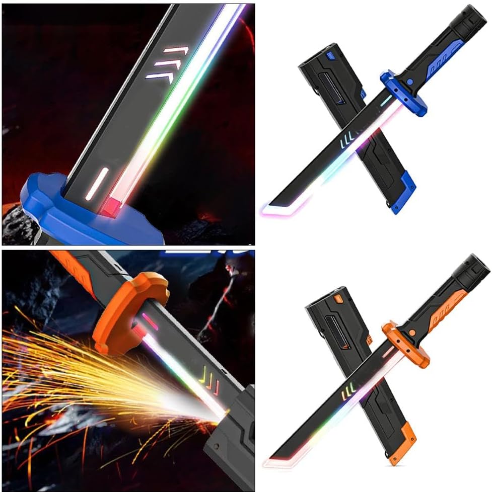 Azione spada laser scintillante: bagliore, cambiamento di colore ed effetti scintillanti: accendi l'eccitazione premendo e tenendo premuto l'interruttore: guarda come la lama espelle drammaticamente con luce abbagliante ed autentici effetti scintillanti. Il fodero attiva scintille dinamiche al sorteggio, mentre la lama LED che cambia colore crea un'esperienza cinematografica coinvolgente che dà vita a ogni battaglia. Trasformazione a doppia spada - Passa a un capolavoro a doppia testa: migliora il tuo stile di gioco con la compatibilità a doppia sciabola. Utilizzando gli accessori di collegamento inclusi, assembla facilmente le due lame in una potente spada lunga a doppia testa per una portata estesa e mosse spettacolari, perfetta per duelli e spettacoli drammatici. Effetti di scintilla sicuri e duraturi: emozioni realistiche senza rischi: con effetti di scintilla dall'aspetto autentico progettati per sicurezza e durata, questa spada laser offre un intenso dramma visivo senza compromettere il divertimento. Ideale per giochi di ruolo prolungati, combattimenti teatrali o display dei fan, mantiene l'azione emozionante e coinvolgente, catturando in modo sicuro il pubblico di tutte le età. Design personalizzato: lama in ABS da 44 cm in blu e arancione: realizzata in resistente materiale ABS, questa spada laser da 44 cm combina resistenza e maneggevolezza leggera. Scegli tra vivaci opzioni di colore blu o arancione ardente, ognuna non solo visivamente sorprendente, ma anche un simbolo audace dell'identità e dello stato del tuo personaggio nella galassia. Versatile per qualsiasi avventura: perfetto per cosplay, eventi e esposizioni: progettato per la massima versatilità, è ideale per eventi cosplay, convegni, spettacoli teatrali o esposizione domestica. Che si tratti di una battaglia o di una vetrina sullo scaffale, le sue molteplici configurazioni e le immagini mozzafiato si adattano a qualsiasi scenario