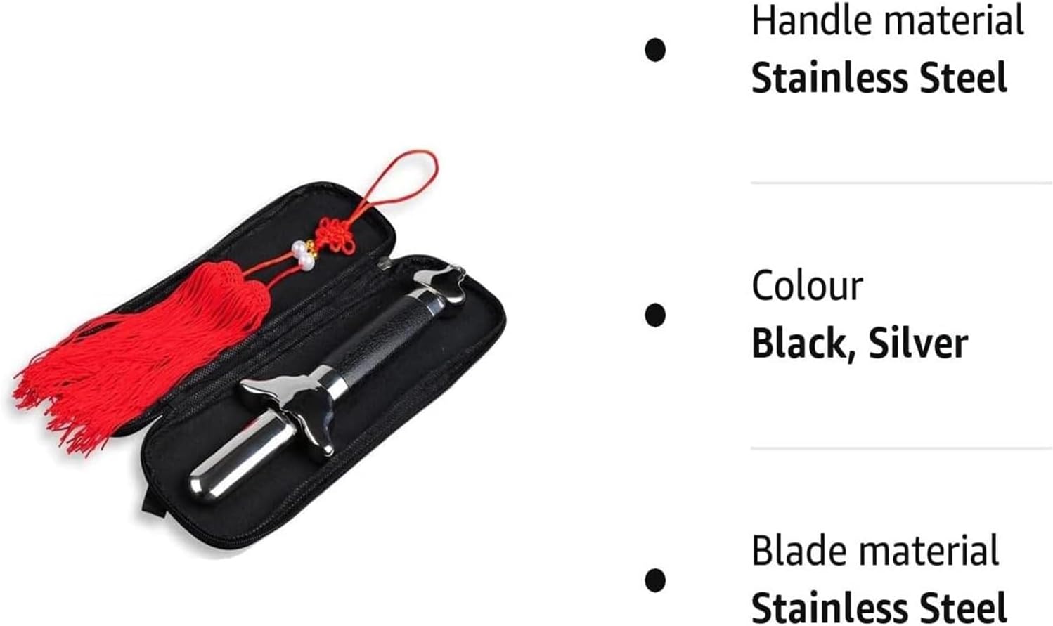 Design della maniglia: la maniglia è realizzata in materiale ABC, con piccole particelle sulla superficie del materiale, che ha un effetto antiscivolo. Design della protezione per la mano: la protezione per la spada è realizzata in acciaio inossidabile importato, non vi è spazio di saldatura e non arrugginirà mai. Design telescopico: la lama è realizzata in acciaio inossidabile spesso e ogni sezione ha una fibbia comoda da attaccare e togliere. Design delle taglie: la spada Tai Chi ha 7 taglie, adatte a persone con diversi tipi di corporatura e altezze. Può essere utilizzato in vari modi, ad es. B.: Decorazione della casa, decorazione dell'abbigliamento, appendere borse, automobili, portachiavi o automobili, artigianato fai-da-te