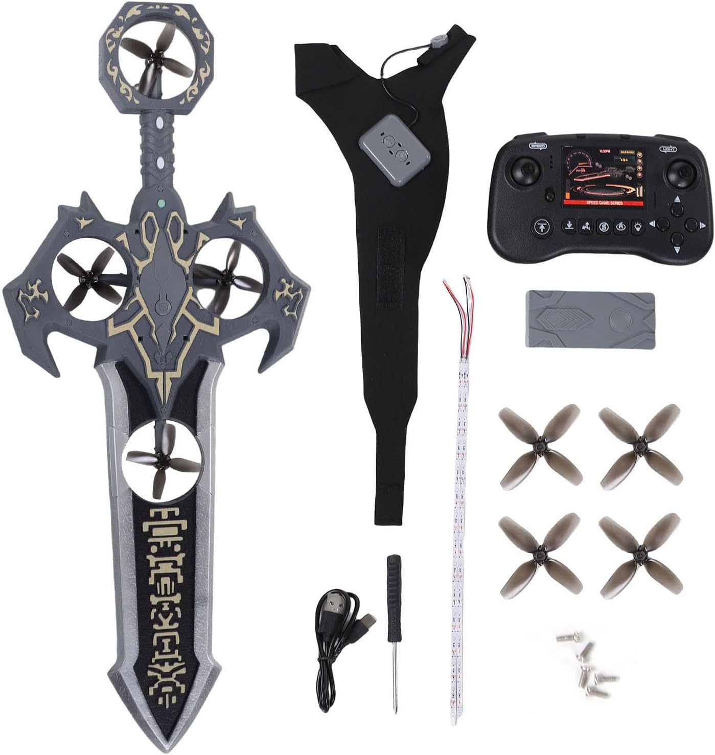 Controllo dei gesti: utilizzando la tecnologia di riconoscimento intelligente dei gesti, gli utenti possono controllare il volo della spada volante, i cambi di direzione e la funzione di ritorno con semplici movimenti della mano. di volo ad alta precisione: dotato di giroscopi avanzati e sistemi di controllo della stabilità che garantiscono prestazioni di volo fluide e stabili. La spada risponde con precisione ad ogni comando, rendendola adatta sia per uso interno che esterno in vari ambienti. Materiali sicuri: realizzati con materiali plastici leggeri ma ad alta resistenza con bordi flessibili progettati per la sicurezza. Questa combinazione garantisce prestazioni di volo ottimali mantenendo la sicurezza dell'utente, rendendolo adatto a tutte le fasce d'età. Effetti di luce colorati: presenta luci LED multicolori integrate che creano effetti di luce abbaglianti durante il volo. Il display è particolarmente impressionante di notte, rendendolo la scelta ideale per feste, spettacoli ed eventi di intrattenimento. Batteria a lunga durata: alimentato da una batteria Li da 3000 mAh che fornisce fino a 30 minuti di volo continuo. La notevole capacità della batteria garantisce sessioni di gioco prolungate senza frequenti interruzioni di ricarica.