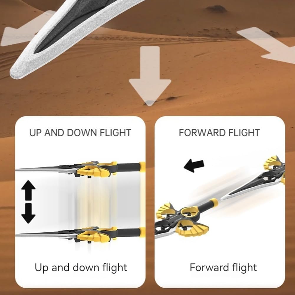 Sperimenta il brivido della spada volante: questa remota spada volante offre un'escapata aerea esaltante, eseguendo facilmente acrobazie incredibili. Leggero e robusto, è perfetto per i bambini e gli appassionati di attività all'aperto, offrendo agli utenti un'esperienza di volo entusiasmante. Potente stabilità a motori: dotati di turbine ad alte prestazioni, questi motori forniscono una maggiore spinta garantendo aerei volanti a controllo RC fluidi e stabili durante il volo. La potenza aggiornata significa velocità più elevate e un'esperienza di volo più ricca piena di eccitazione. Velocità regolabili per diverse esigenze: con impostazioni a bassa, media e ad alta velocità, questo aliante RC di spada volante ti consente di personalizzare la tua esperienza di volo. Adatto a ogni livello di abilità, si adatta allo stesso modo a stili di volo casual e avventurosi. Modalità spada senza soluzione di continuità e caratteristiche acrobazie: tocca un pulsante per coinvolgere "Modalità Sword", godendo di rapide naviganti. Con azioni a button singolo per decollo e atterraggi, tira fuori a 360 ° e sbalorditive manovre senza problemi. Design intuitivo del telecomando: il design del joystick semplificato con funzionalità tra cui calibrazione rapida e arresto di emergenza rende questa spada a telecomando a telecomando facile da pilotare, garantendo che anche i principianti possano imparare rapidamente per il massimo divertimento.