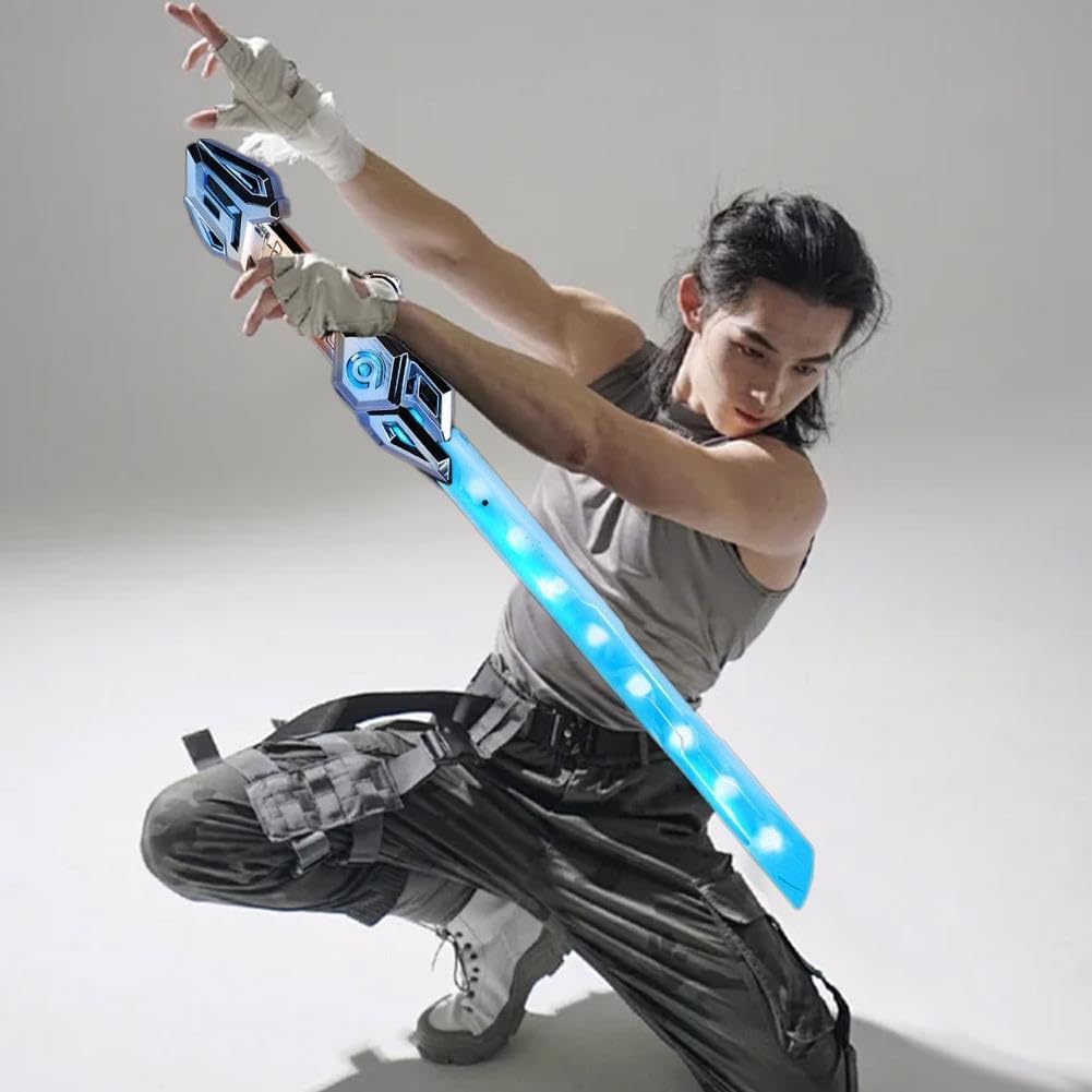 La spada a doppio taglio adotta un design di simulazione ad alta precisione, ripristina la classica forma fantascientifica, si sente comoda da tenere ed è altamente collezionabile. Sorgente luminosa a LED ad alta efficienza incorporata, è luminosa e nitida, supporta tre colori di commutazione e soddisfa le esigenze di diverse scene. Il corpo della spada è realizzato con materiali ecologici, resistenti alla caduta e all'usura, garantendo un uso sicuro, adatto per cosplay e spettacoli. Dotato di un design con manico staccabile, è facile da trasportare e riporre, con dettagli squisiti e lavorazione di alta qualità. Alimentato a batteria e supporta l'interruttore a un pulsante, è semplice e comodo da usare ed è una scelta ideale per appassionati e collezionisti.