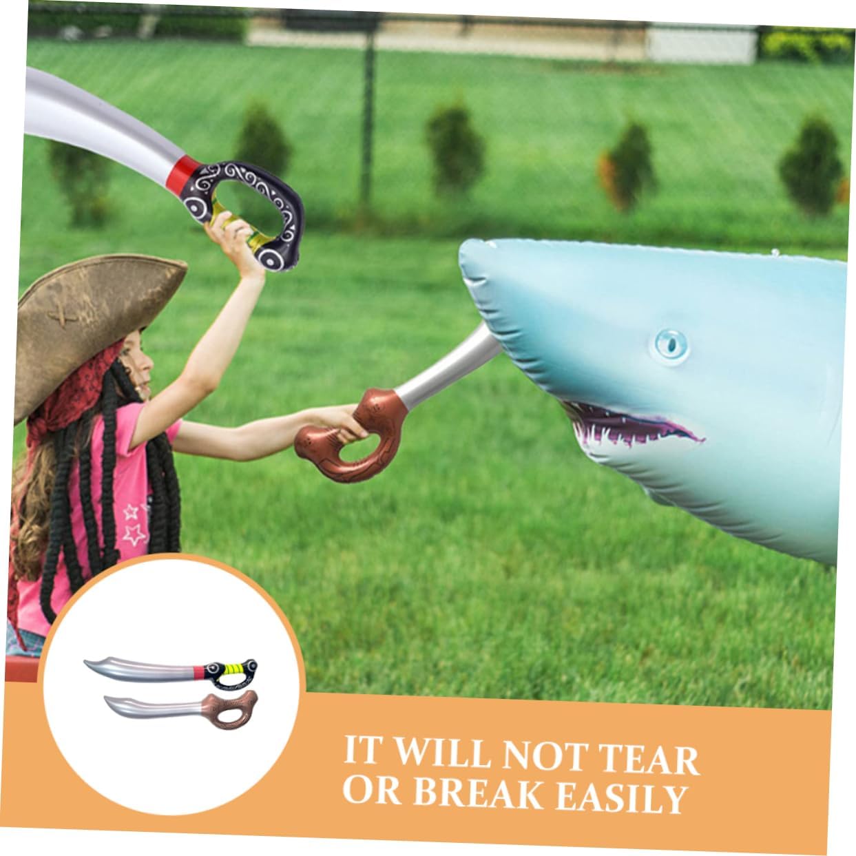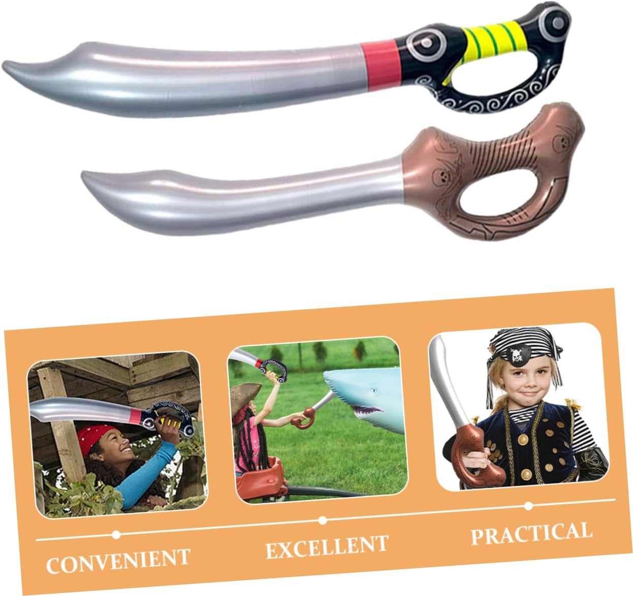 Divertente spada da pirata - - versatile per vari eventi, feste, spettacoli teatrali, attività a tema e altro ancora, palloncini con spada Palloncini con spada gonfiabili: il design ergonomico della maniglia è facile da impugnare e ti offre più comfort quando, regali per feste pirata Accessori pirata: la maniglia ti consente di afferrarla quando, comodo da tenere in mano per spettacoli di cosplay di pirati, oggetti di scena gonfiabili Grazie alla sua eccellente fattura, non si strappa né si rompe, non è così leggero e può essere facilmente gonfiato. Decorazioni gonfiabili per feste pirata in PVC - Il design a forma di spada da pirata con motivi vivaci ha effetti decorativi e si abbina bene al tuo costume da pirata o al tuo oggetto di scena per cosplay