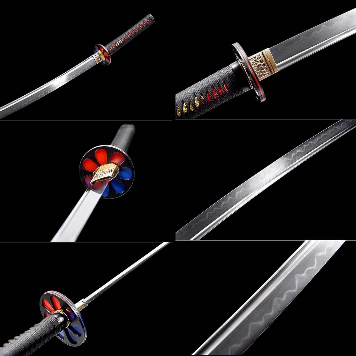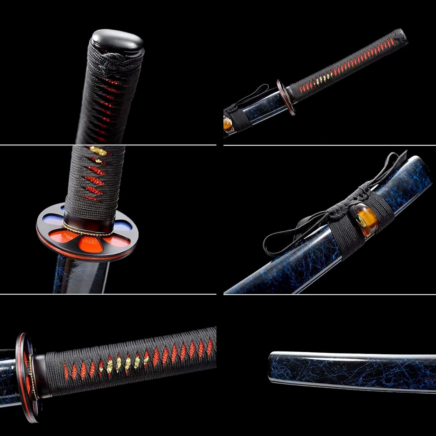 【Materiale】: la katana è realizzata in acciaio al carbonio di alta qualità ed è stata realizzata con cura attraverso dozzine di processi. La lama è lucida come uno specchio e i bordi sono cotti a mano con antichi motivi di fiamma. Il manico del coltello in legno è incordato a mano con una corda di cera, comoda al tatto, antiscivolo e resistente all'usura. La guaina è realizzata in vernice spray per legno naturale e decorata con squisite decorazioni in cristallo, che mostrano il suo temperamento nobile. Dimensioni: lunghezza totale 103 cm, lunghezza lama 74 cm, lunghezza impugnatura 26,5 cm, larghezza lama 3,2 cm, spessore lama 0,75 cm, peso ca. 1,2 kg. Il suo design si concentra sull'equilibrio e sulla praticità, consentendo agli utenti di padroneggiare e massimizzare facilmente le sue prestazioni. 【Artigianato tradizionale】: la spada katana adotta il tradizionale fabbro e il processo di forgiatura segue rigorosamente metodi antichi. Dopo diversi trattamenti termici e processi di tempra, la lama risulta robusta e durevole. Sia per l'uso quotidiano che per la raccolta a lungo termine, può mantenere la sua qualità e lucentezza originali. 【Prestazioni eccellenti】: la lama di questo coltello è forgiata a mano e mostra una lavorazione squisita che non ha eguali nel settore. Non solo ha eccellenti caratteristiche pratiche, ma è anche un'elegante opera d'arte. La lama è dura e può facilmente soddisfare le varie esigenze di combattimento reali. La loro forma e design unici le distinguono da molte armi, rendendole la prima scelta per collezionisti e appassionati di arti marziali. 【Ampia applicazione】: che tu sia un artista marziale esperto che vuole sviluppare le tue abilità o semplicemente un fan della cultura e della tradizione giapponese, questa spada soddisferà i tuoi desideri. Possiedilo adesso e lasciati ispirare dalla sua bellezza e potenza!