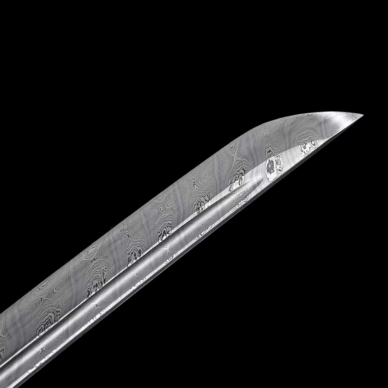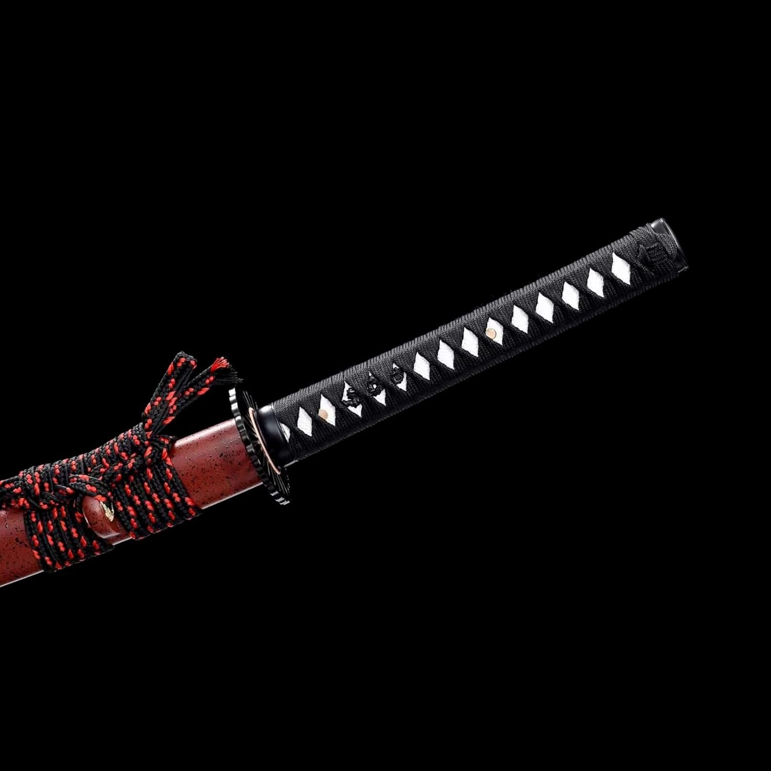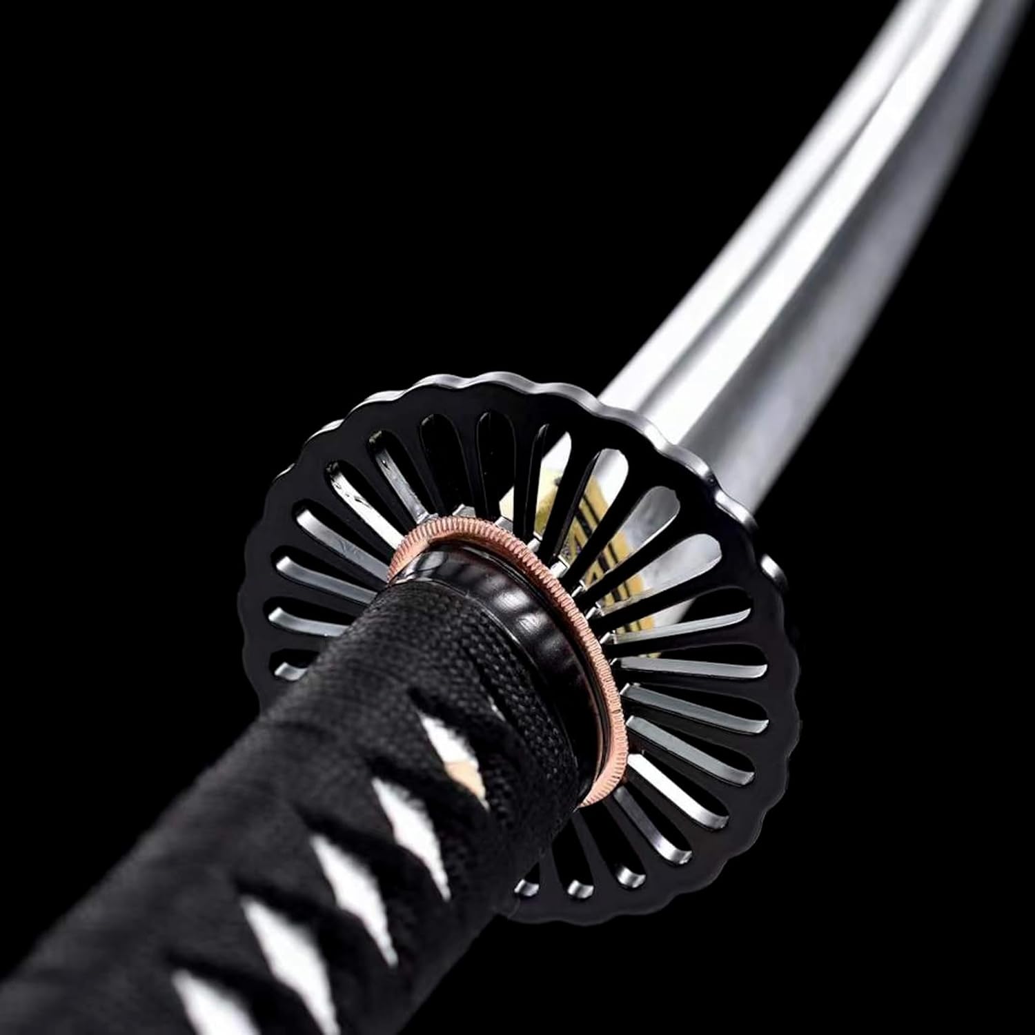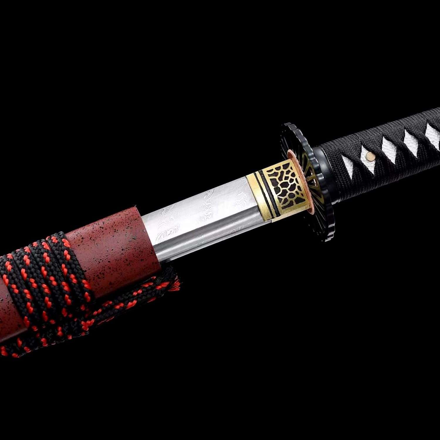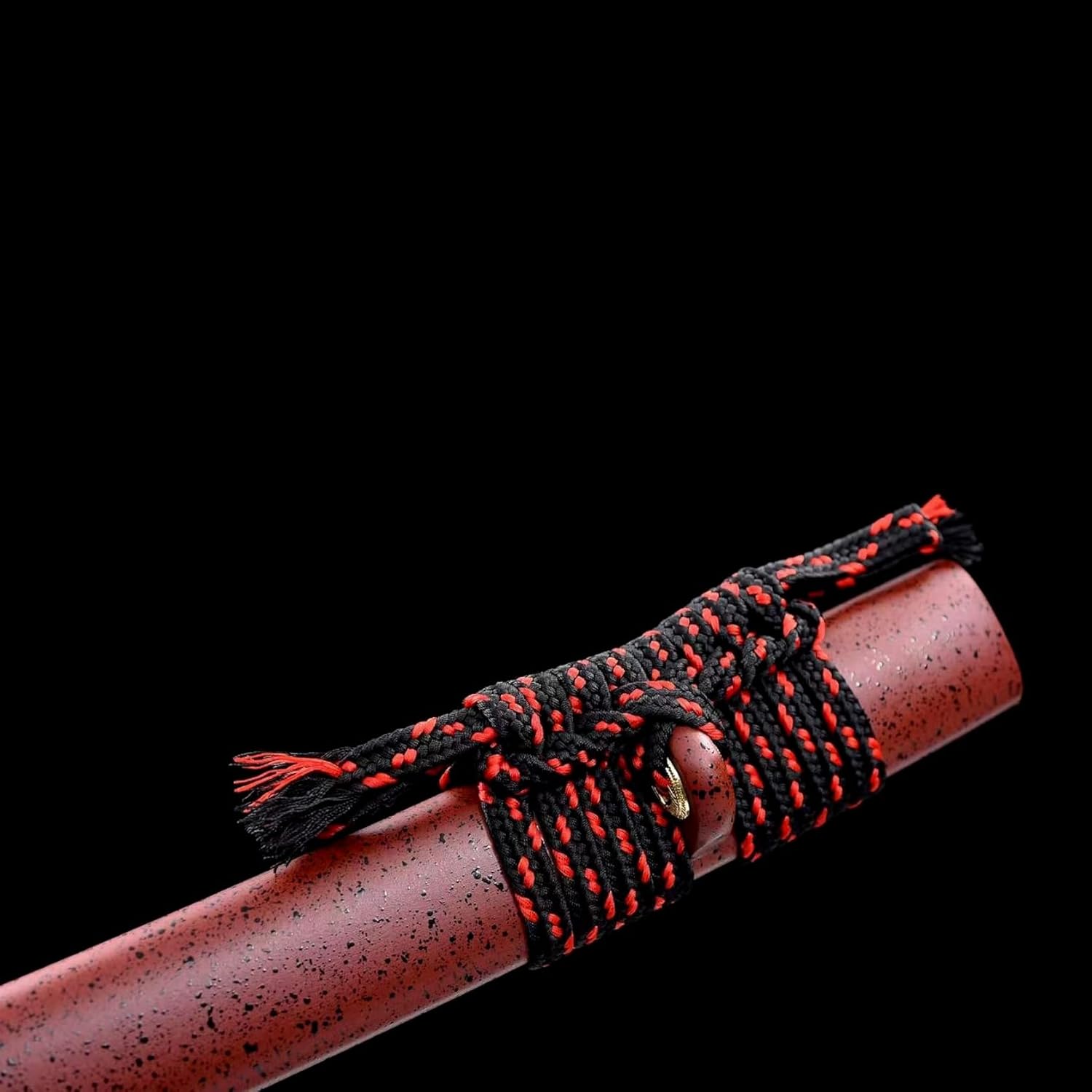 【Lama in acciaio modellato】: questa spada da samurai è realizzata in acciaio modellato di alta qualità raffinato centinaia di volte e viene sottoposta a uno squisito processo di lucidatura a mano per garantire che la lama sia estremamente affilata e durevole. La trama unica dell'acciaio modellato non è solo bella, ma aumenta anche la tenacità e la durezza della lama, permettendoti di sfoggiare il tuo stile da samurai quando la maneggi. 【Manico in legno massiccio】: il manico del coltello è realizzato in legno di alta qualità, avvolto con pelle di pesce perla e quindi avvolto a mano con una spessa corda di cera. È confortevole e ha buone proprietà antiscivolo e resistenti all'usura. 【Saya in legno naturale】: la guaina è realizzata in legno naturale di alta qualità, confortevole al tatto e con una consistenza di alta qualità. La decorazione a colori punteggiati non solo mostra l'elegante bellezza della tradizionale spada da samurai, ma crea anche una forte atmosfera artistica. 【Iron Tsuba】: il paramano è realizzato in ferro di alta qualità e ha un fantastico design nero. Non solo è robusto e durevole, ma ha anche un aspetto semplice ed elegante. La forma del petalo cavo è unica. 【Artigianato squisito】: la lunghezza totale è di 103 cm, la lunghezza della lama è di 71 cm, la lunghezza del manico è di 26 cm e la larghezza della lama è di 3,2 cm. Viene utilizzata la tradizionale tecnologia di forgiatura e il processo di forgiatura segue rigorosamente metodi antichi. Ogni katana porta con sé l'essenza dell'artigianato tradizionale.