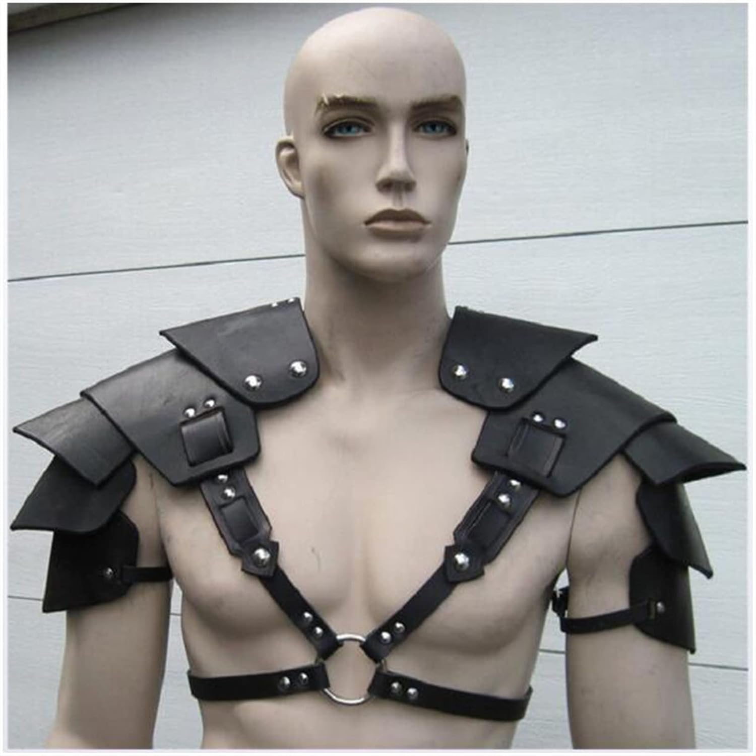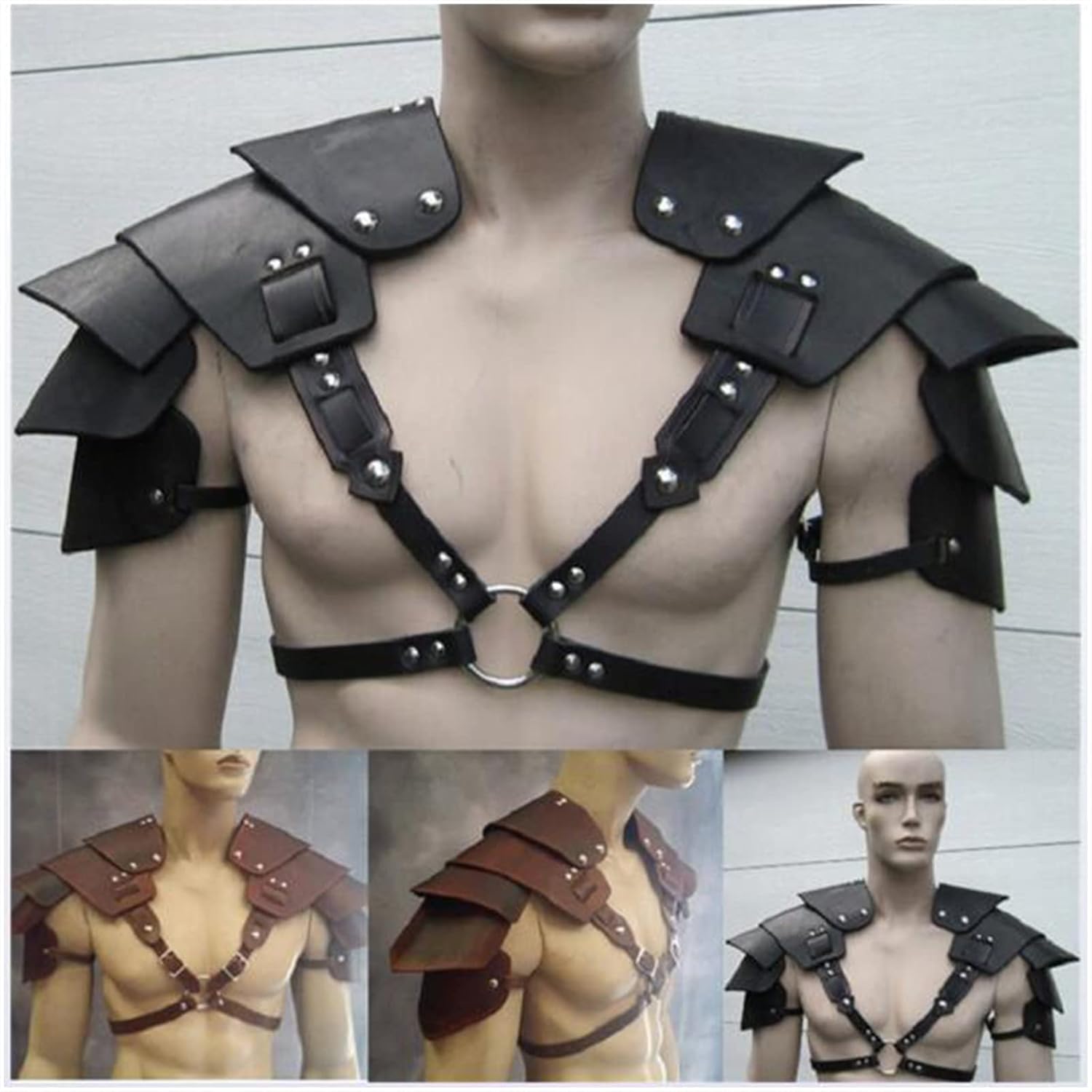【Design Raffinato】Design a doppia spalla, imbottitura in stile armatura per le spalle, connessione O-ring in metallo, rivetti decorativi distribuiti uniformemente sull'armatura per le spalle, il design è semplice e bello, che può renderti più attraente. 【Armatura per spalla Steampunk】 Imbracatura per armatura toracica regolabile da uomo, materiale in pelle PU, rivetti ad anello in metallo, sicura e non sbiadita, lavorazione squisita, può essere indossata ripetutamente e mantiene curve muscolari attraenti per lungo tempo. Facile da indossare: l'armatura medievale retrò per le spalle è facile da indossare e da togliere. Sembra un po' complicato, ma è facile capire come indossarlo; farà sentire le tue spalle molto a tuo agio. + Misura regolabile: l'armatura in pelle per le spalle ha una fibbia in metallo per regolare la taglia, taglia unica per la maggior parte degli uomini e delle donne. Facile da pulire, basta pulire con un panno umido. + Scenari applicabili: adatti a nuovi costumi per ogni occasione come medievali, steampunk, feste a tema Halloween, giochi di ruolo, feste in maschera, rinascimentali, feste di Natale, viaggi, ecc.