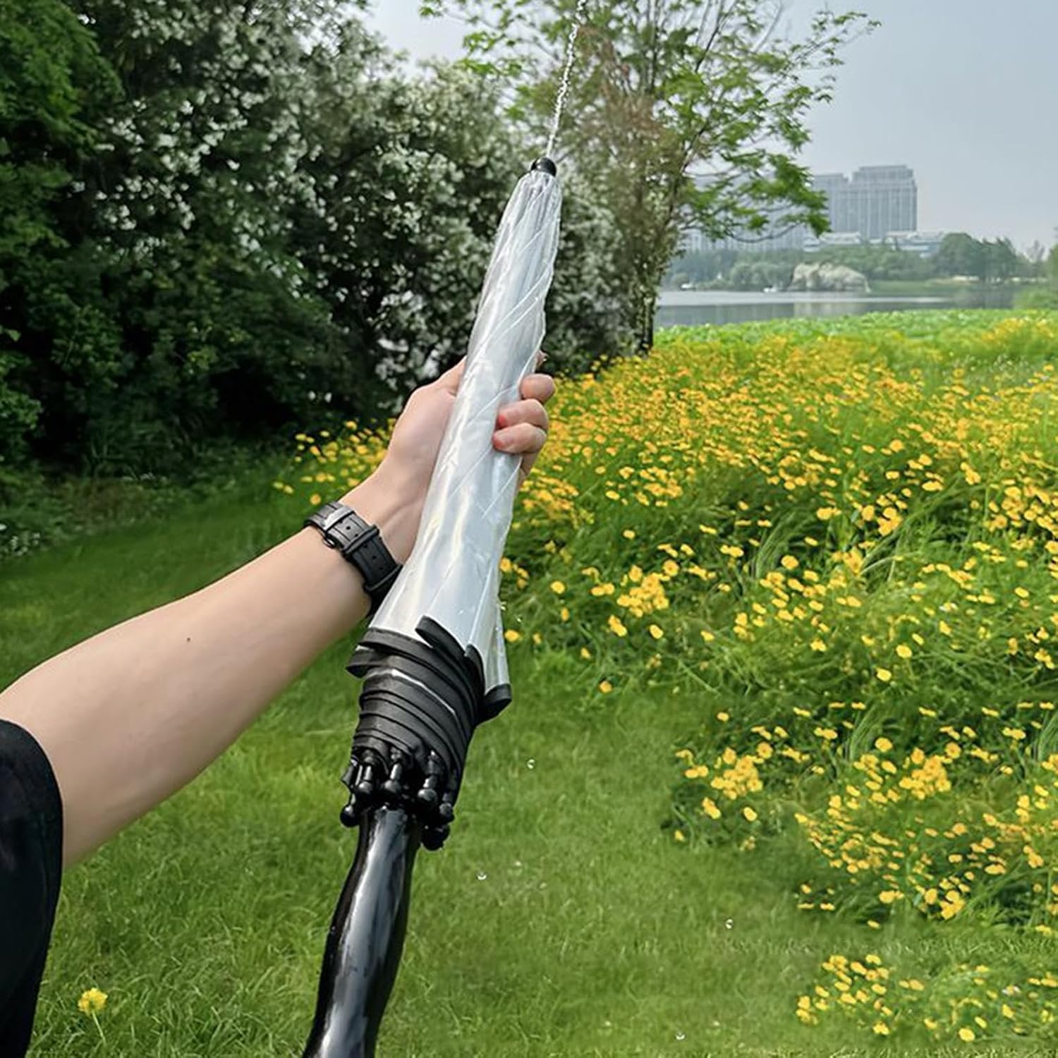 Divertimento Acquatico Innovativo: Combina protezione solare e intrattenimento con il doppio uso pratico. Il di nebulizzazione controllabile offre rinfresco immediato durante le attività all'aperto, per animare gite in famiglia o tra amici Praticità d'Uso: Struttura compatta e meccanismo pieghevole permettono riporlo in qualsiasi ambiente. L'aggancio ergonomico integrato garantisce presa salda e trasporto agevole durante attività ricreative all'aperto Materiali Durevoli: Tecnologia Hybrid-Weave per la copertura esterna rinforzata con punti di cucitura tripli. Impugnatura ergonomica con anti-torsione assorbe gli urti. Supporta raffiche fino a 60 km/h senza deformarsi Interazioni Memorabili: Integra perfettamente funzione spruzzatore d'acqua in un ombrello stile business, creando un capo anti-pioggia alla moda che valorizza l'espressività personale e stimola conversazioni divertenti in ogni situazione sociale Regalo Pensato: Siringa ad acqua a forma di ombrello ideale come regalo originale per compleanni o attività di team building, stimola interazioni divertenti durante feste estive e momenti conviviali grazie al design unico che unisce praticità e divertimento